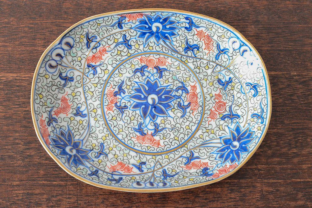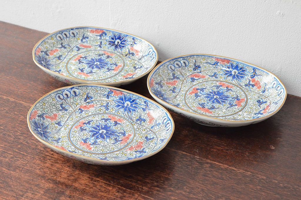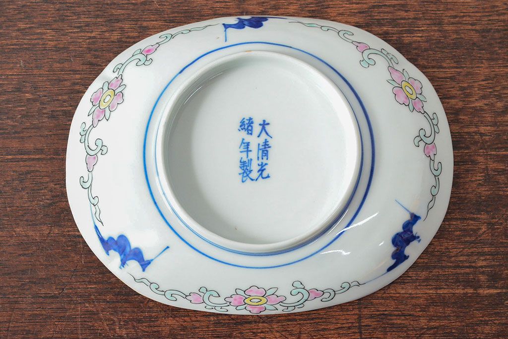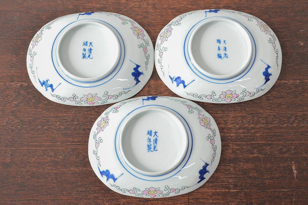 ラフジュ工房> 和食器・茶道具> 皿 > 大清光緒年製 色絵染付 楕円変形皿3枚(伊万里、中国?)(R-052346)