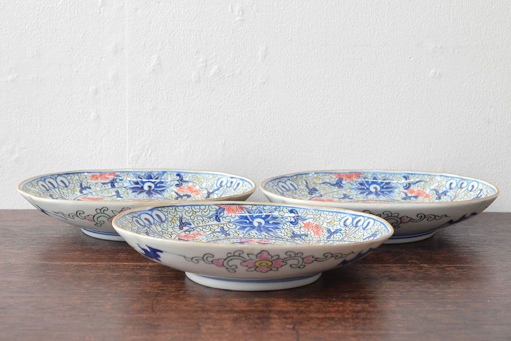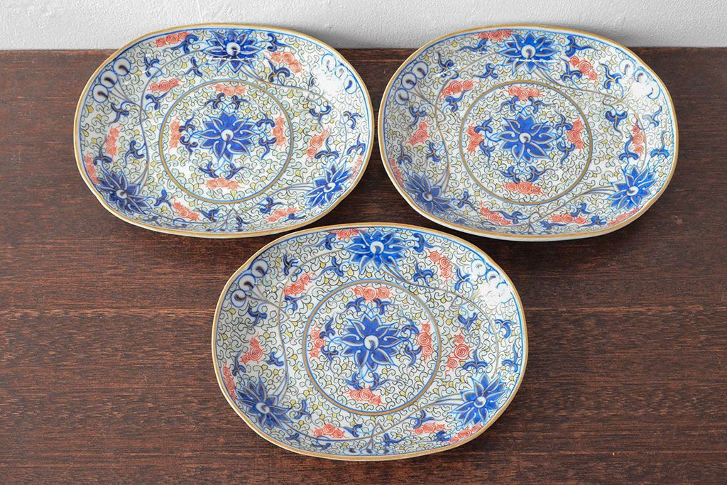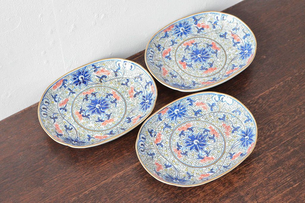 ラフジュ工房> 骨董・美術品> 中国美術 > 大清光緒年製 色絵染付 楕円変形皿3枚(伊万里、中国?)(R-052346)