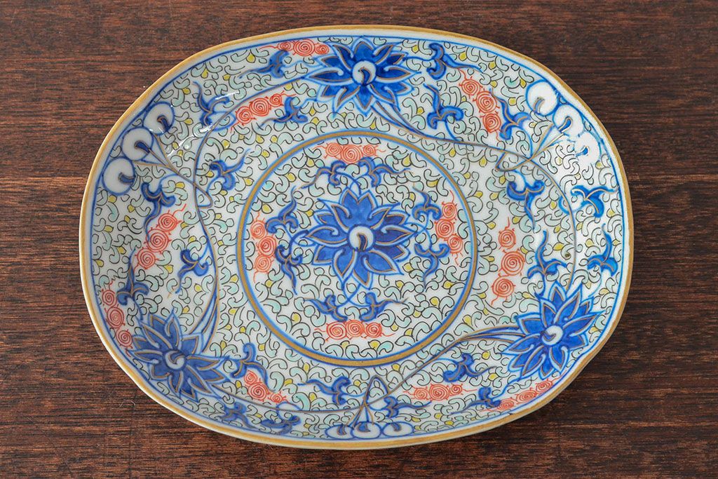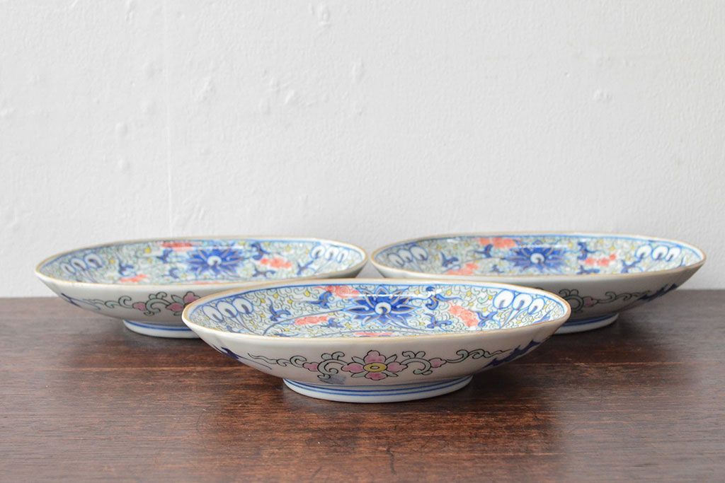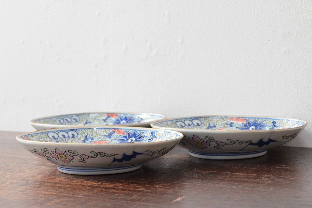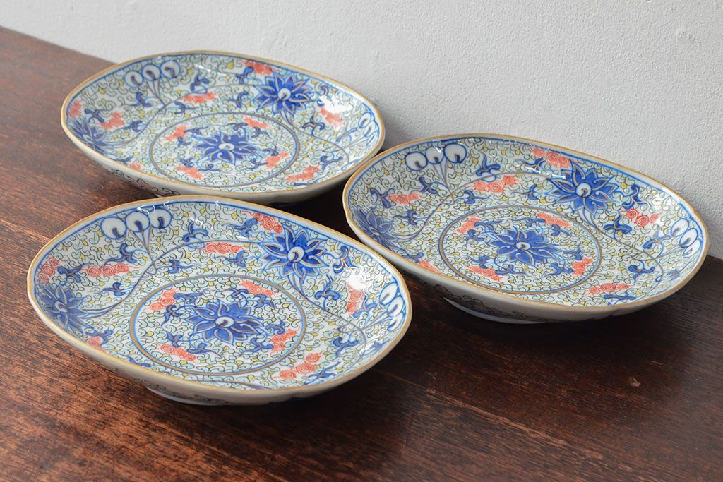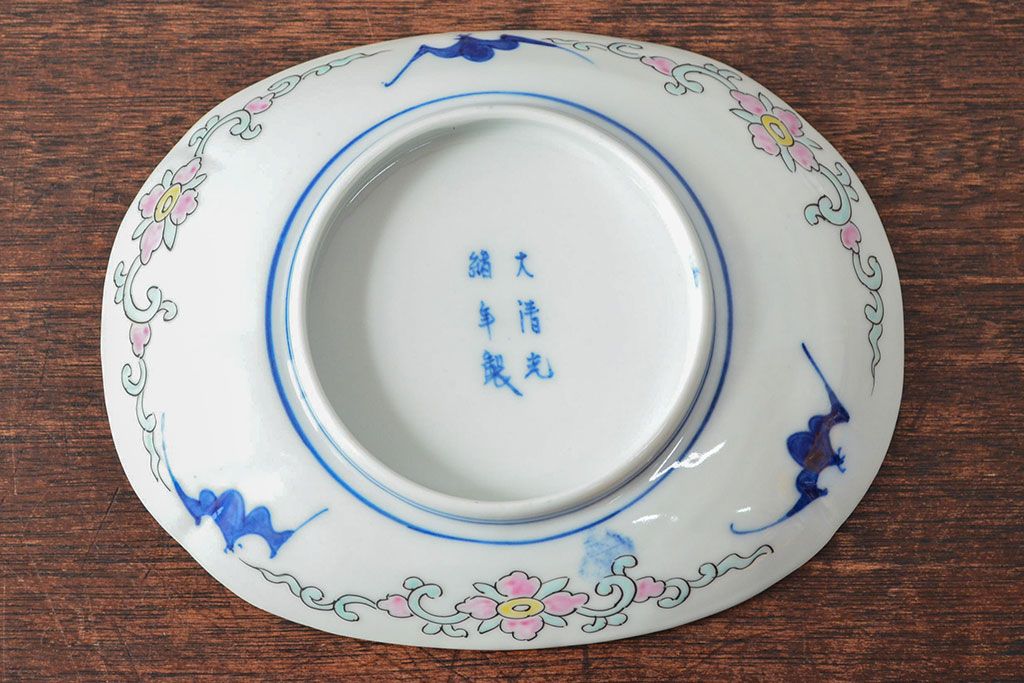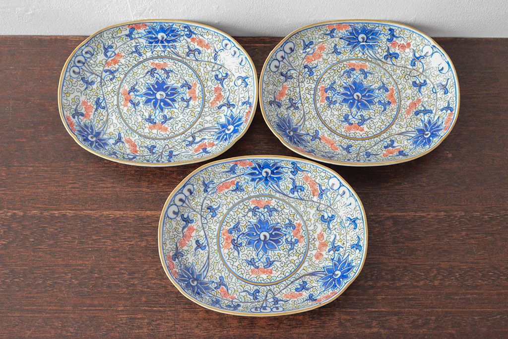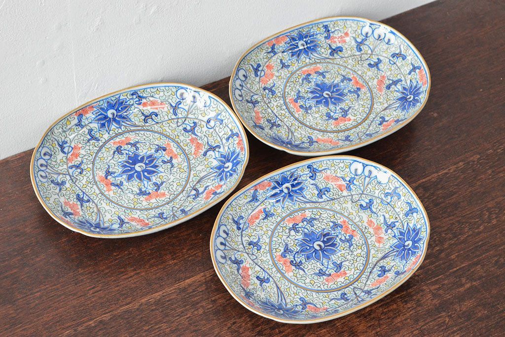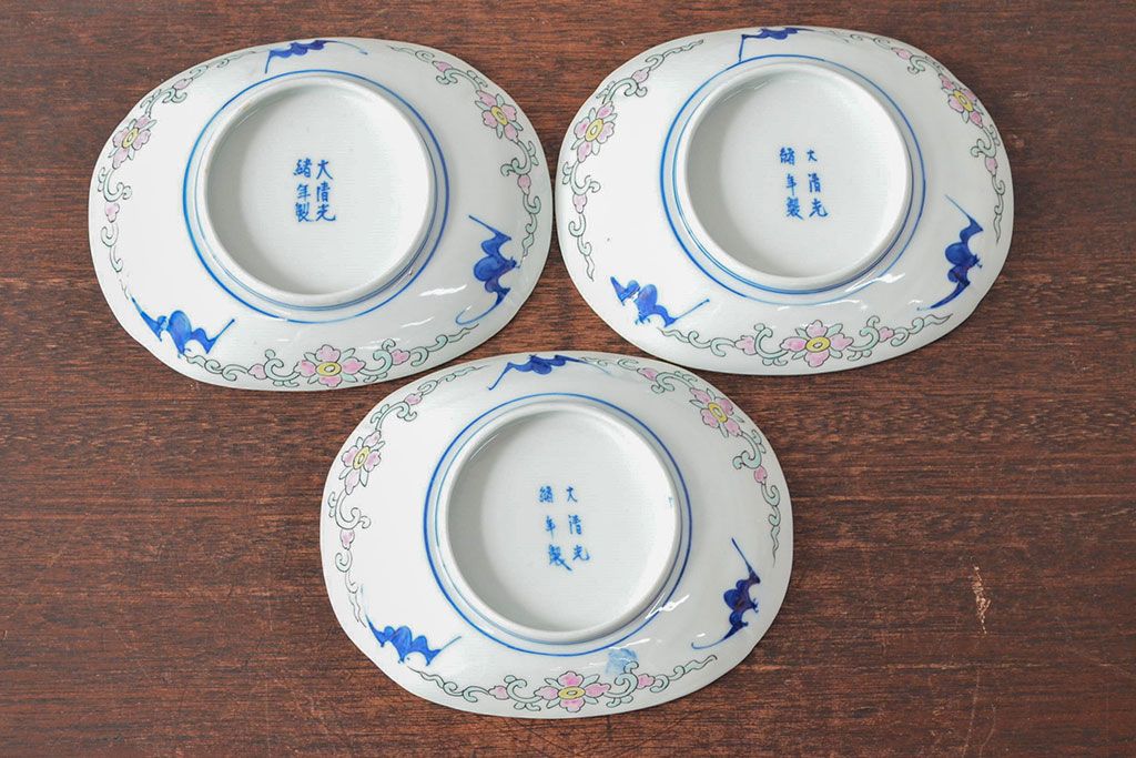ラフジュ工房> 和食器・茶道具> 皿 > 大清光緒年製 色絵染付 楕円変形皿3枚(伊万里、中国?)(R-052348)