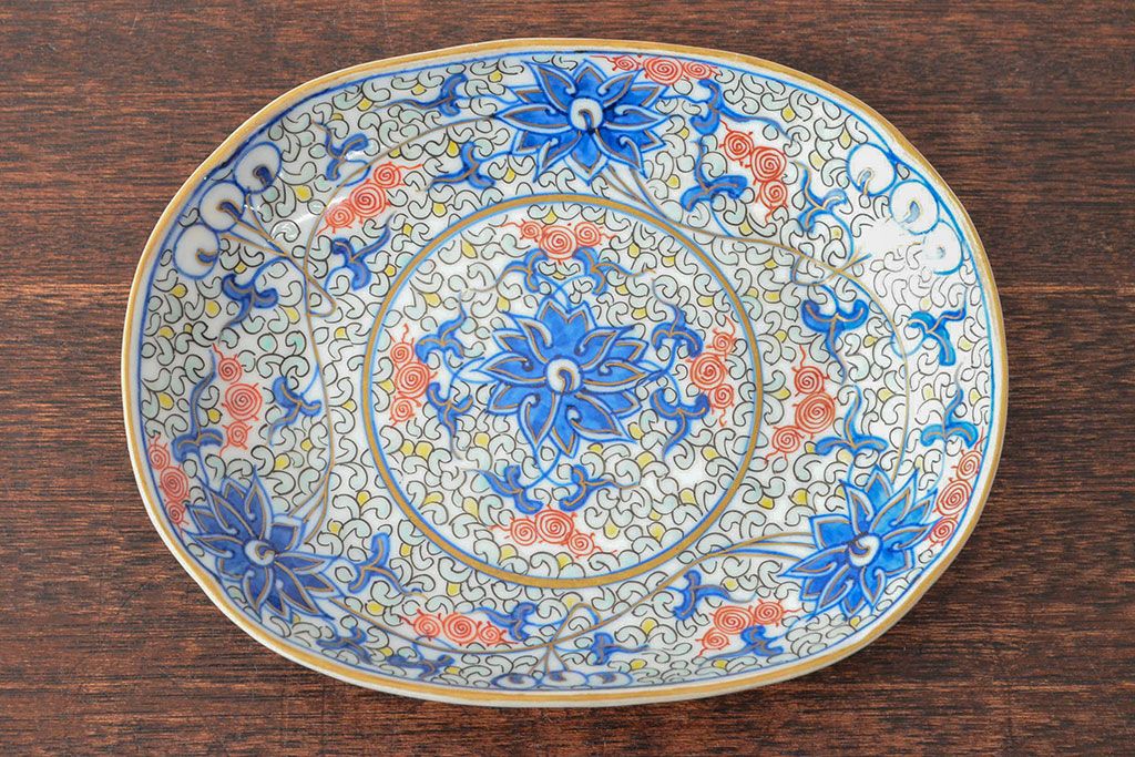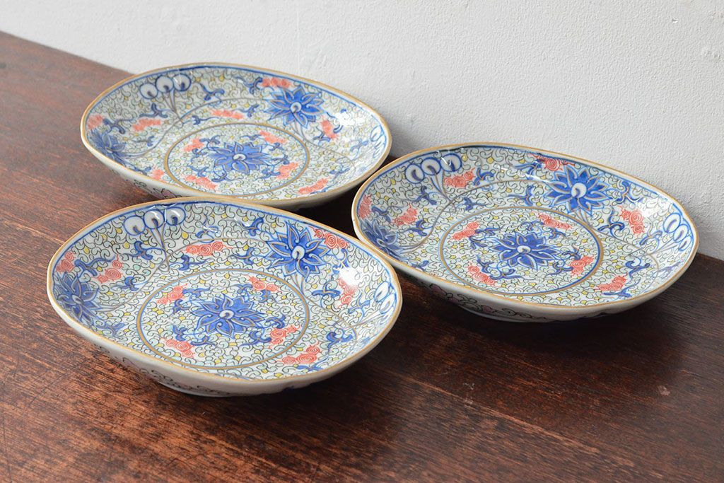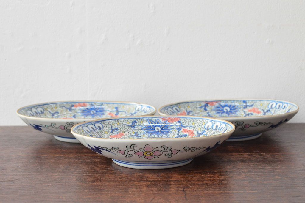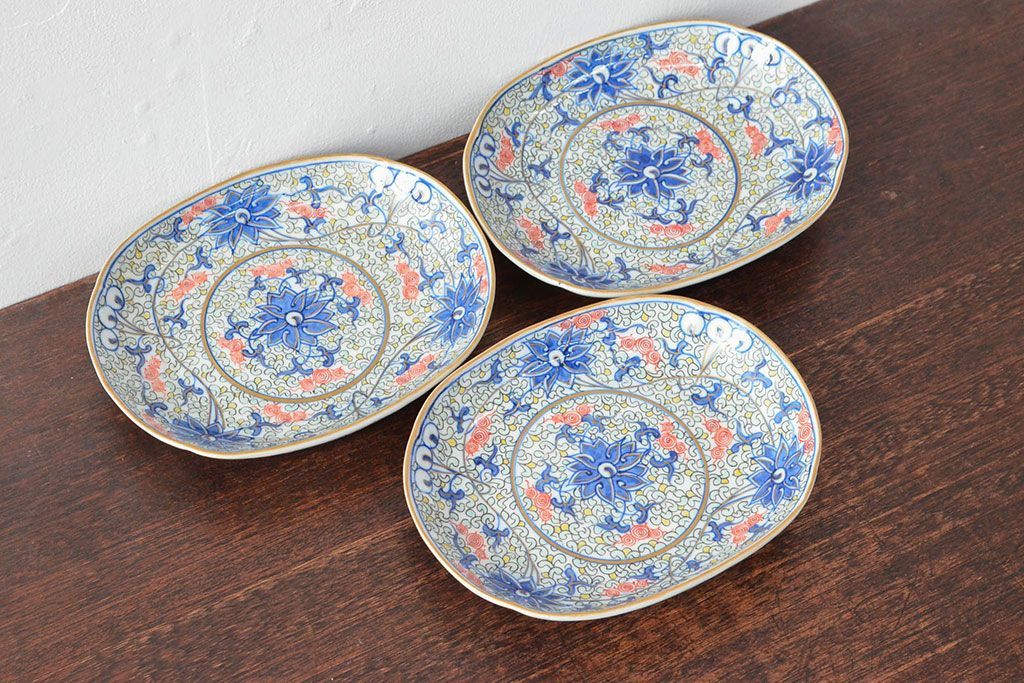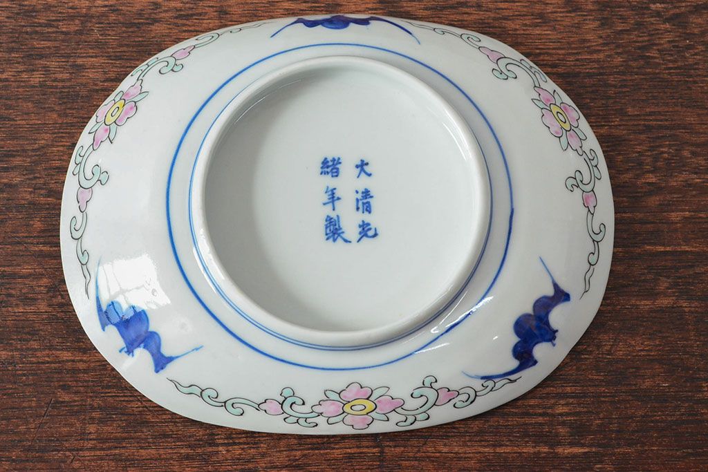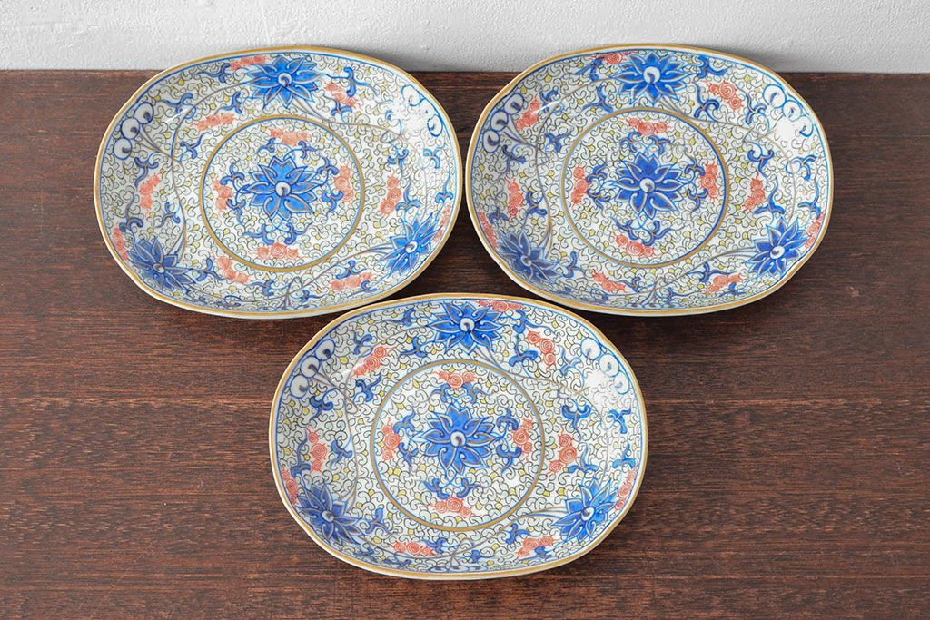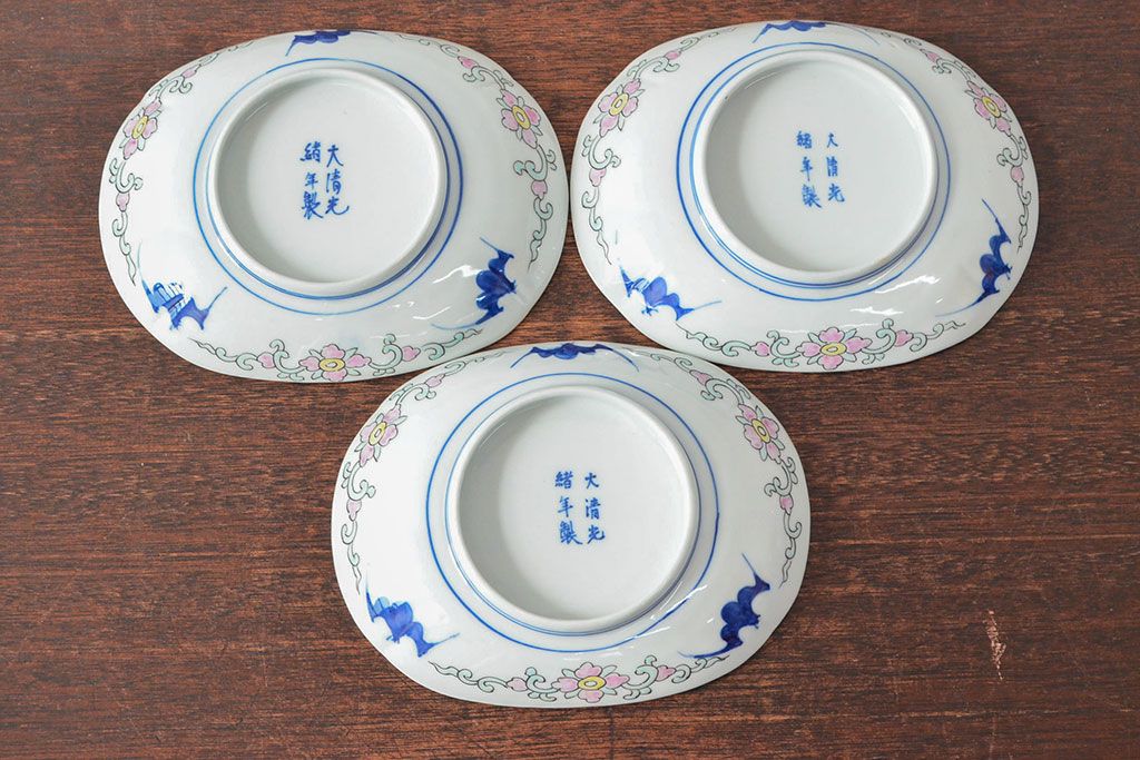 ラフジュ工房> 和食器・茶道具> 皿 > 大清光緒年製 色絵染付 楕円変形皿3枚(伊万里、中国?)(R-052349)