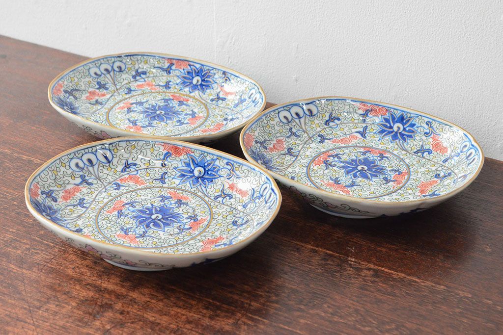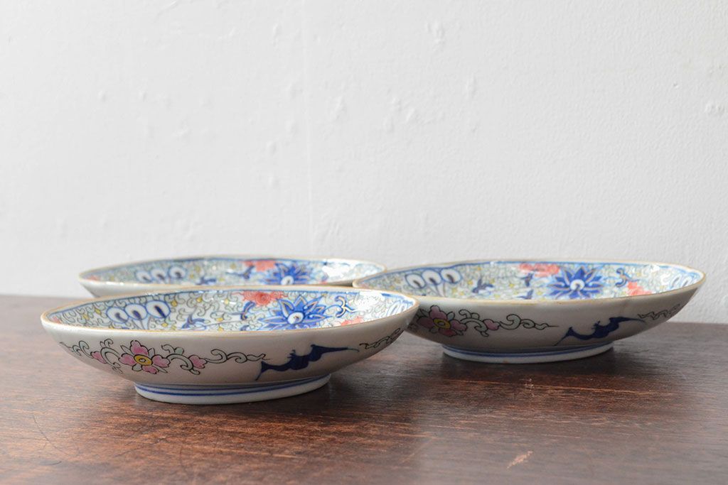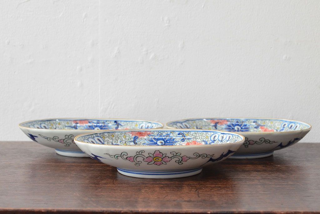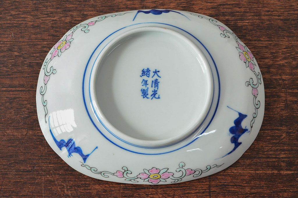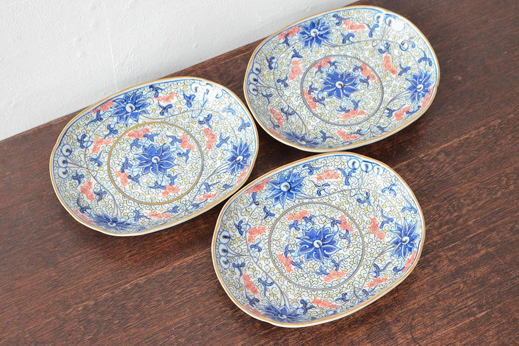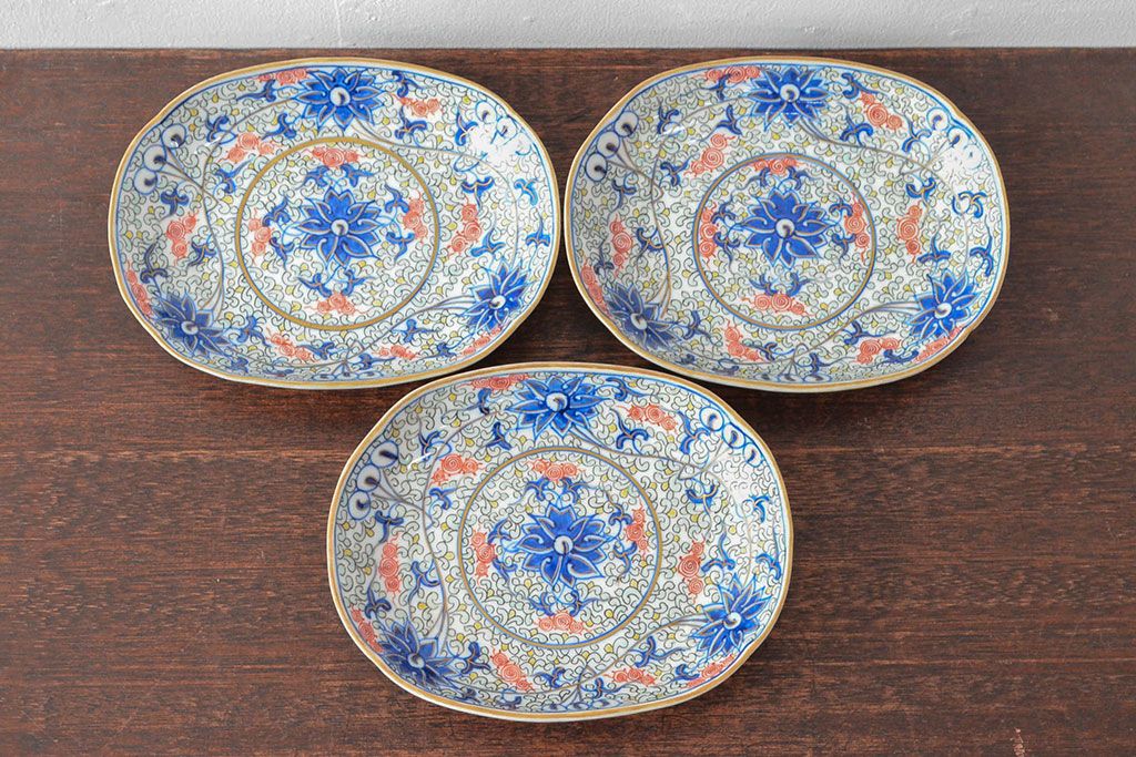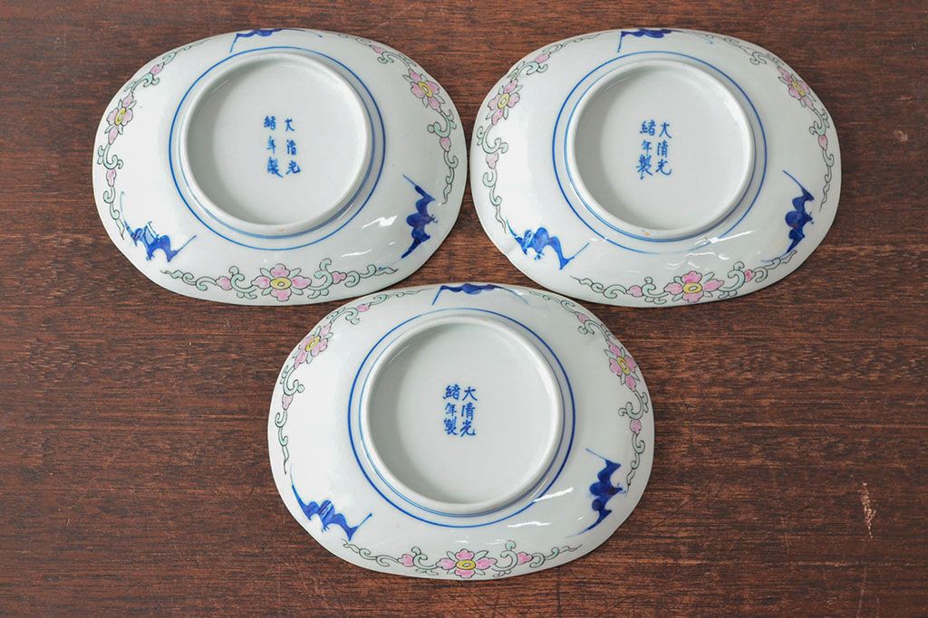ラフジュ工房> 和食器・茶道具> 皿 > 大清光緒年製 色絵染付 楕円変形皿3枚(伊万里、中国?)(R-052350)