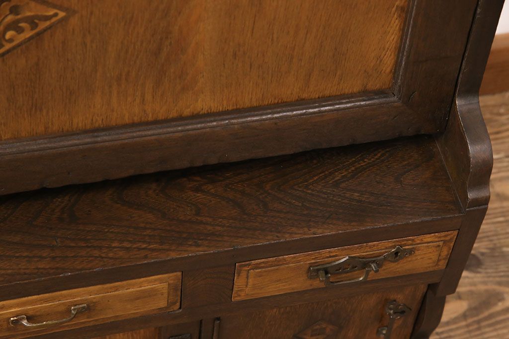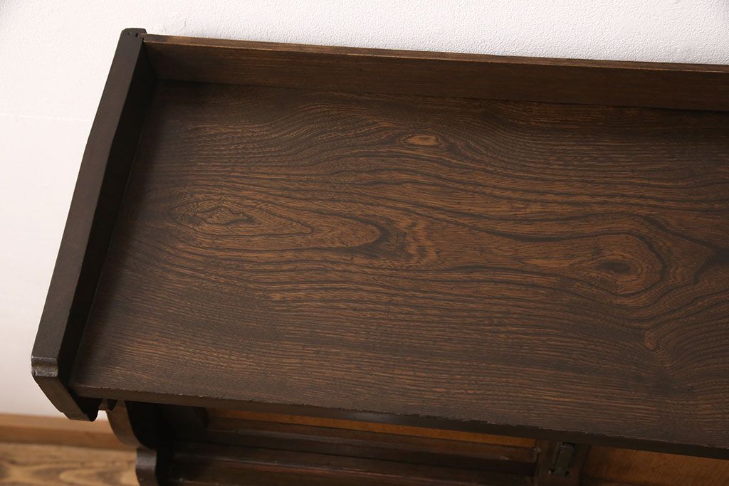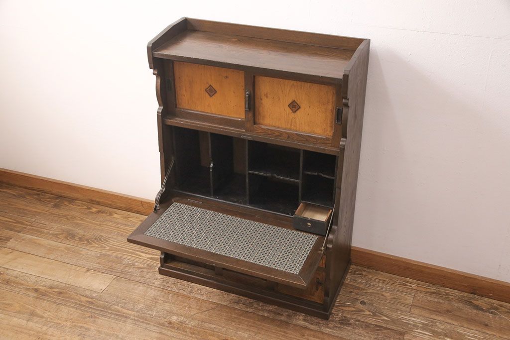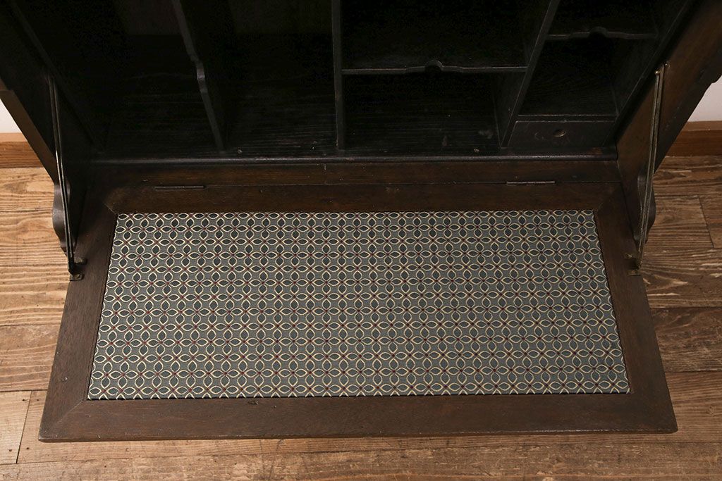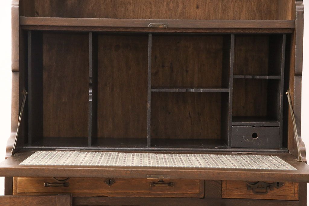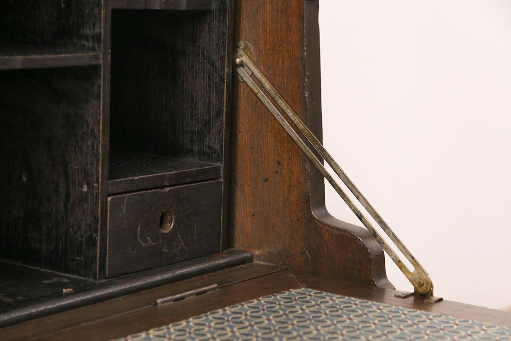 ライティングビューローをリペア&カスタム!作業台の生地を張り替え、現状に色味を活かして仕上げ。(簿記机、ワークデスク)