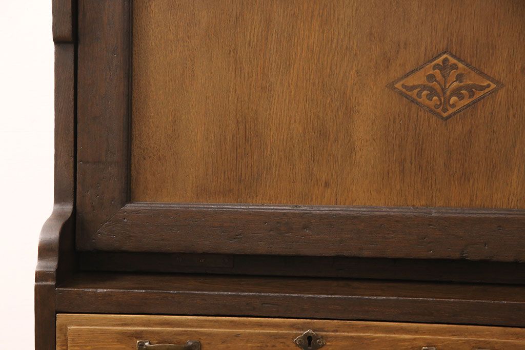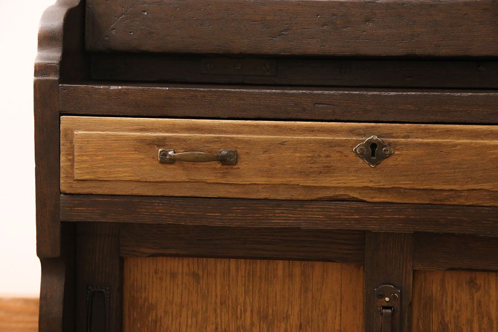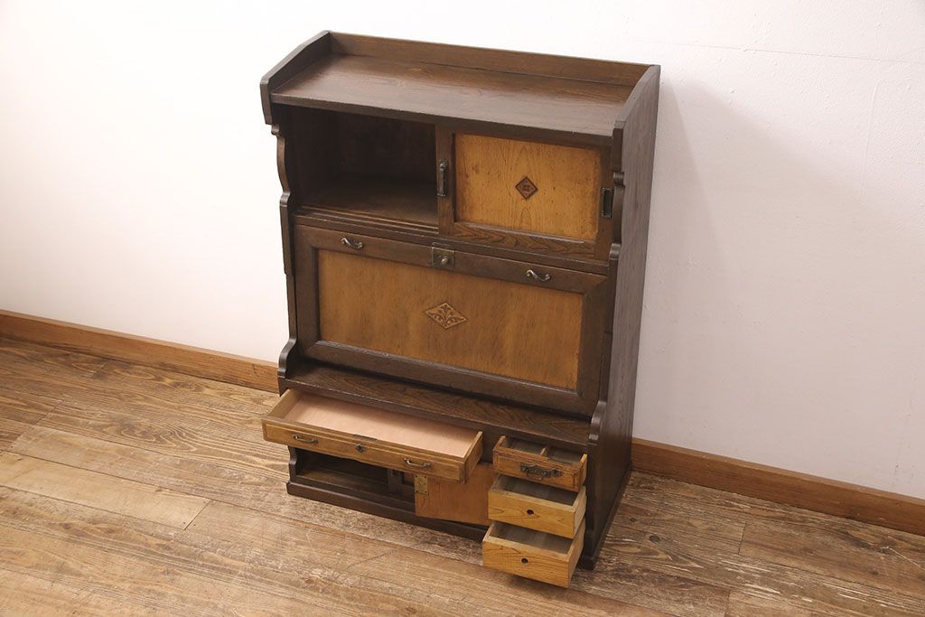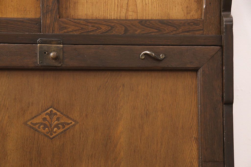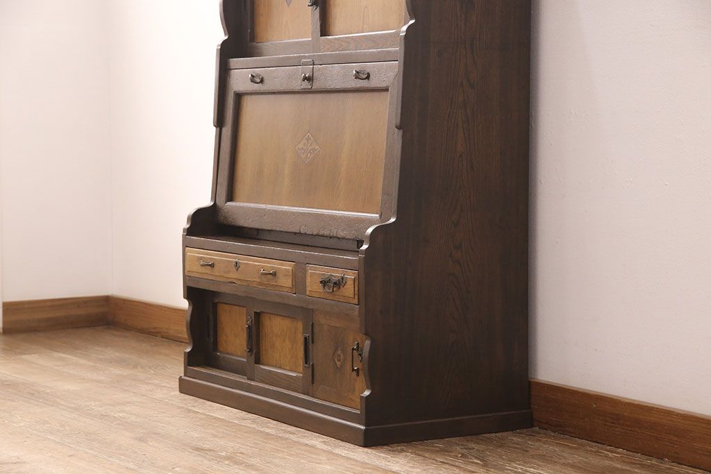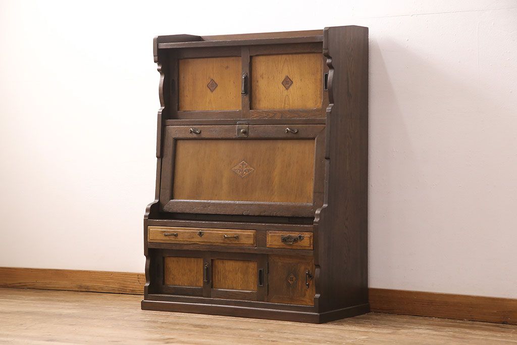 ライティングビューローをリペア&カスタム!作業台の生地を張り替え、現状に色味を活かして仕上げ。(簿記机、ワークデスク)