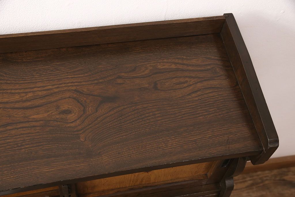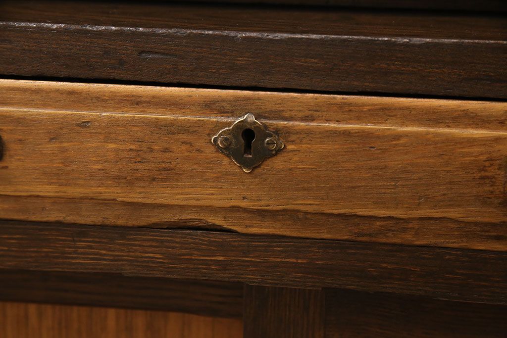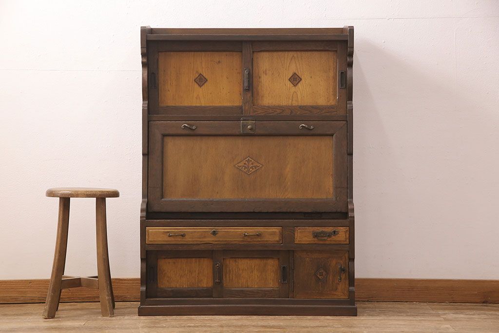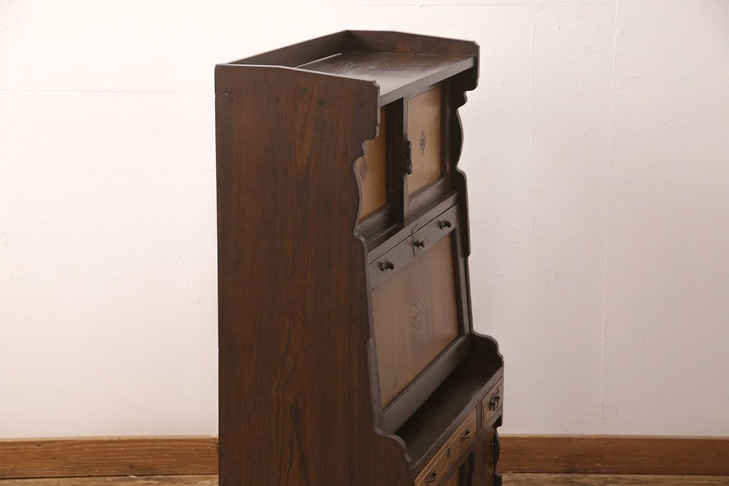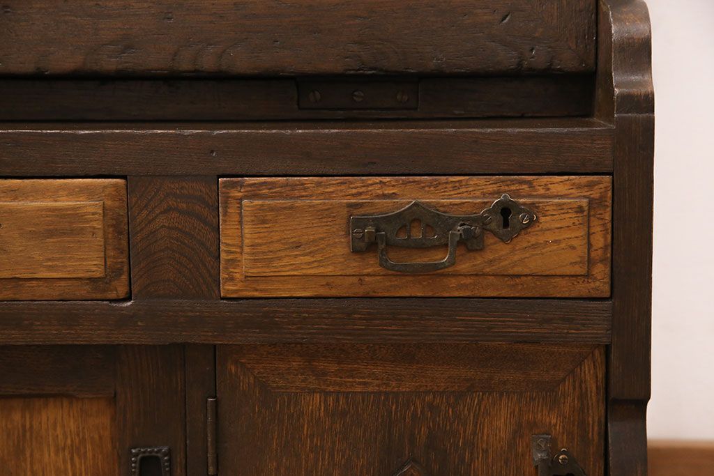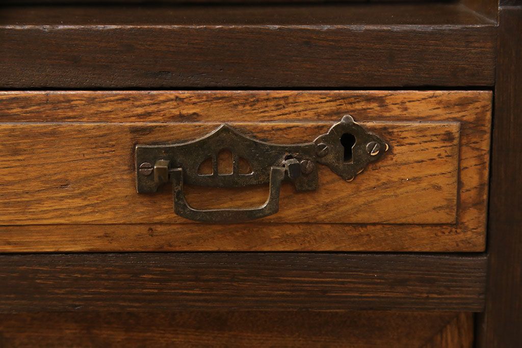 ライティングビューローをリペア&カスタム!作業台の生地を張り替え、現状に色味を活かして仕上げ。(簿記机、ワークデスク)