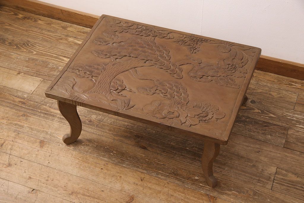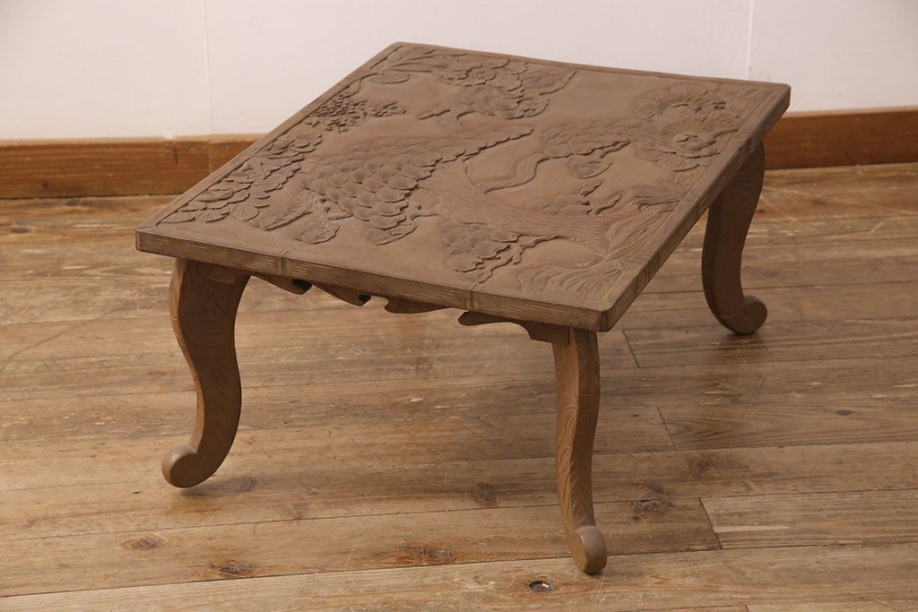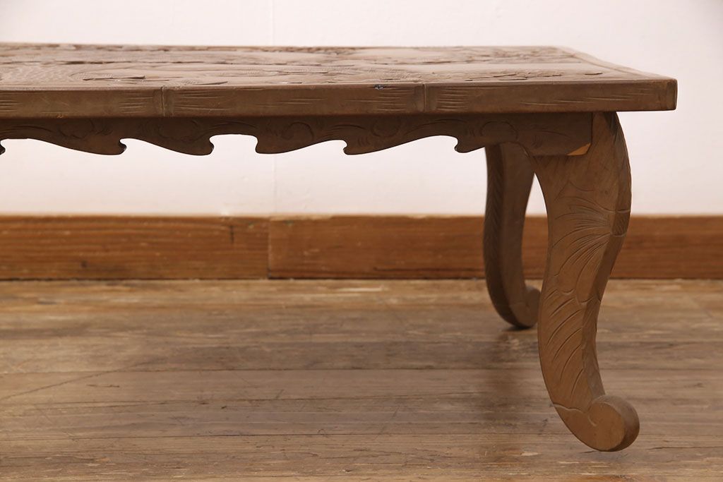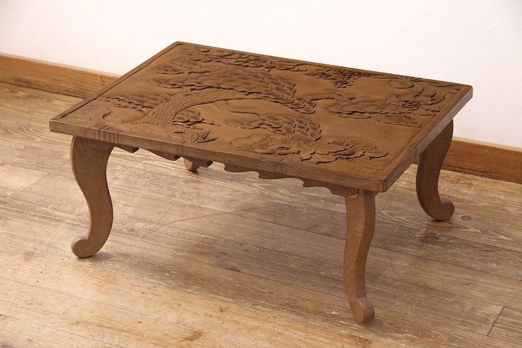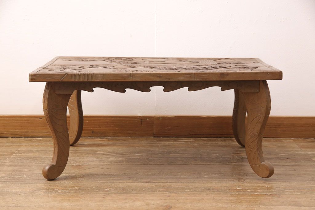 中古 日光彫り 大胆かつ繊細な彫刻が美しいセンターテーブル(座卓、ローテーブル)(R-052668)
