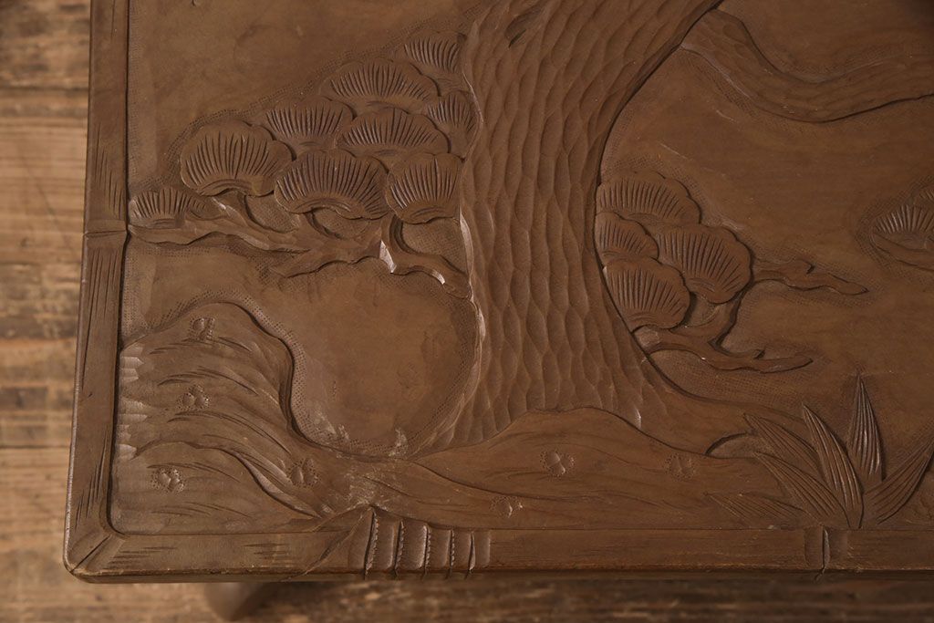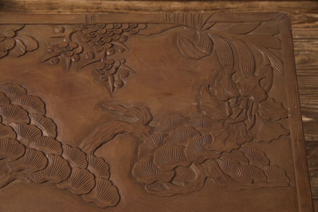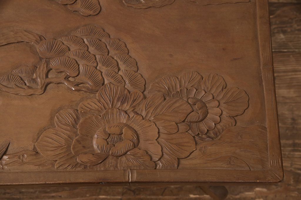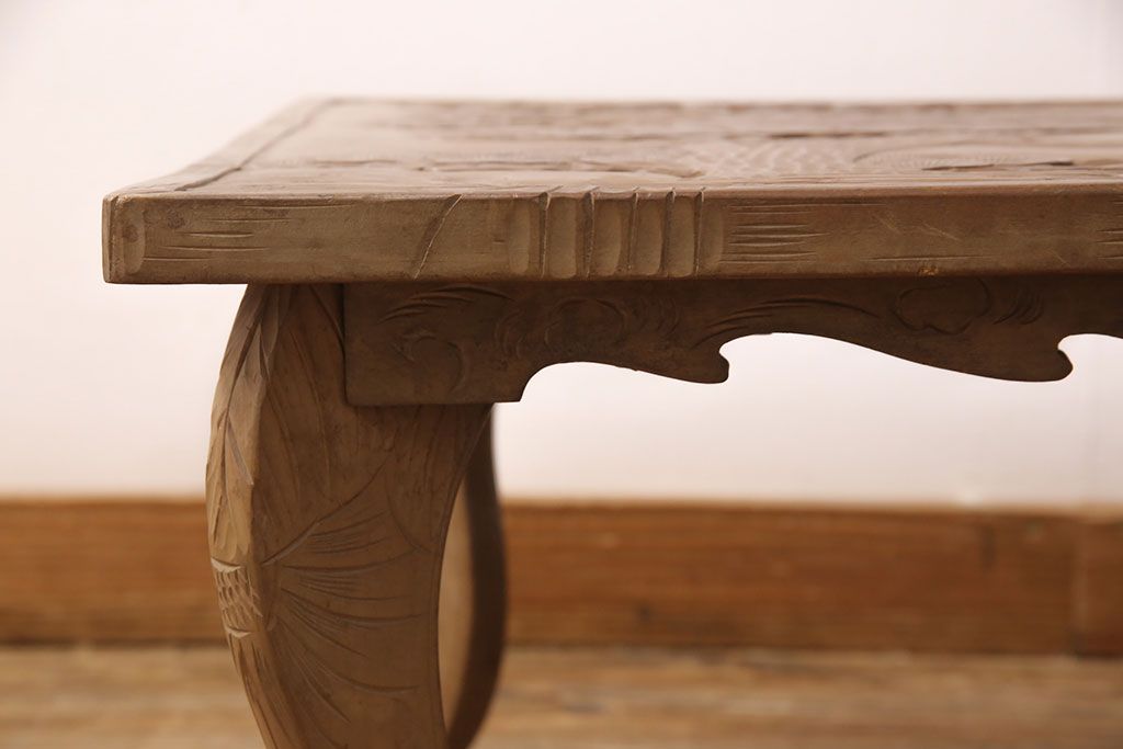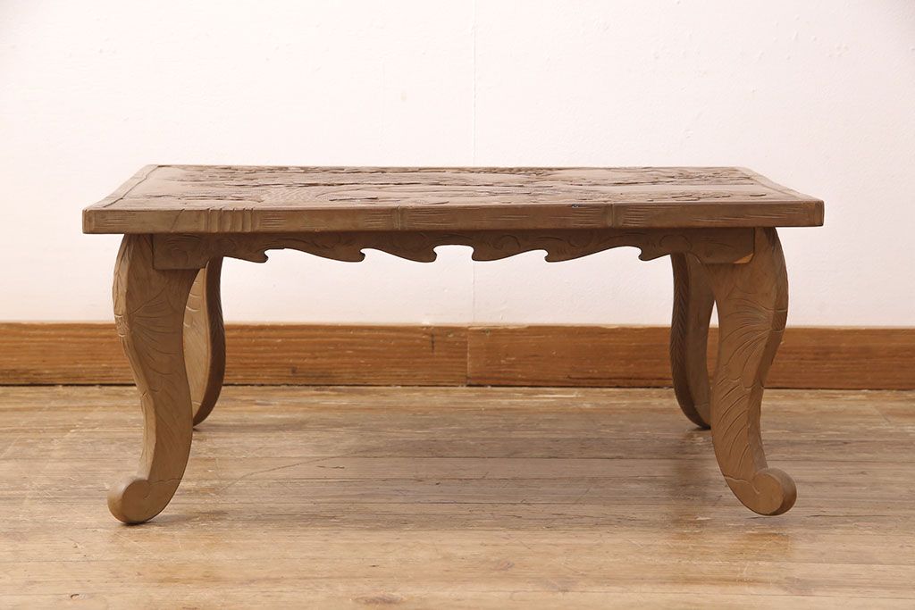 中古 日光彫り 大胆かつ繊細な彫刻が美しいセンターテーブル(座卓、ローテーブル)(R-052668)