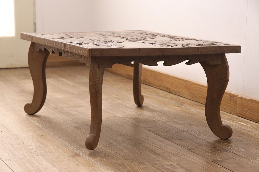 ラフジュ工房> 民芸家具 > 中古 日光彫り 大胆かつ繊細な彫刻が美しいセンターテーブル(座卓、ローテーブル)(R-052668)