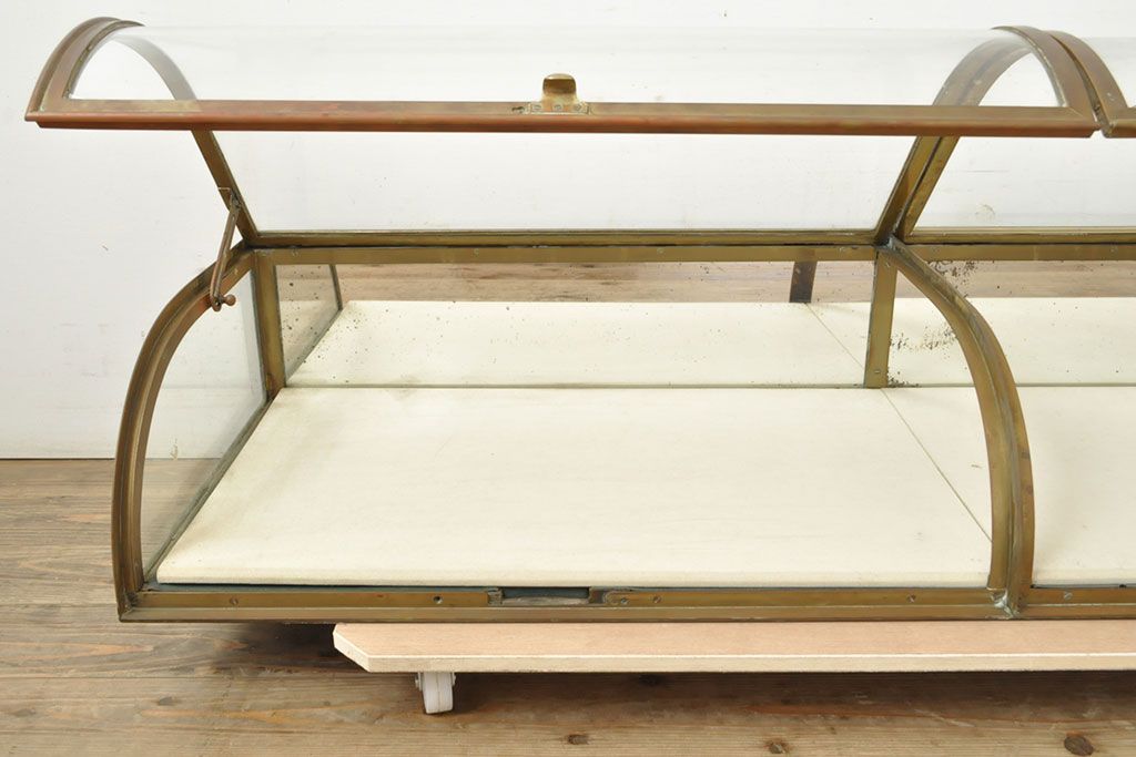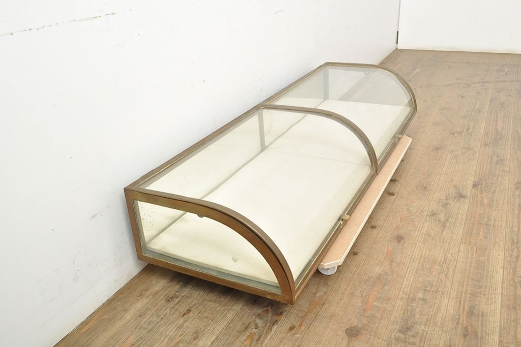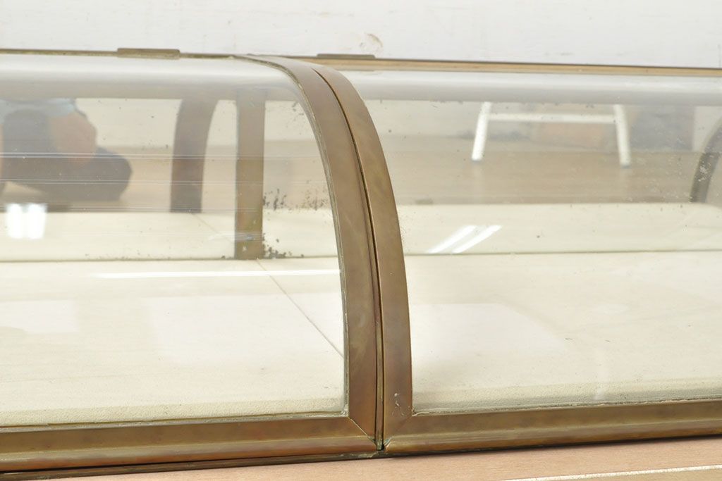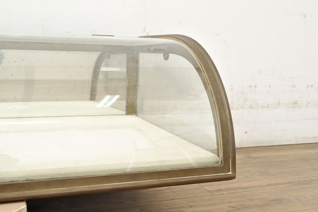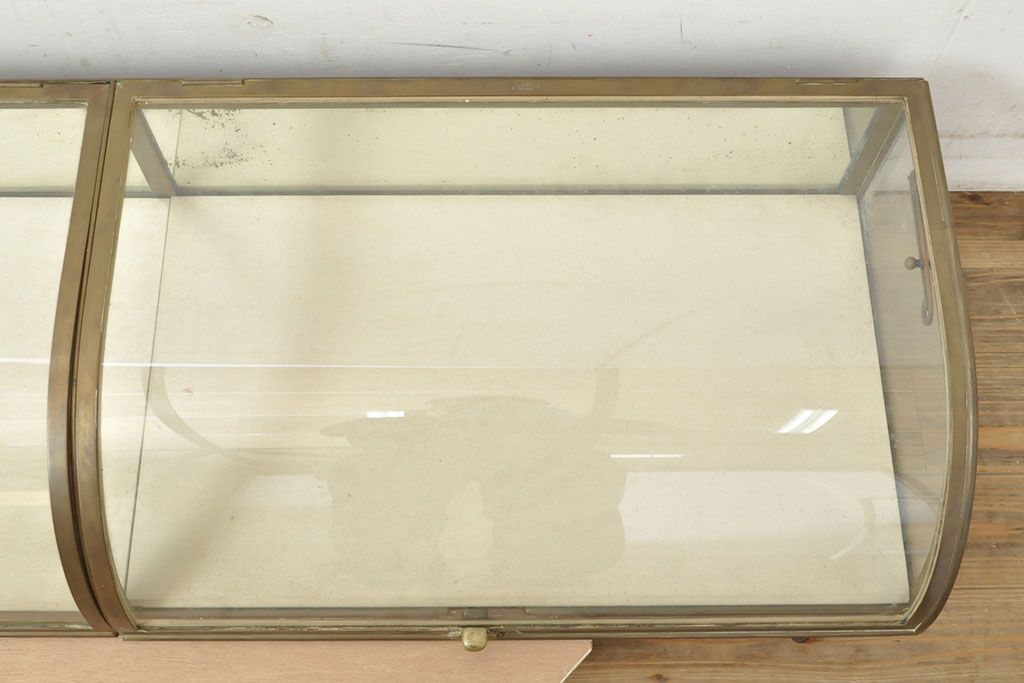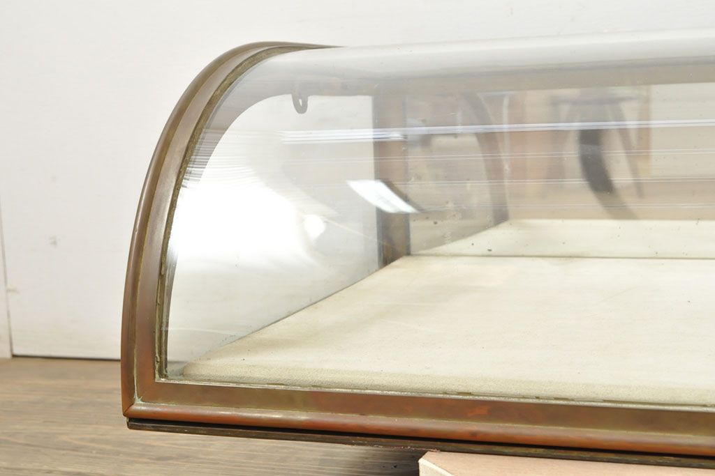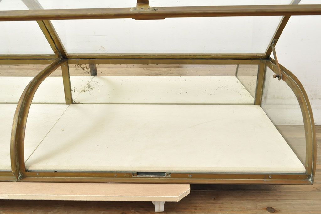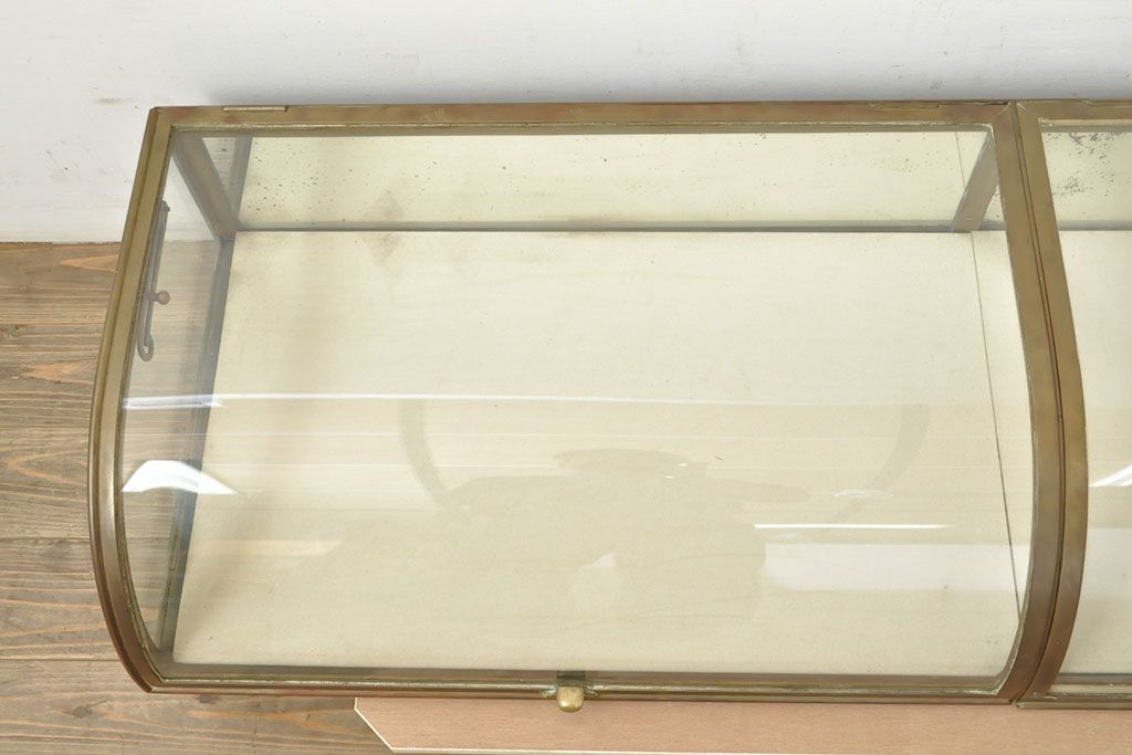 フランスアンティーク 激レアデザイン! 真鍮枠がおしゃれなRガラス卓上ショーケース(ガラスケース、店舗什器)(R-052733)