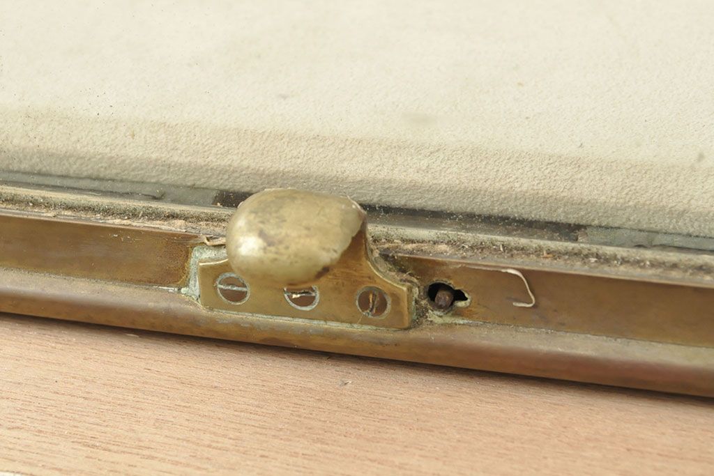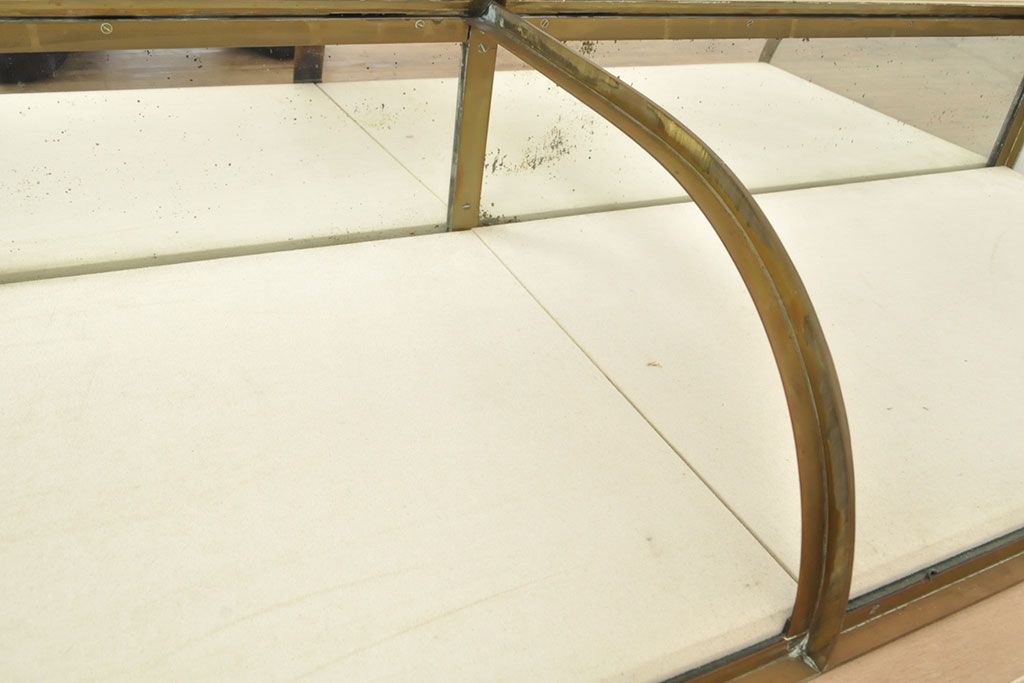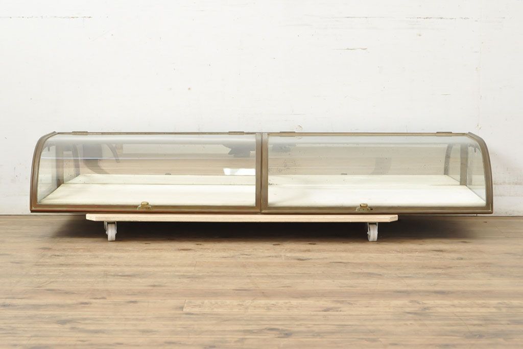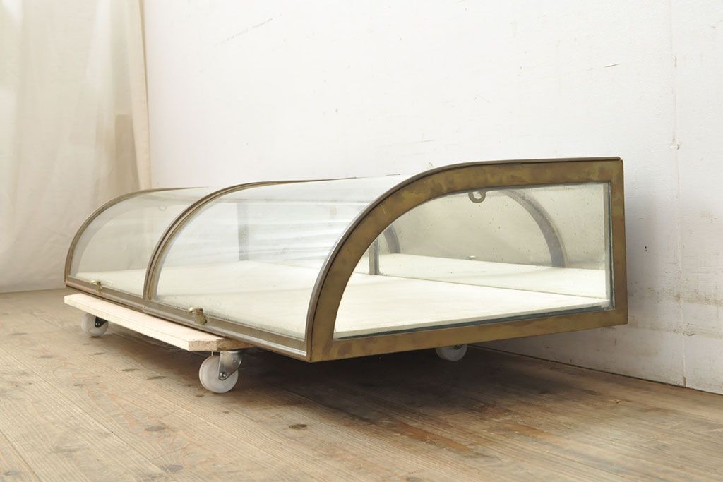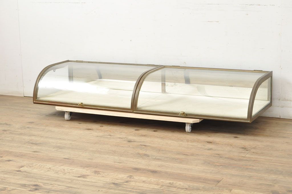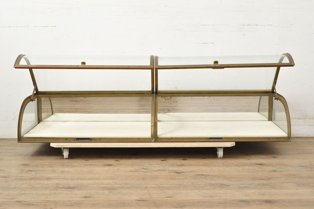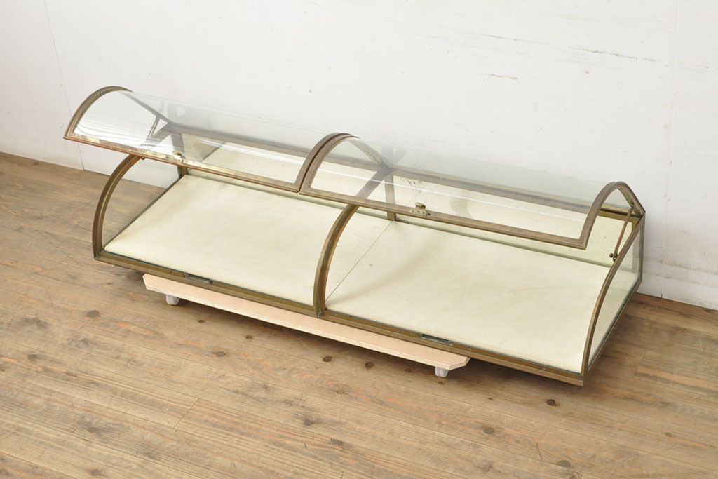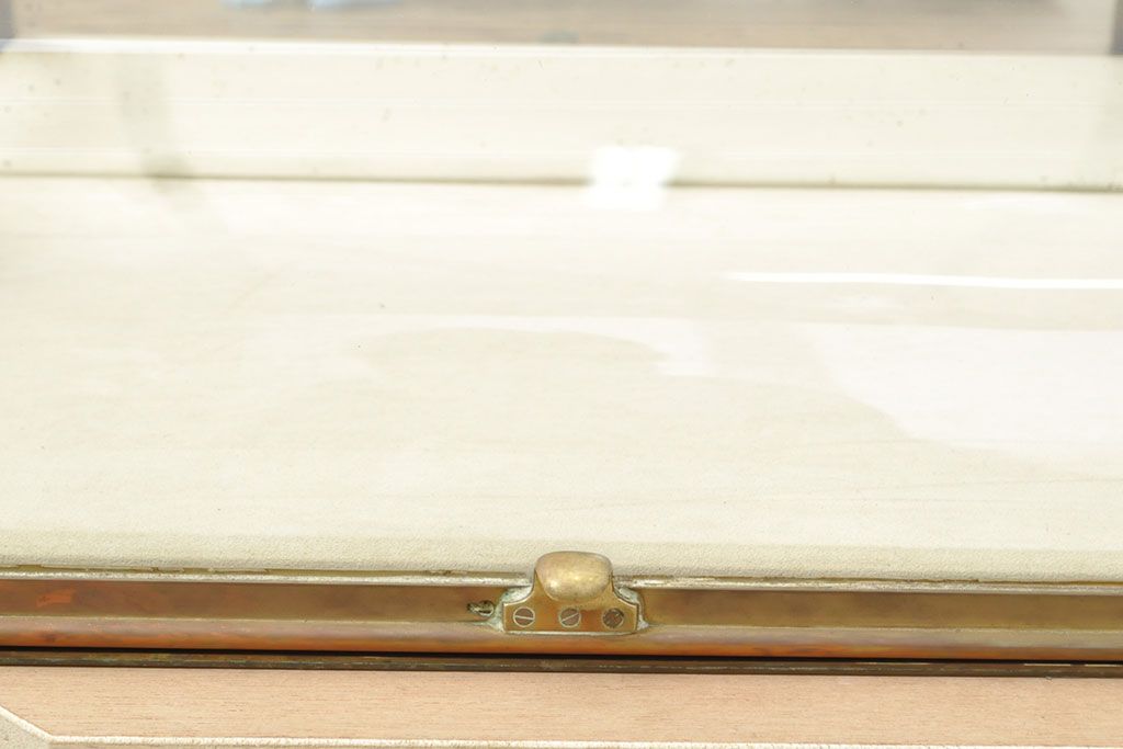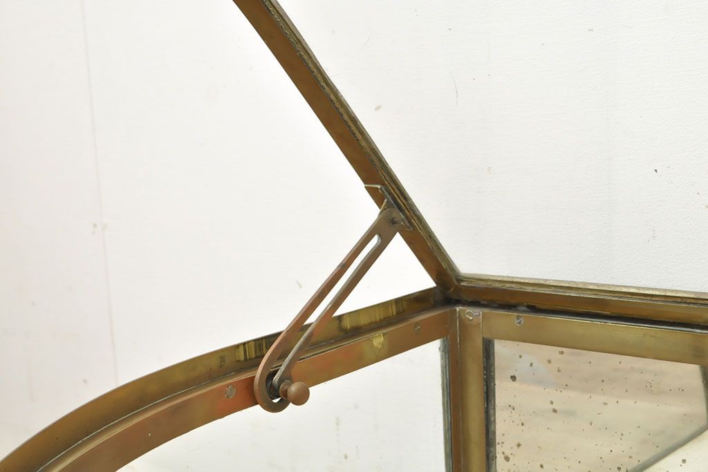 フランスアンティーク 激レアデザイン! 真鍮枠がおしゃれなRガラス卓上ショーケース(ガラスケース、店舗什器)(R-052733)