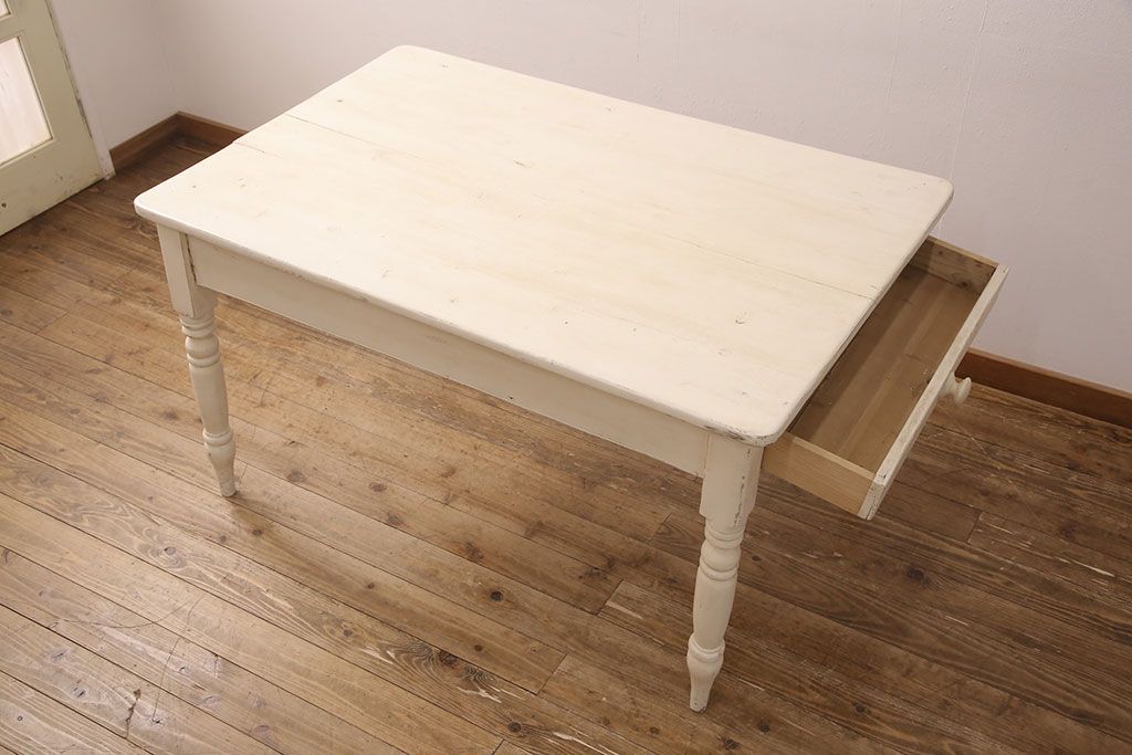ラフジュ工房> テーブル> 2人用ダイニングテーブル > 和製ビンテージ アンティーク風なつくりがかわいらしい手造りテーブル(ダイニングテーブル、作業台、ヴィンテージ)(R-052862)