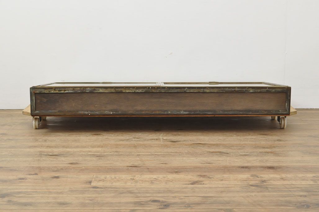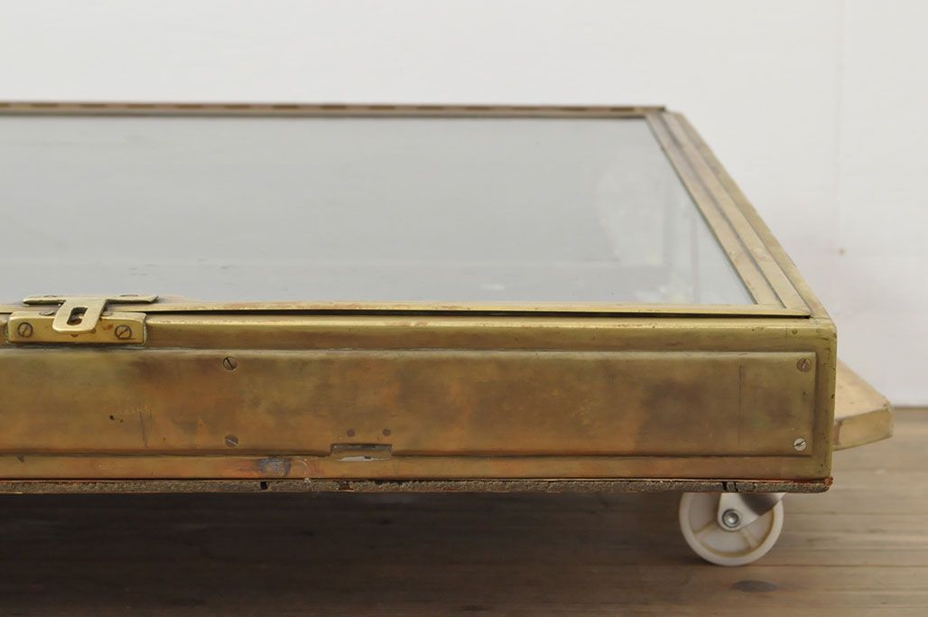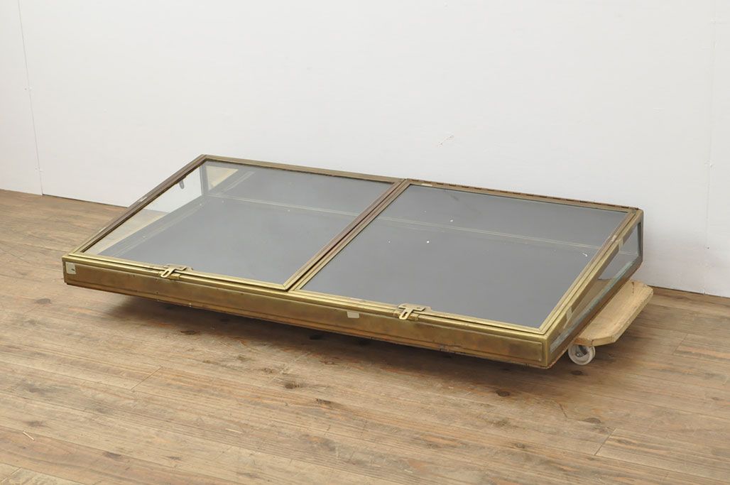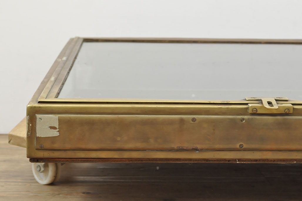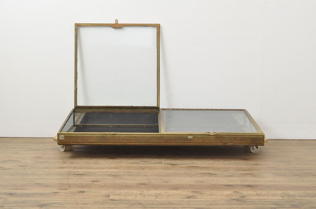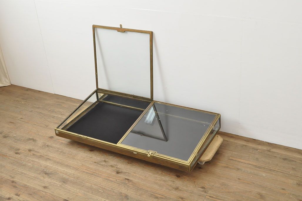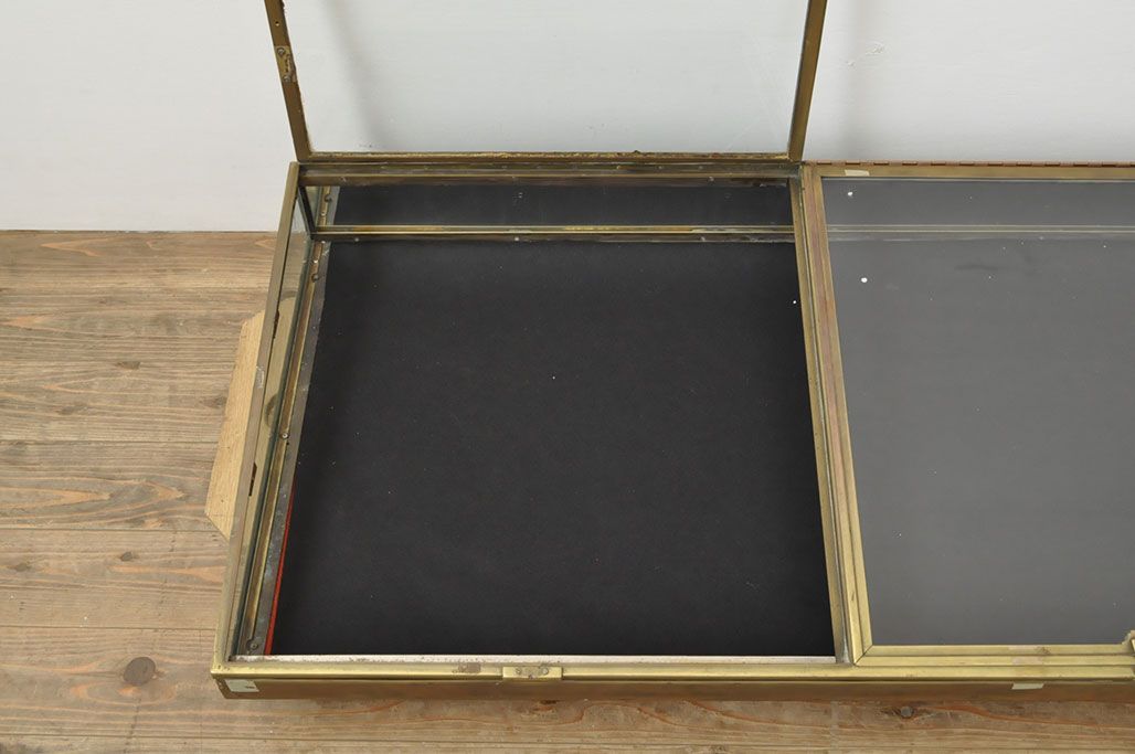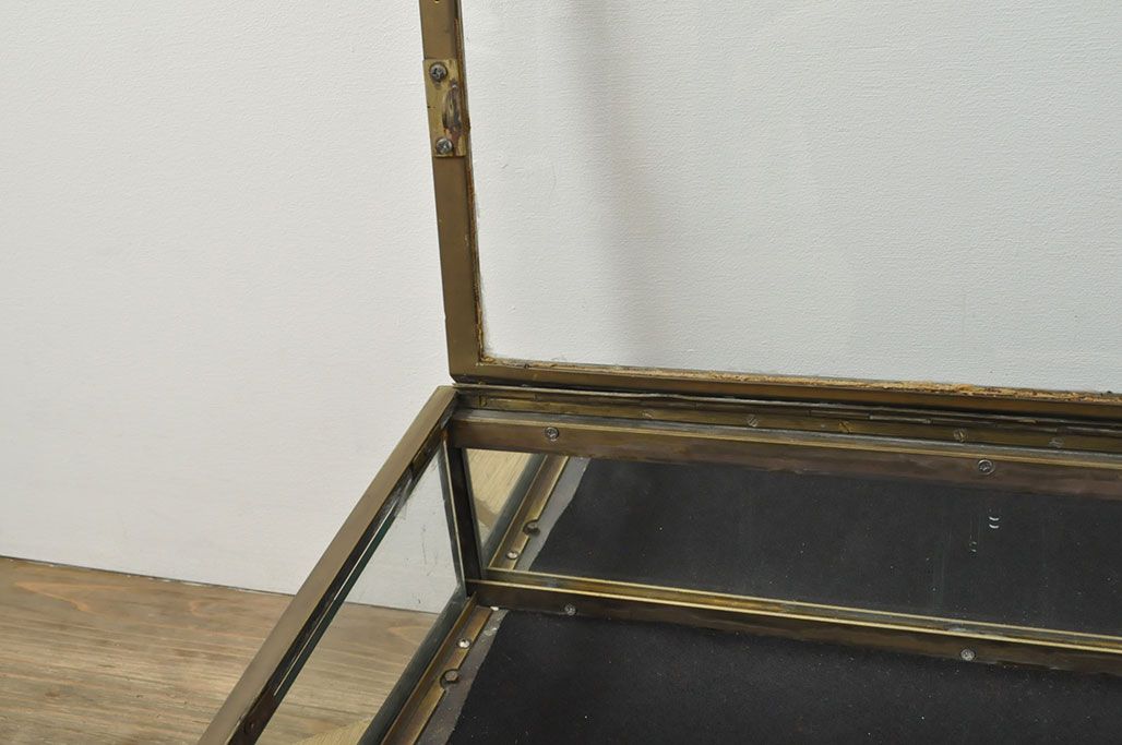 フランスアンティーク 真鍮枠 ジュエリーケースとしてもおすすめな卓上ガラスケース(ショーケース、店舗什器)(R-052978)