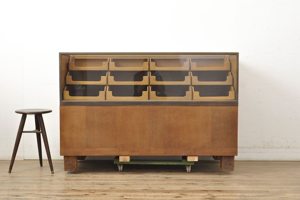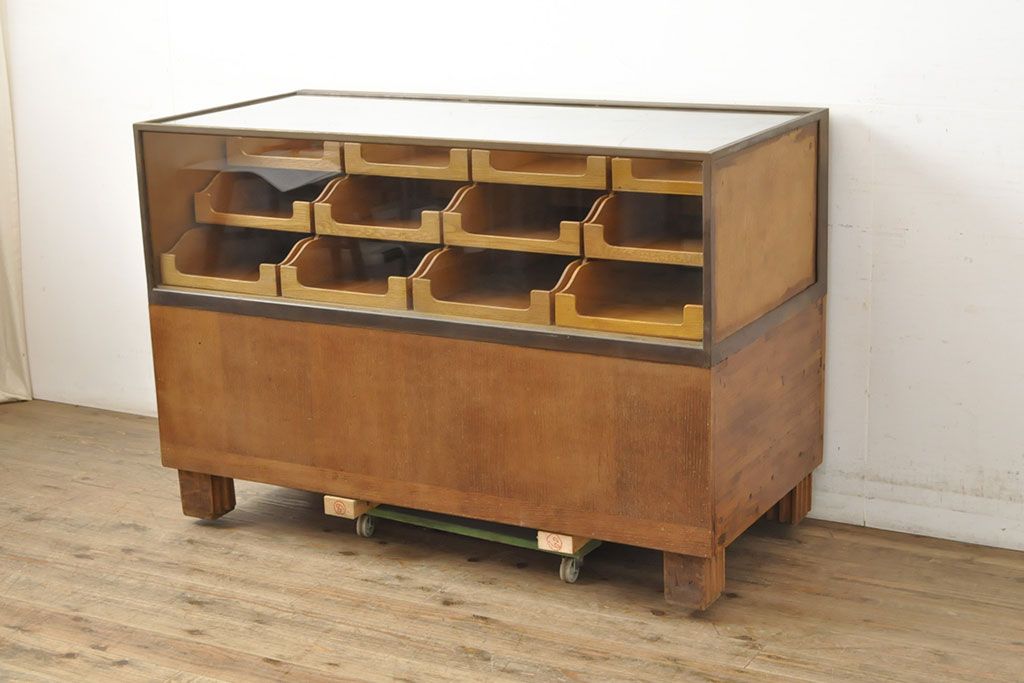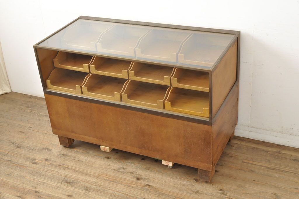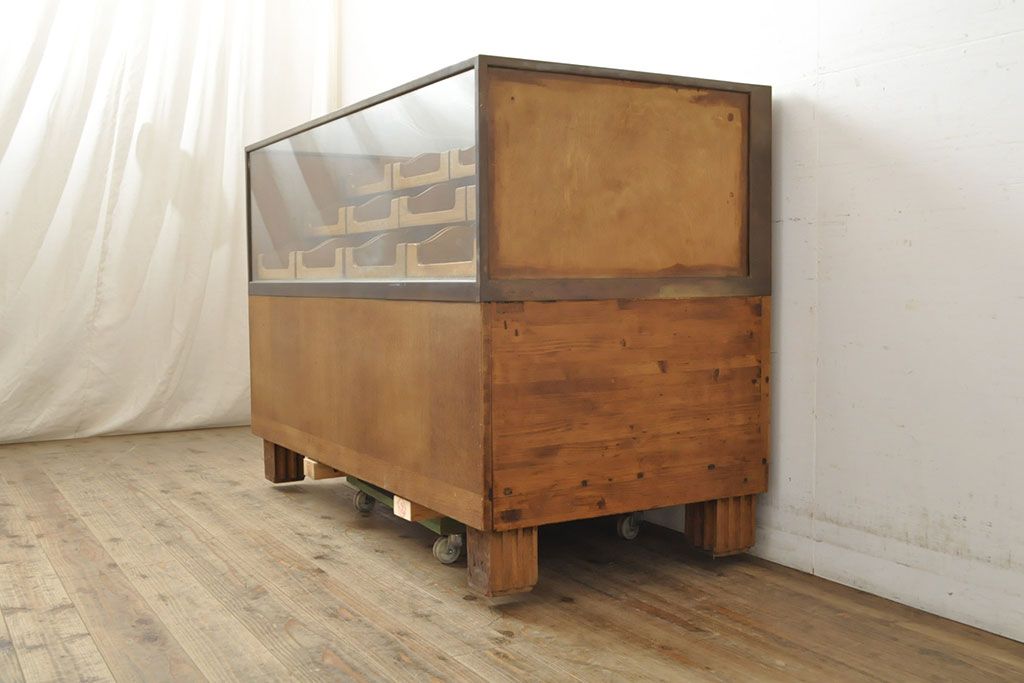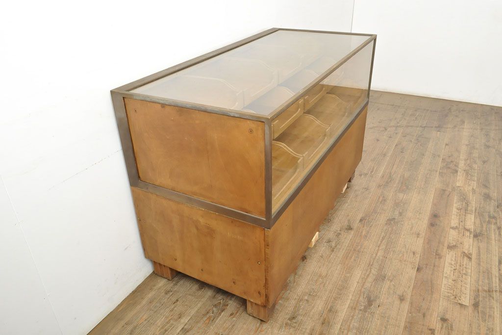 ラフジュ工房> ガラスケース・ショーケース> カウンターショーケース > フランスアンティーク 真鍮枠と木の異素材の組み合わせが渋いシャツケース(ガラスケース、ショーケース、引き出し、店舗什器)(R-052835)