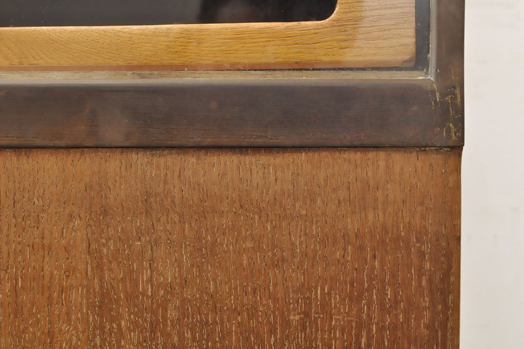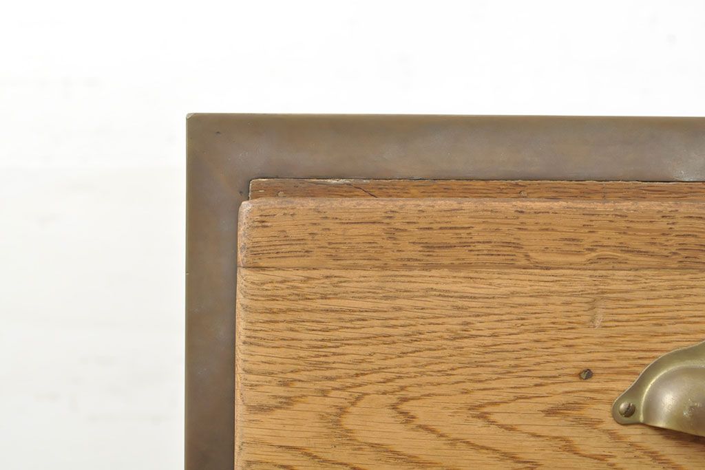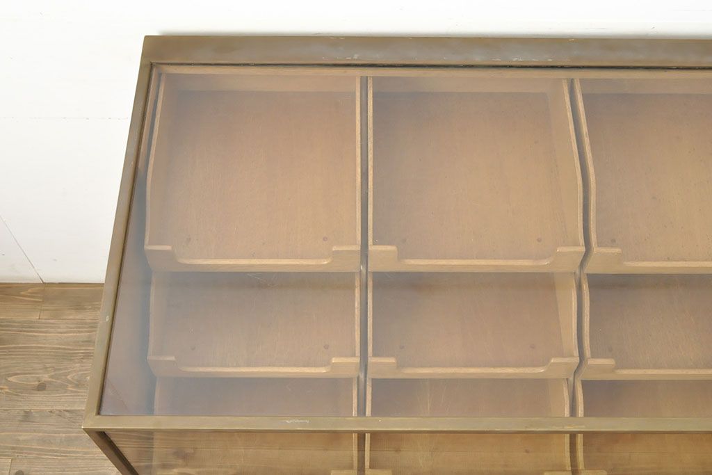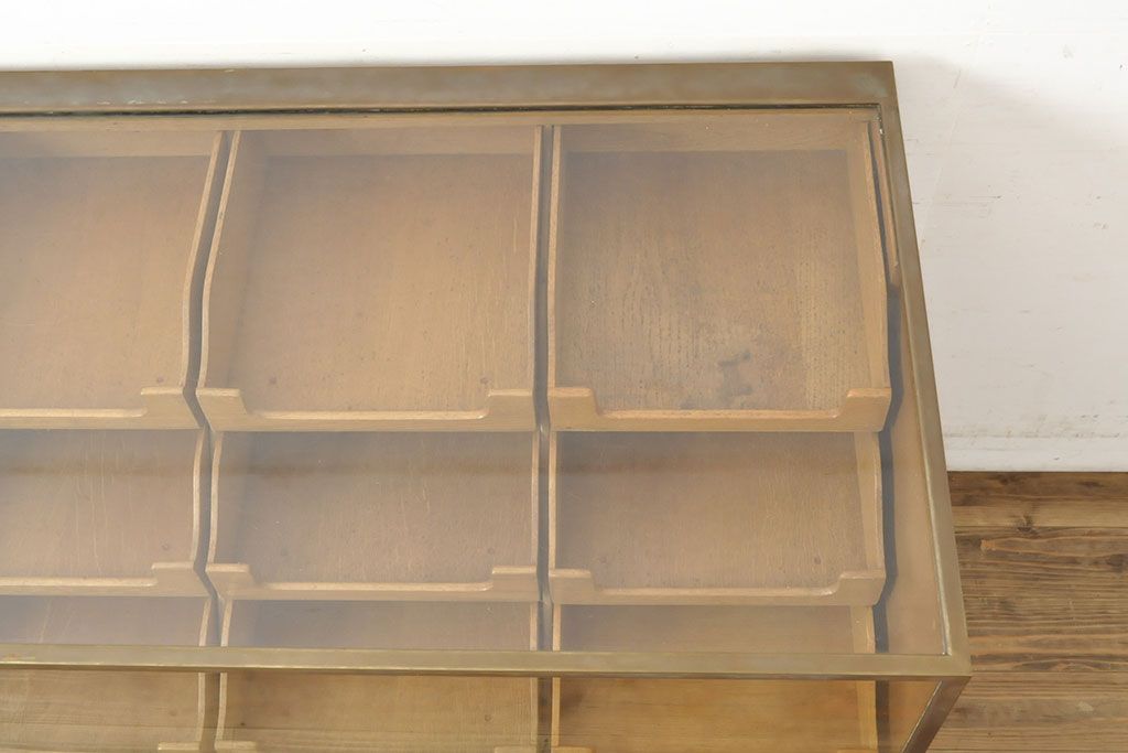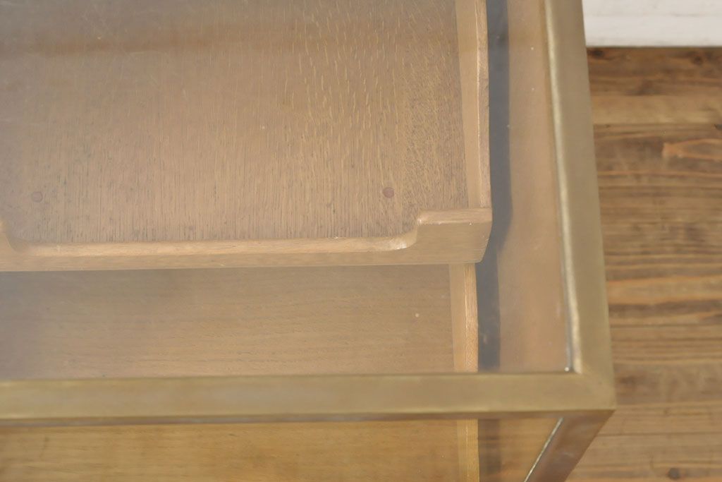 フランスアンティーク 真鍮枠と木の異素材の組み合わせが渋いシャツケース(ガラスケース、ショーケース、引き出し、店舗什器)(R-052835)