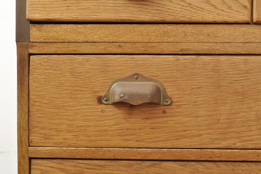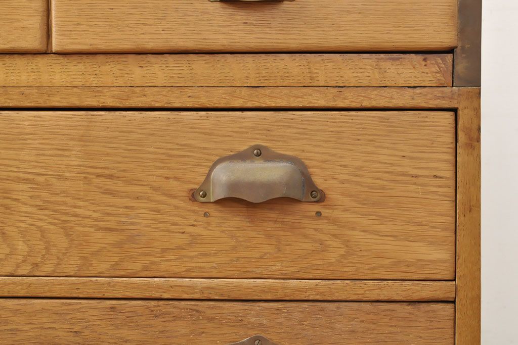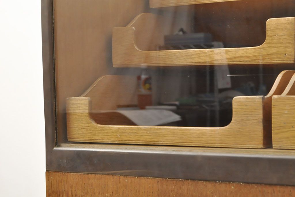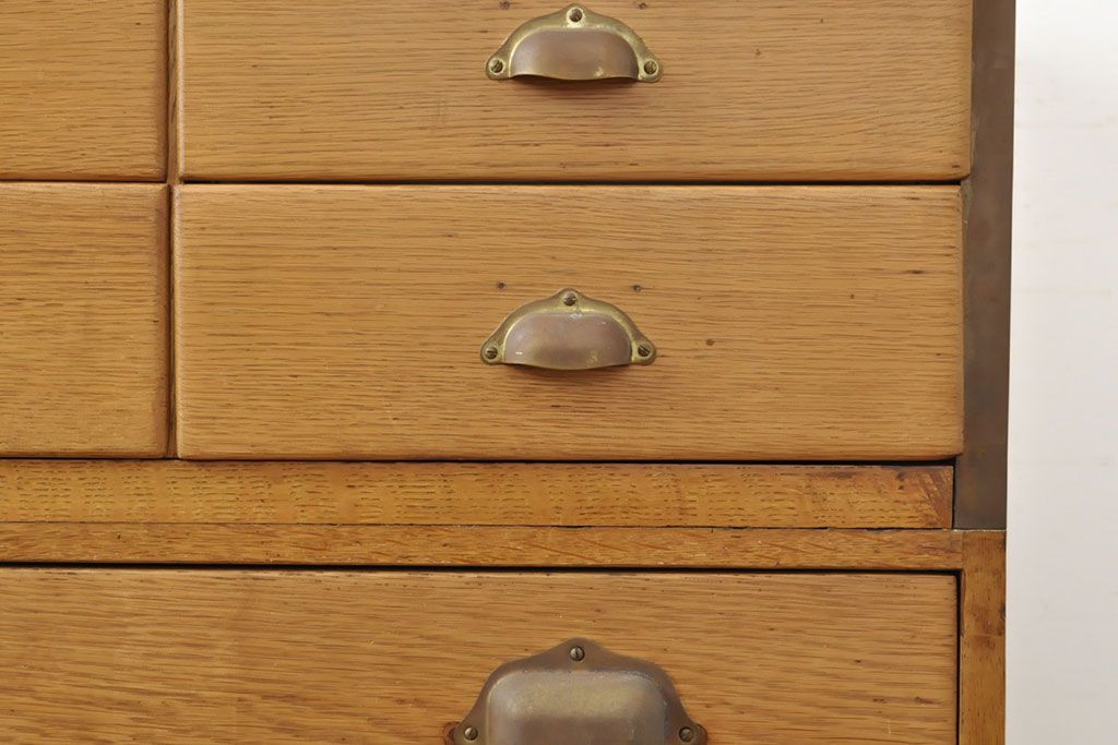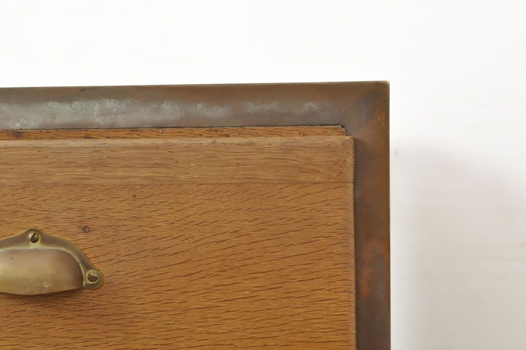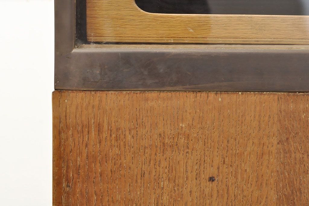 フランスアンティーク 真鍮枠と木の異素材の組み合わせが渋いシャツケース(ガラスケース、ショーケース、引き出し、店舗什器)(R-052835)