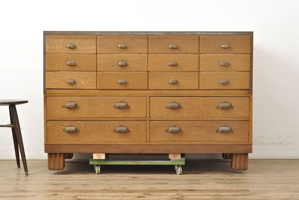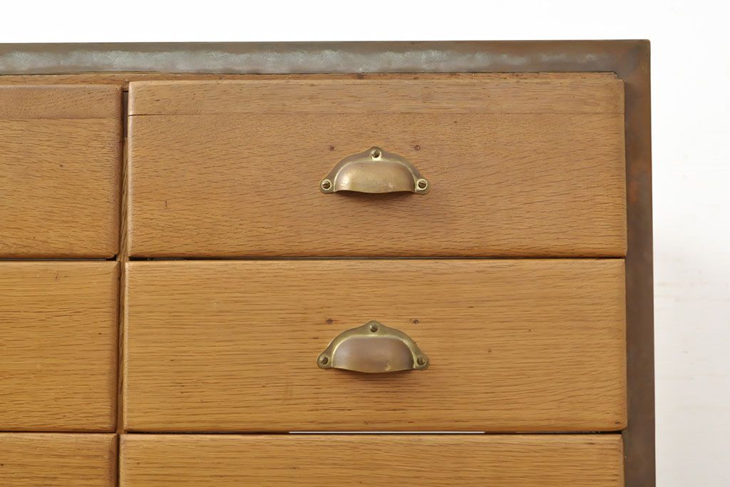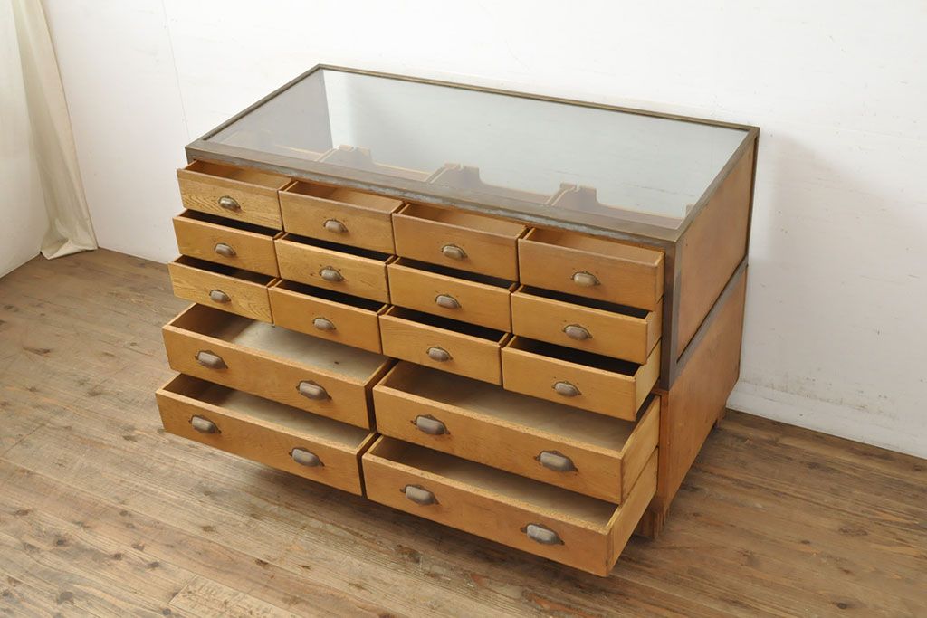 ラフジュ工房> ガラスケース・ショーケース > フランスアンティーク 真鍮枠と木の異素材の組み合わせが渋いシャツケース(ガラスケース、ショーケース、引き出し、店舗什器)(R-052835)