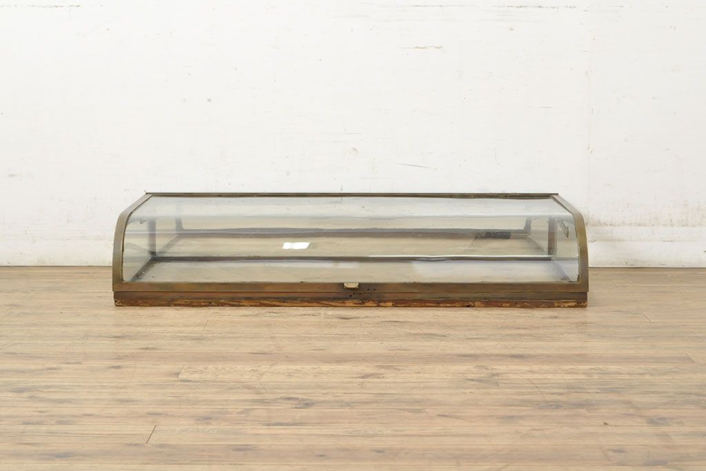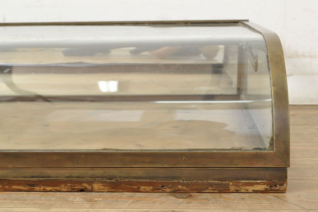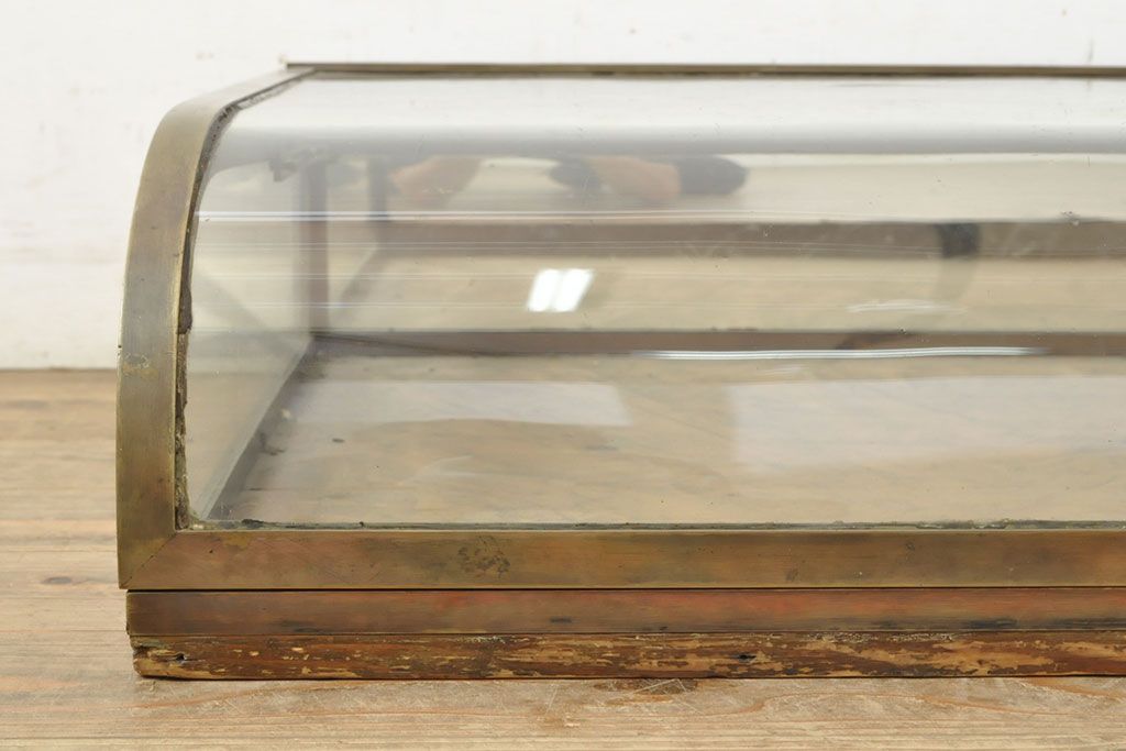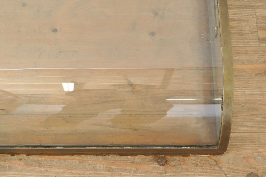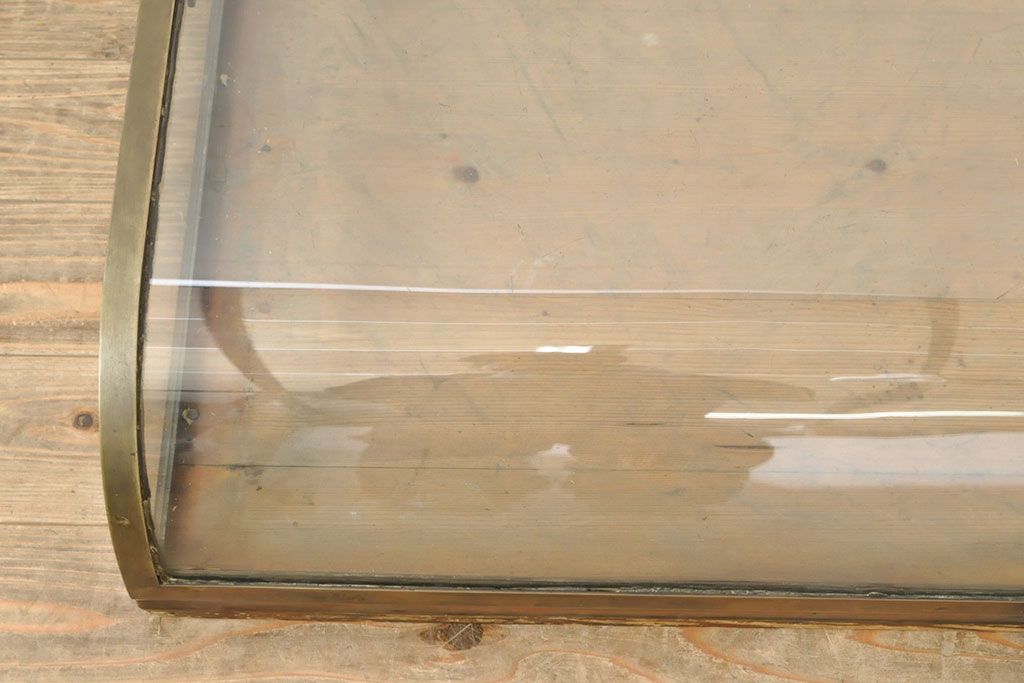フランスアンティーク 真鍮枠がクールな雰囲気を醸し出すRガラス卓上ショーケース(ガラスケース、店舗什器、曲げガラス、陳列棚)(R-052838)