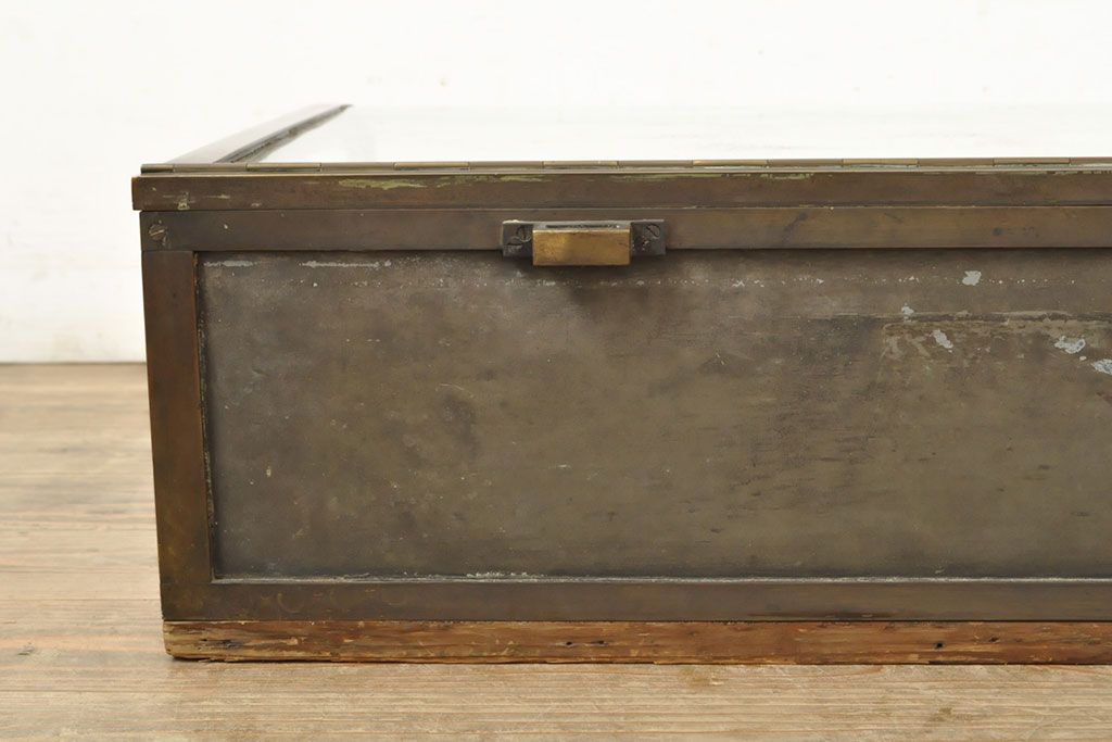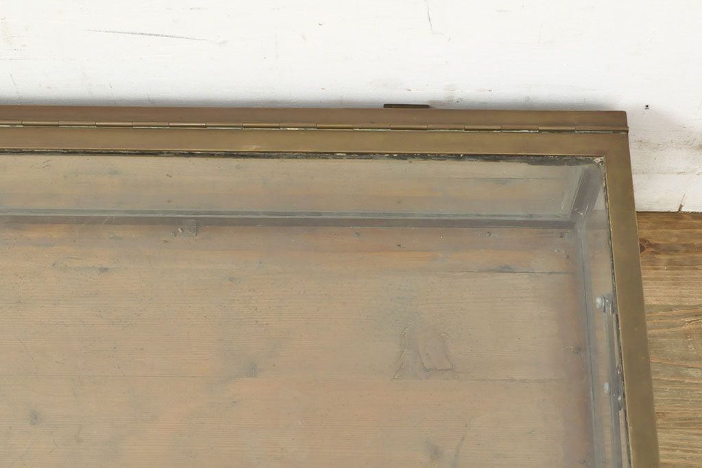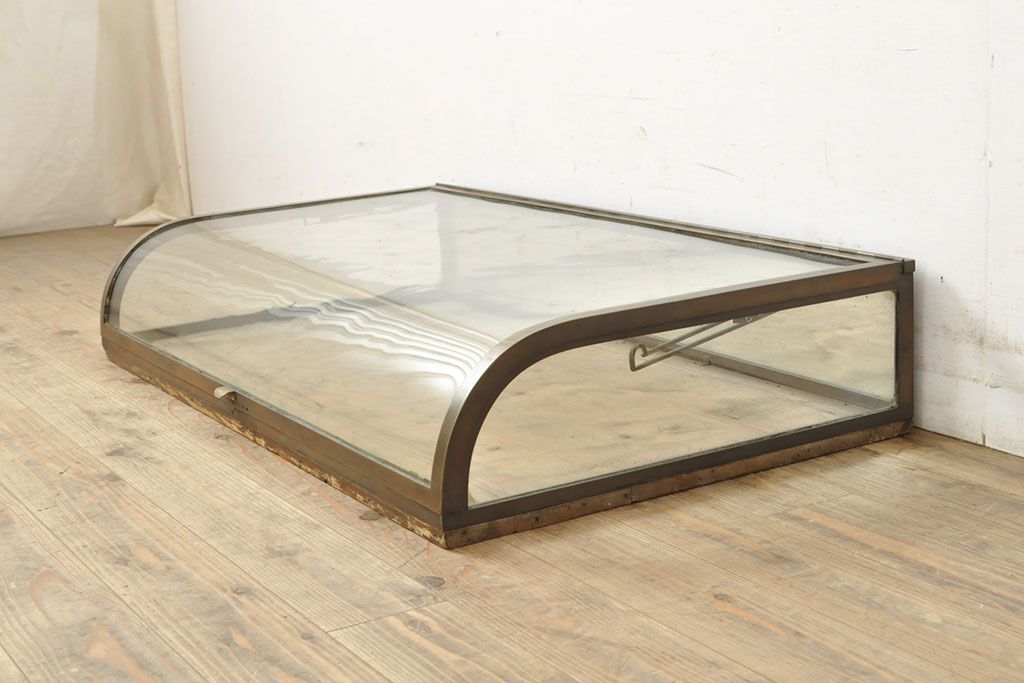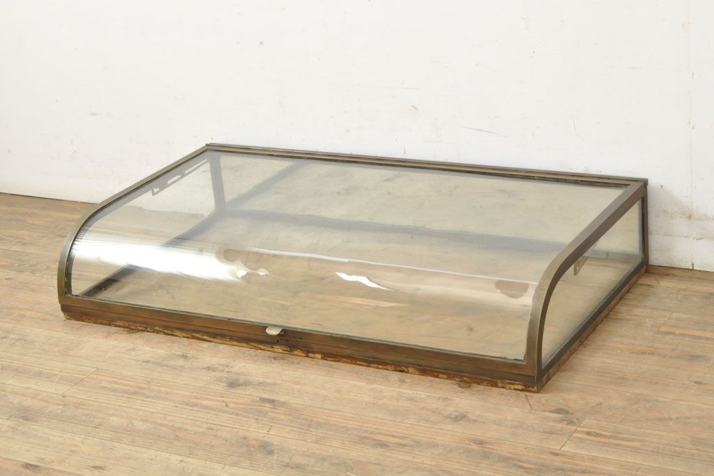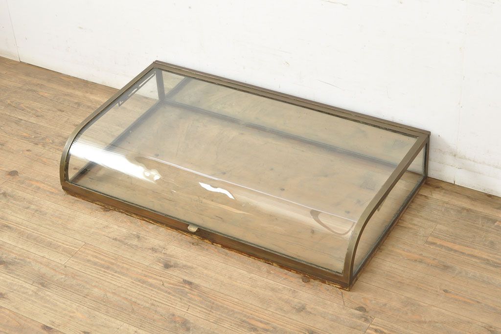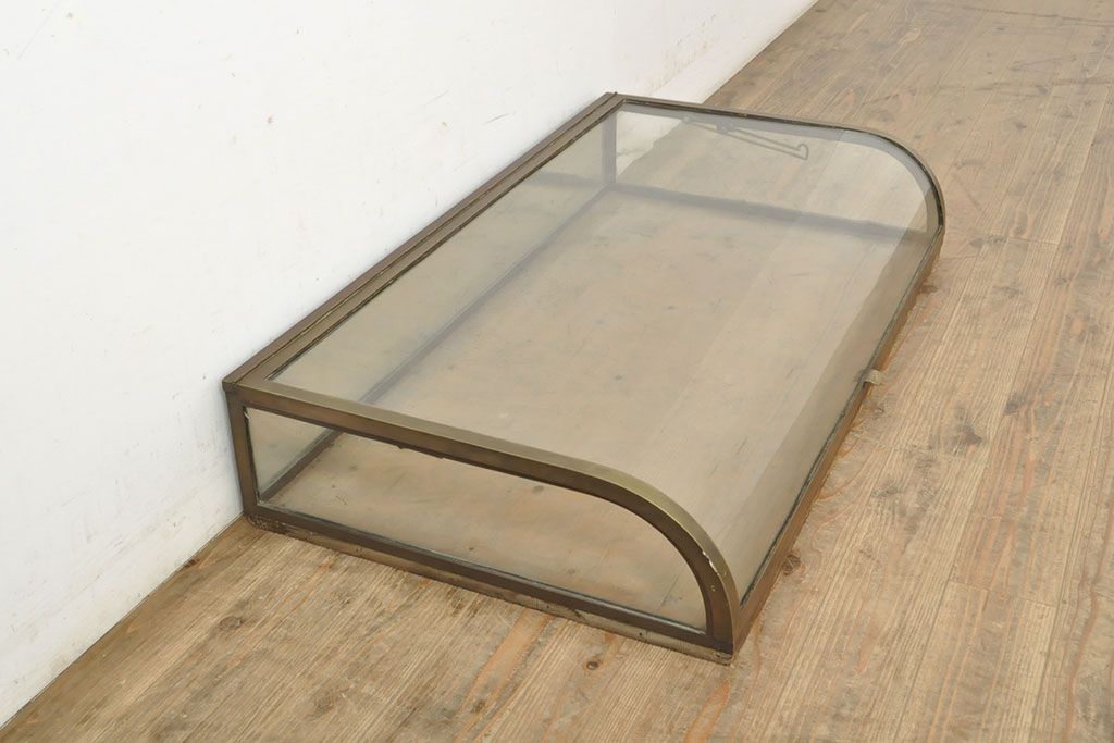 フランスアンティーク 真鍮枠がクールな雰囲気を醸し出すRガラス卓上ショーケース(ガラスケース、店舗什器、曲げガラス、陳列棚)(R-052838)