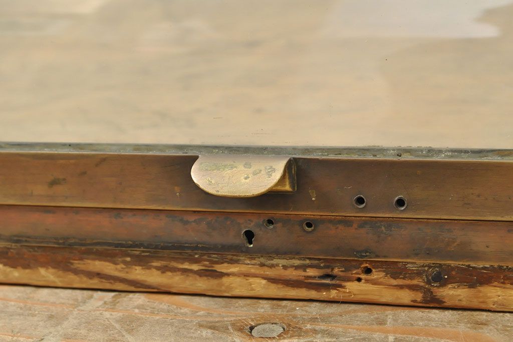 ラフジュ工房> ガラスケース・ショーケース > フランスアンティーク 真鍮枠がクールな雰囲気を醸し出すRガラス卓上ショーケース(ガラスケース、店舗什器、曲げガラス、陳列棚)(R-052838)