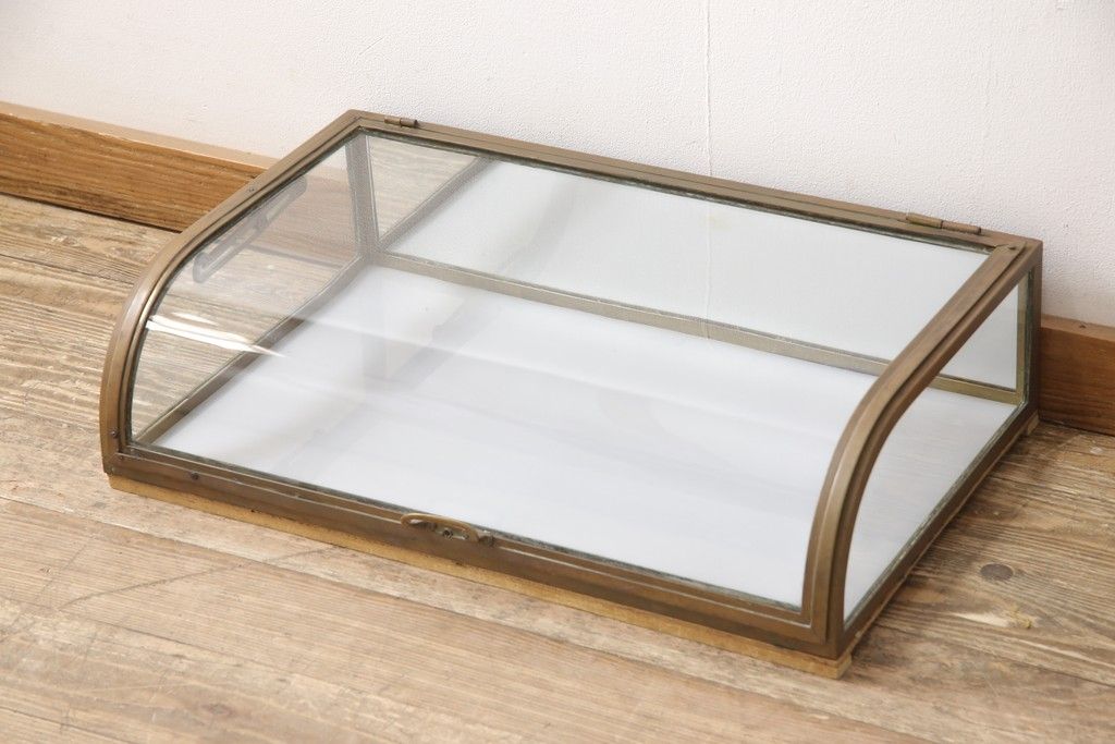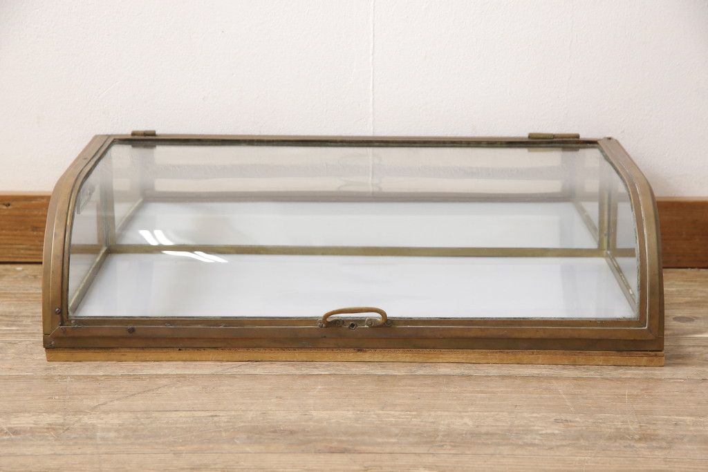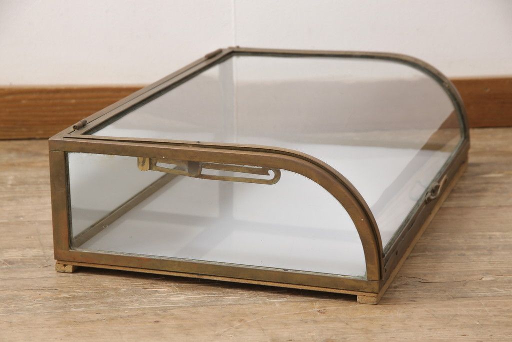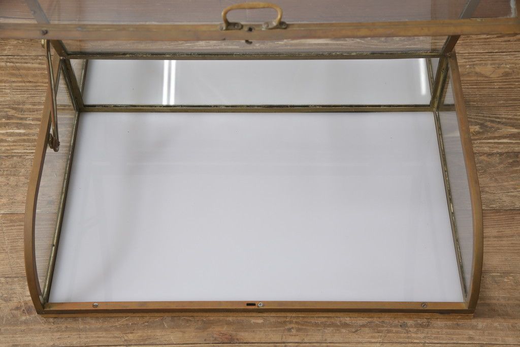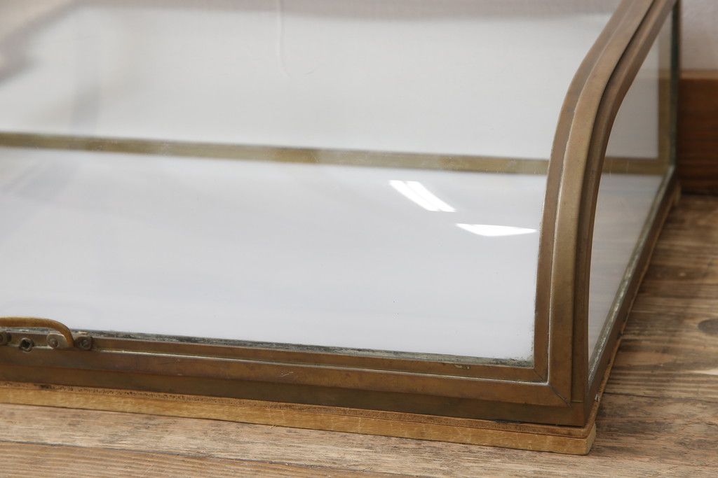 フランスアンティーク 真鍮枠がおしゃれなRガラス卓上ショーケース(ガラスケース、店舗什器)(R-052836)