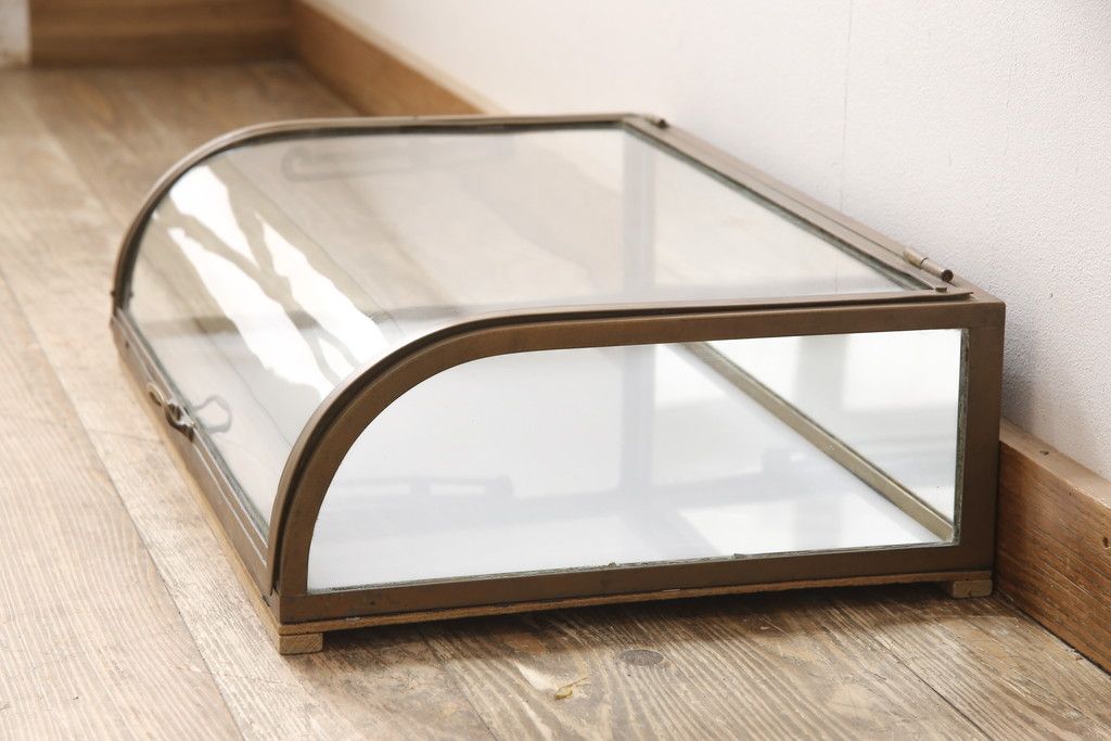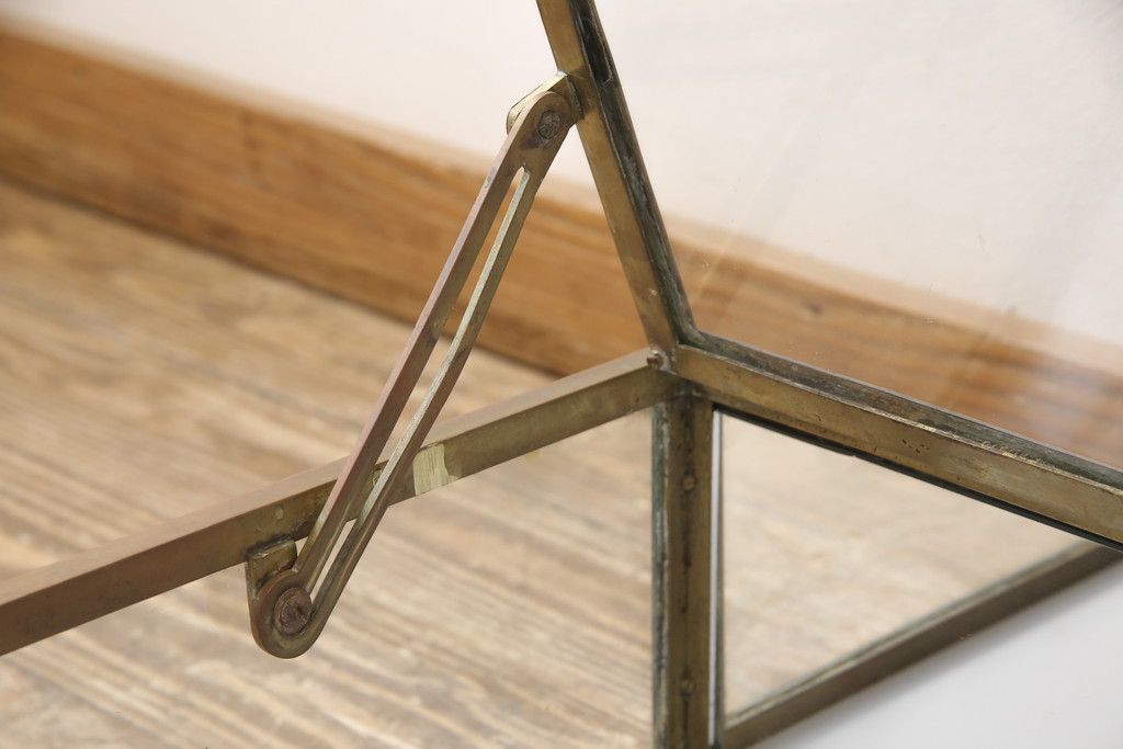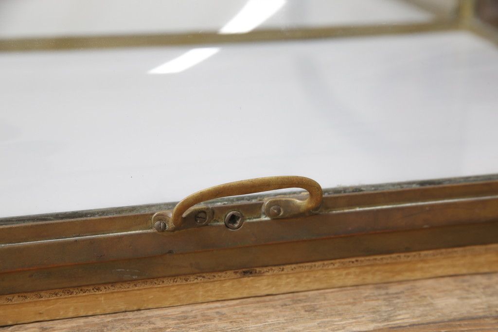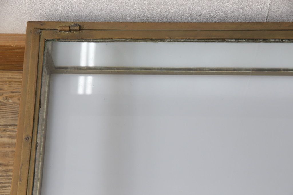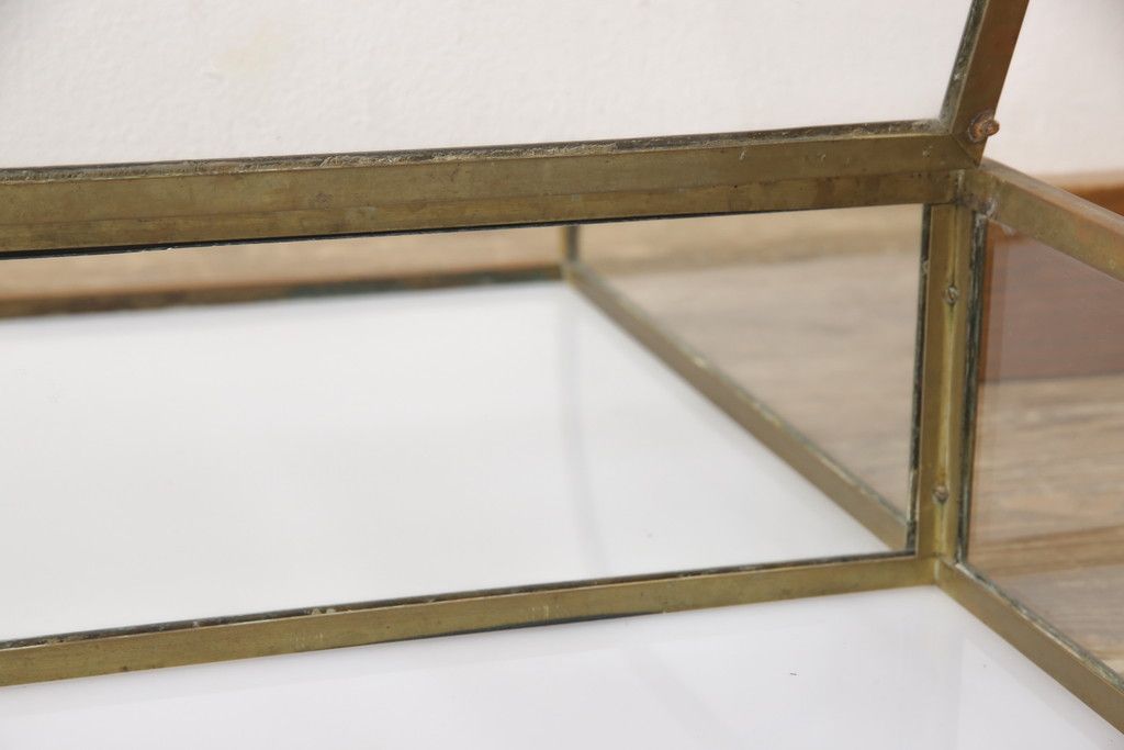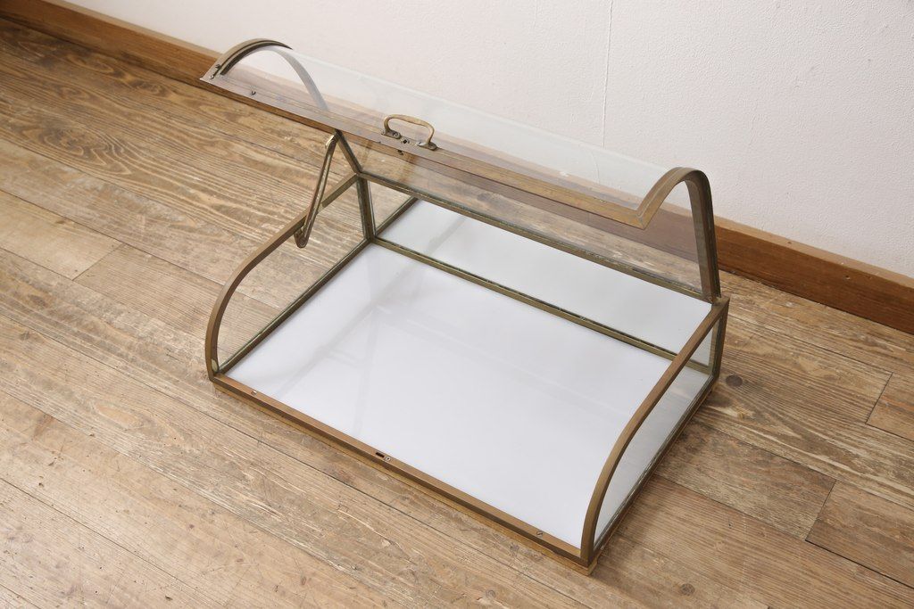 フランスアンティーク 真鍮枠がおしゃれなRガラス卓上ショーケース(ガラスケース、店舗什器)(R-052836)