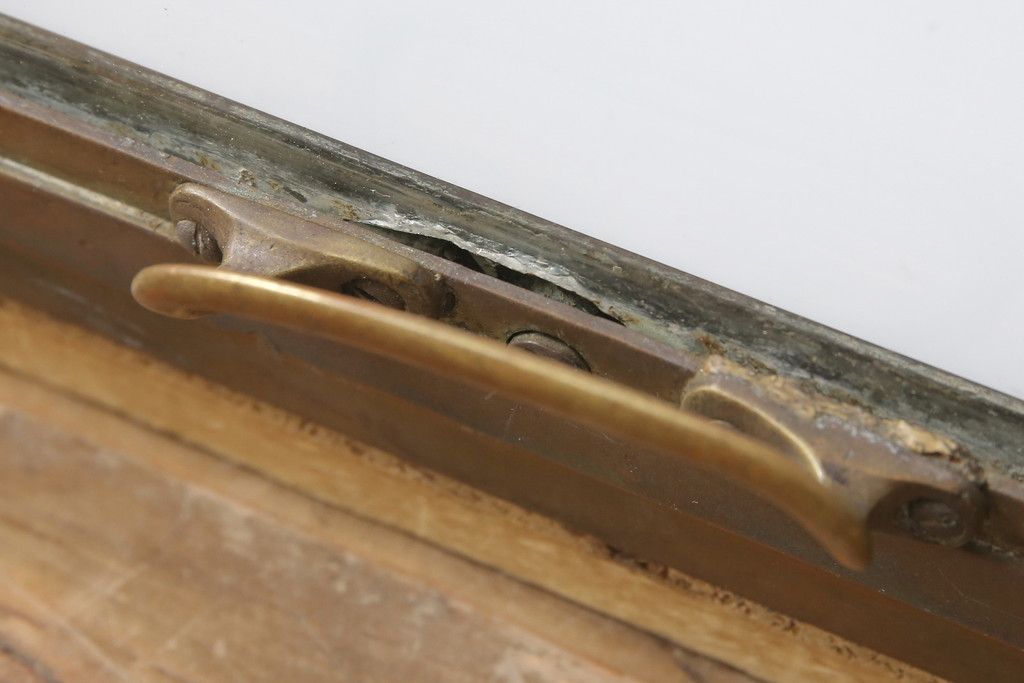 お問い合わせいただければ、優先してアップいたします。フランスアンティーク 真鍮枠がおしゃれなRガラス卓上ショーケース(ガラスケース、店舗什器)(R-052836)です。
