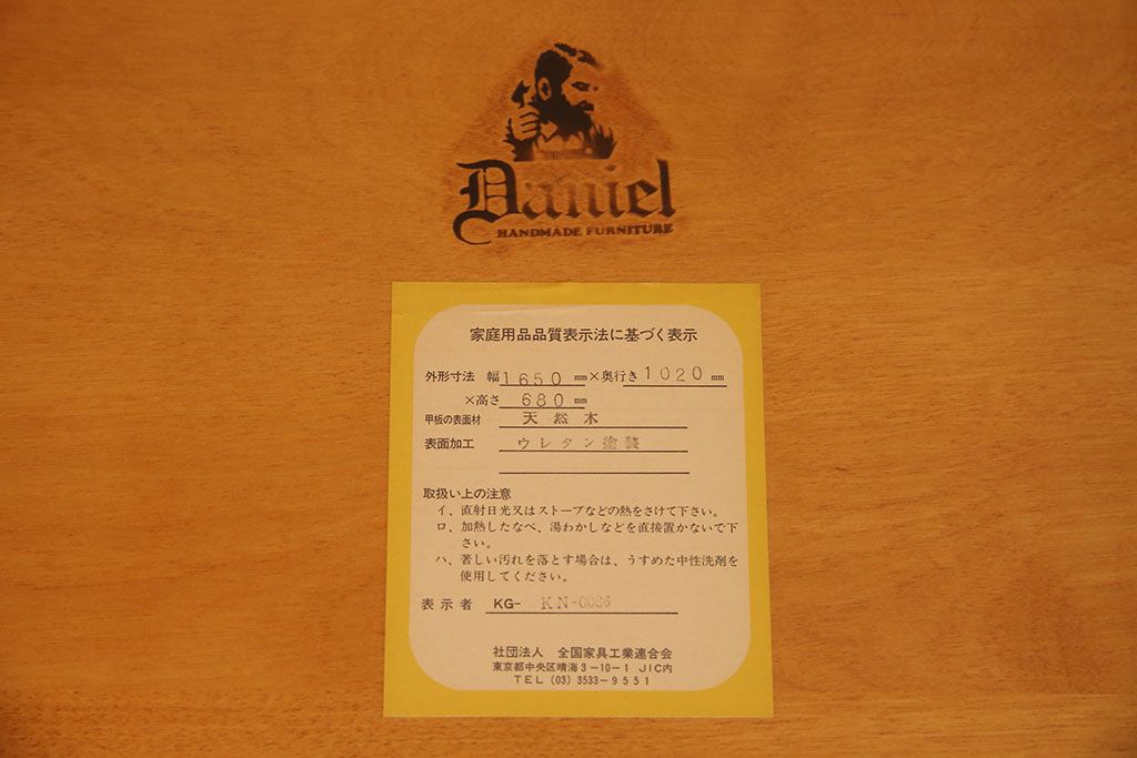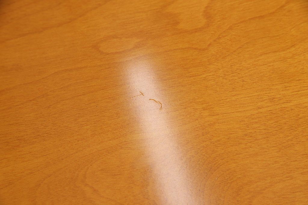 天板は当店でクリア塗装を施しております。小キズ等が目立ちにくく、耐水性と耐久性に優れたお手入れがしやすい仕上げです。