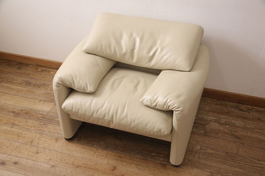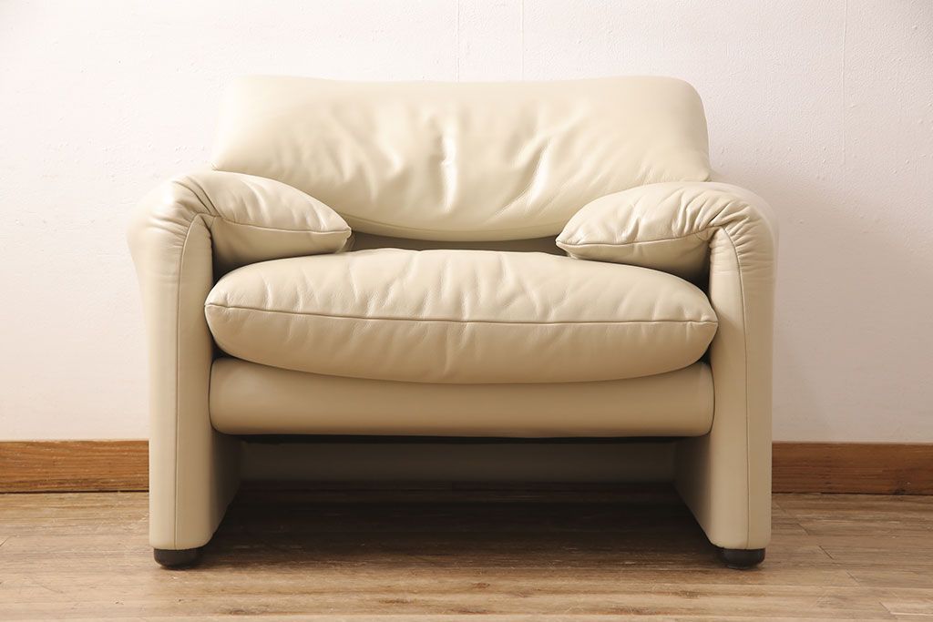 中古 超美品 2019年3月購入品 Cassina(カッシーナ) MARALUNGA(マラルンガ) FYランク革 オイスターホワイトの1人掛けソファ(定価約110万円)(アームチェア)(R-052956)です。