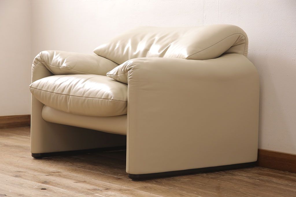 椅子・ベンチ> アームチェア > 中古 超美品 2019年3月購入品 Cassina(カッシーナ) MARALUNGA(マラルンガ) FYランク革 オイスターホワイトの1人掛けソファ(定価約110万円)(アームチェア)(R-052956)