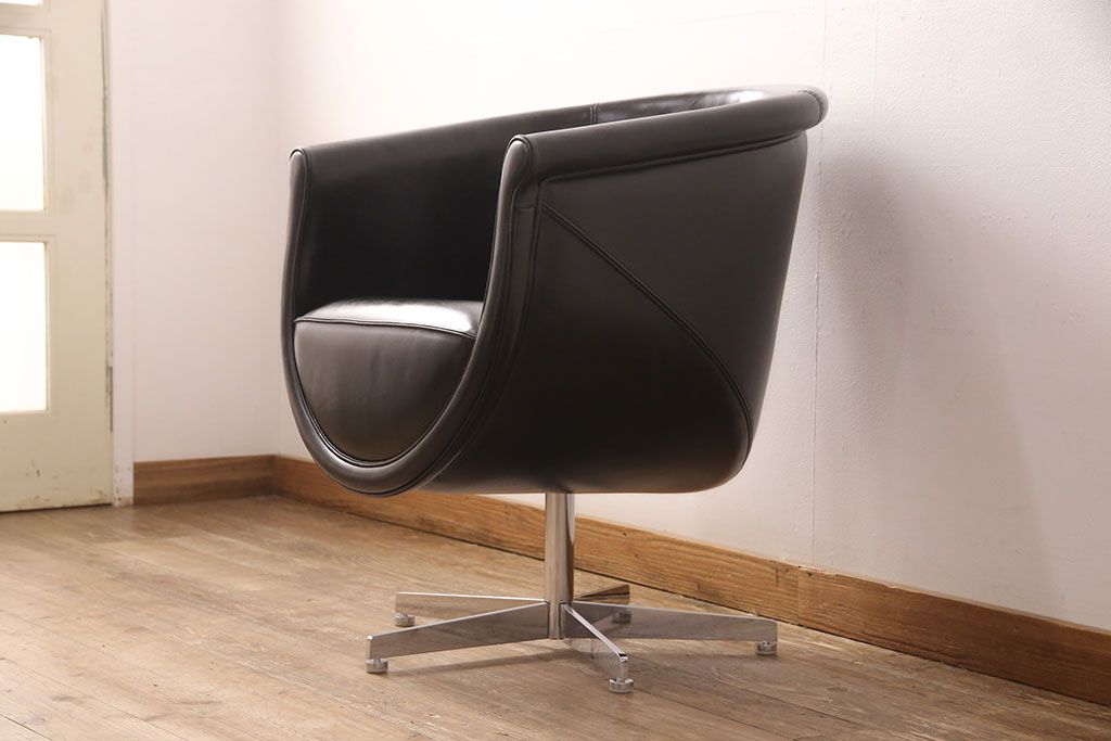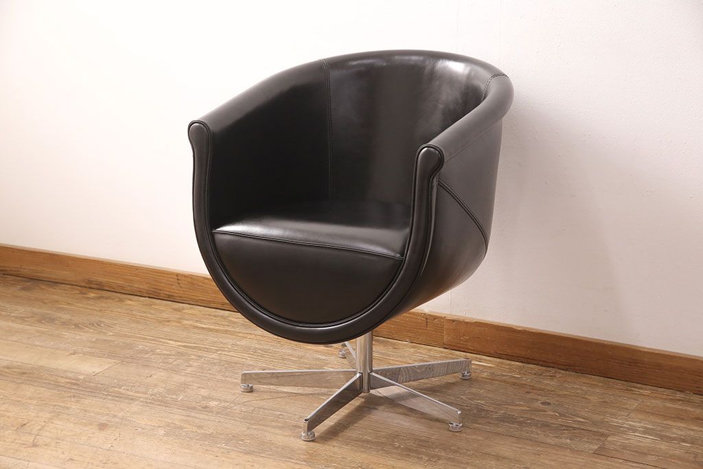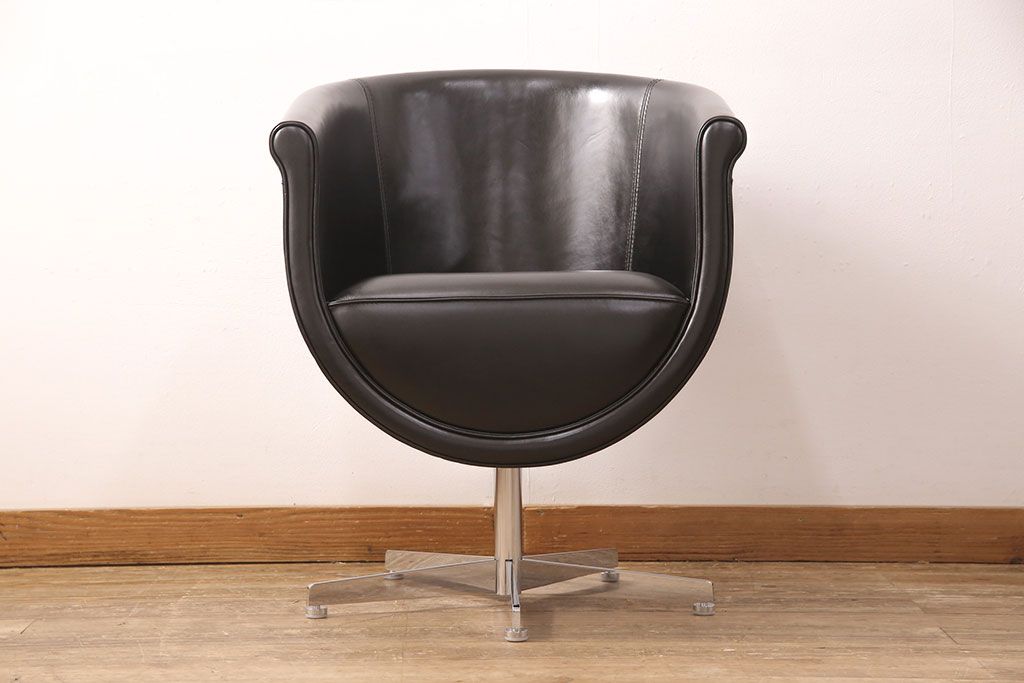 椅子・ベンチ> 回転椅子 > 中古 極美品 上質 MASCHERONI(マスケローニ) 艶やかな本革が高級感漂うパーソナルチェア(定価約80万円)(アームチェア、回転チェア、ラウンジチェア)(R-052746)
