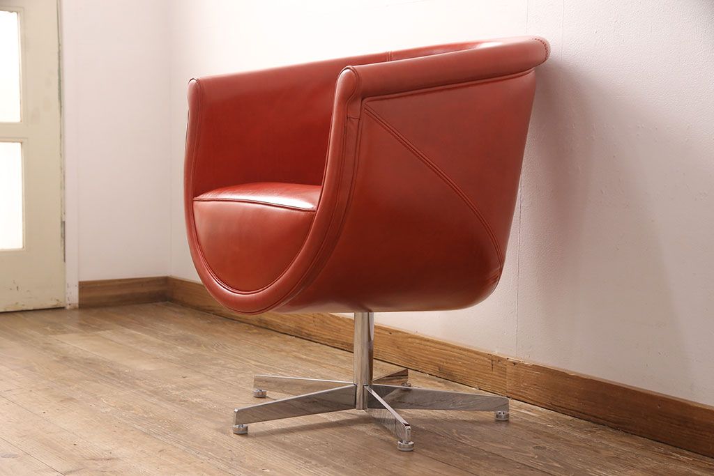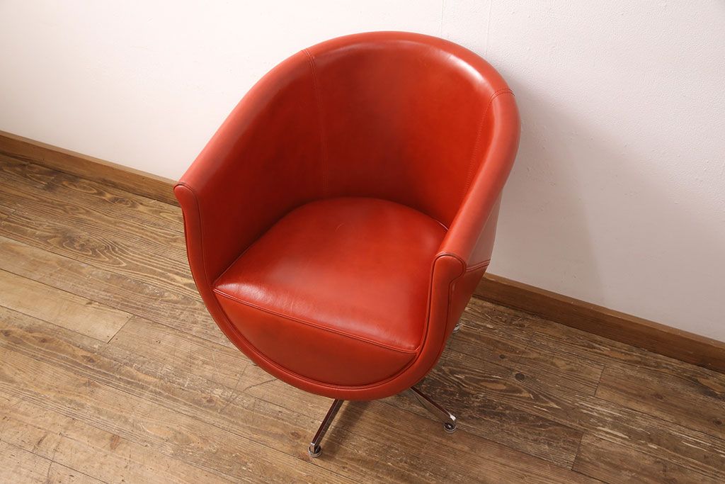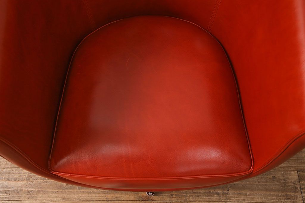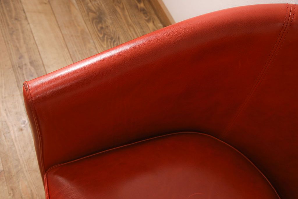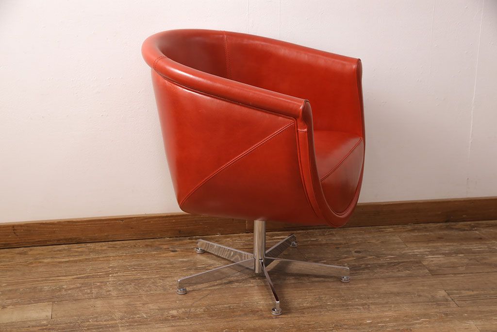 椅子・ベンチ> 回転椅子 > 中古 極美品 上質 MASCHERONI(マスケローニ) 艶やかな本革が高級感漂うパーソナルチェア(定価約80万円)(アームチェア、回転チェア、ラウンジチェア)(R-052745)