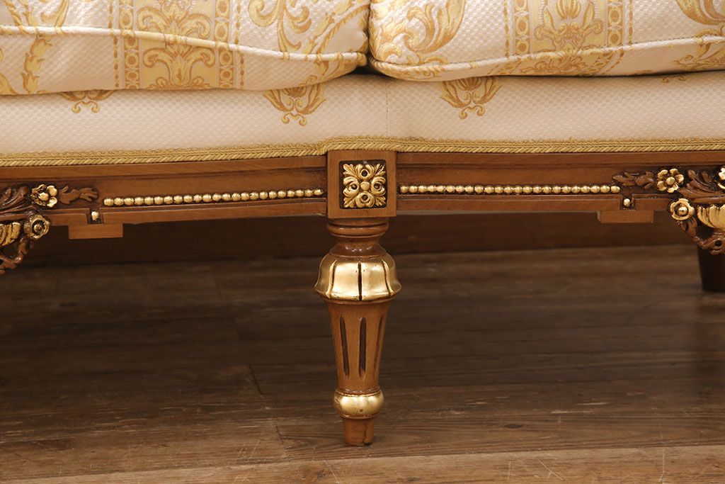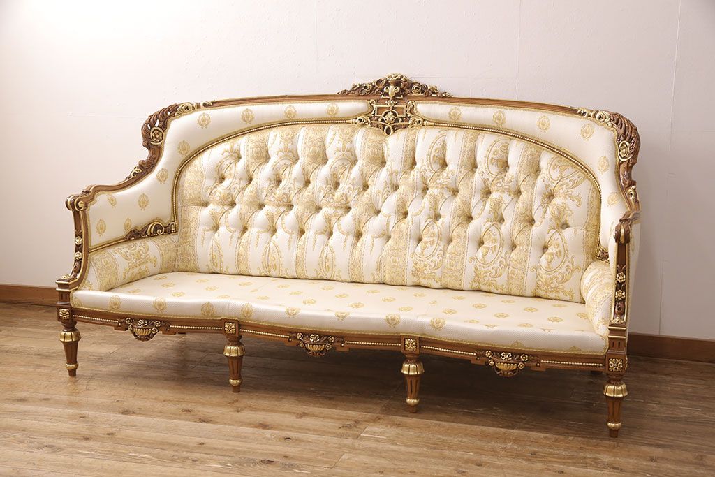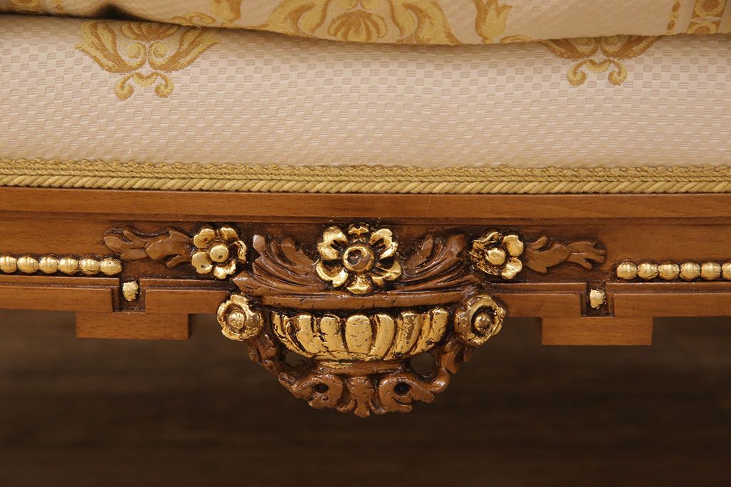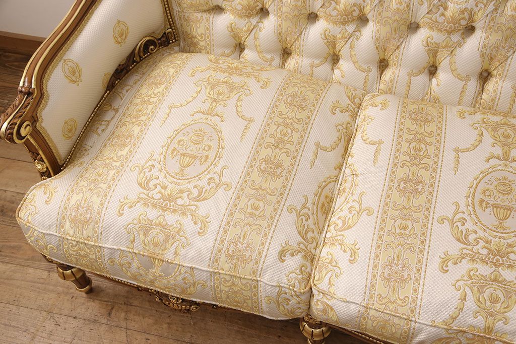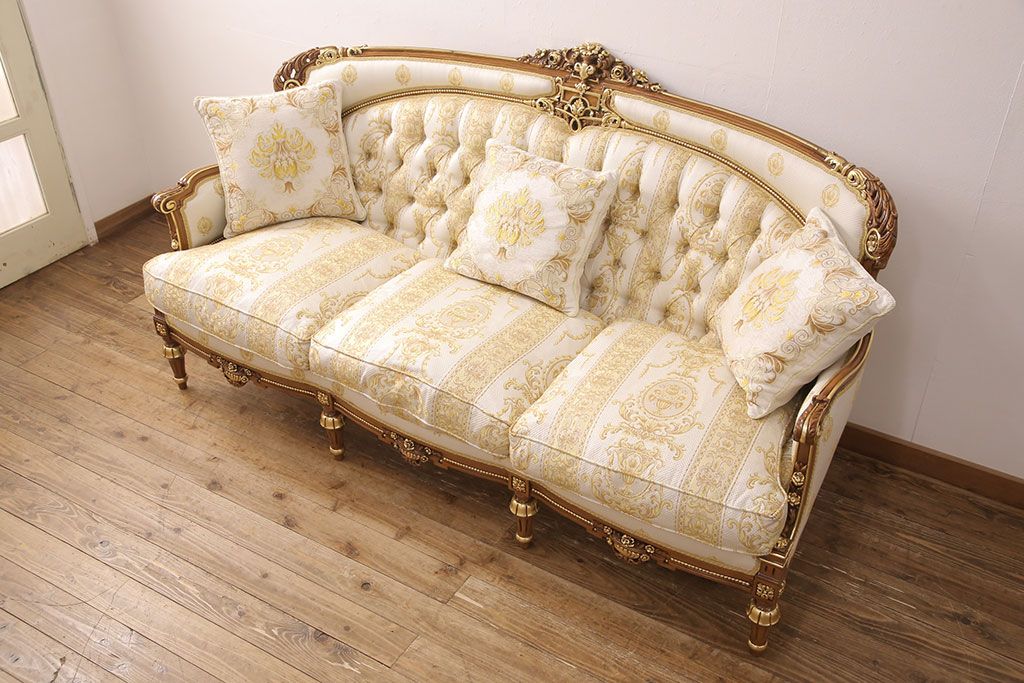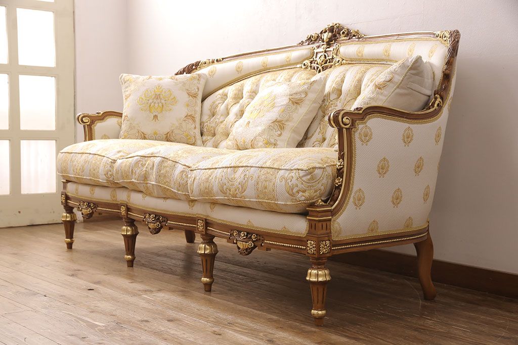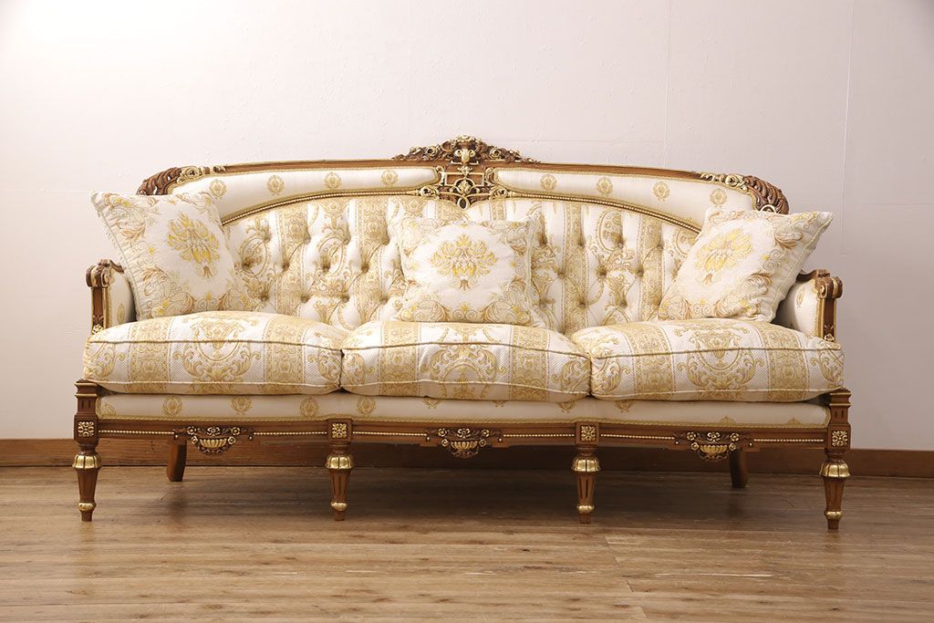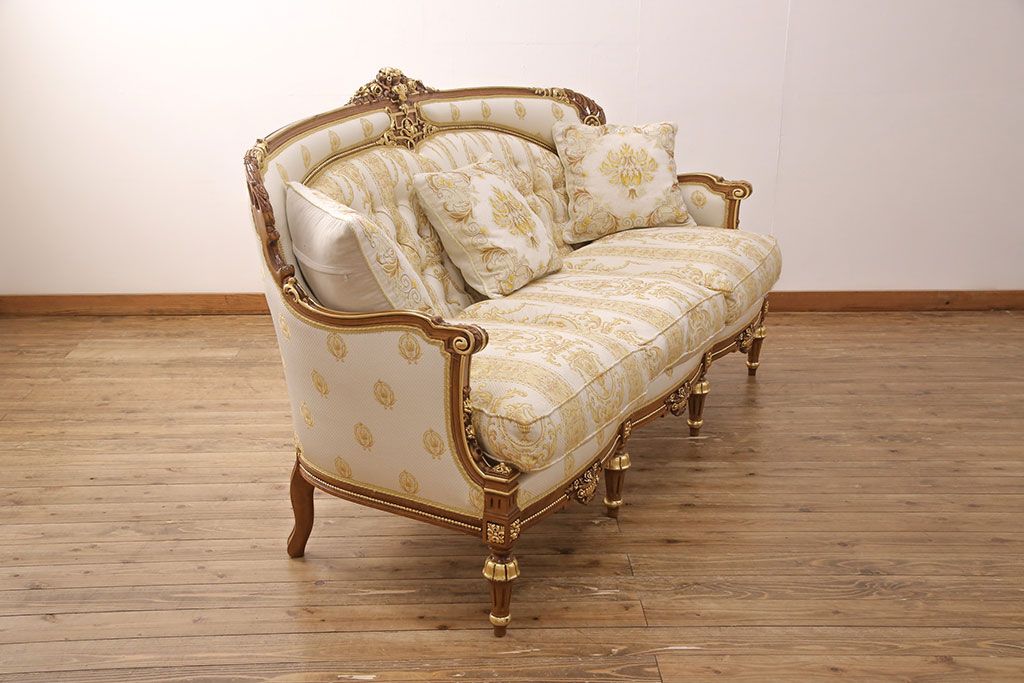 中古 極美品 フラテリ・オリッジ(FRATELLI ORIGGI)(旧マリオ・コルチャゴ) ロココ調のデザインが上品な3人掛けソファ(定価約120万円)(三人掛けソファ)(R-052678)
