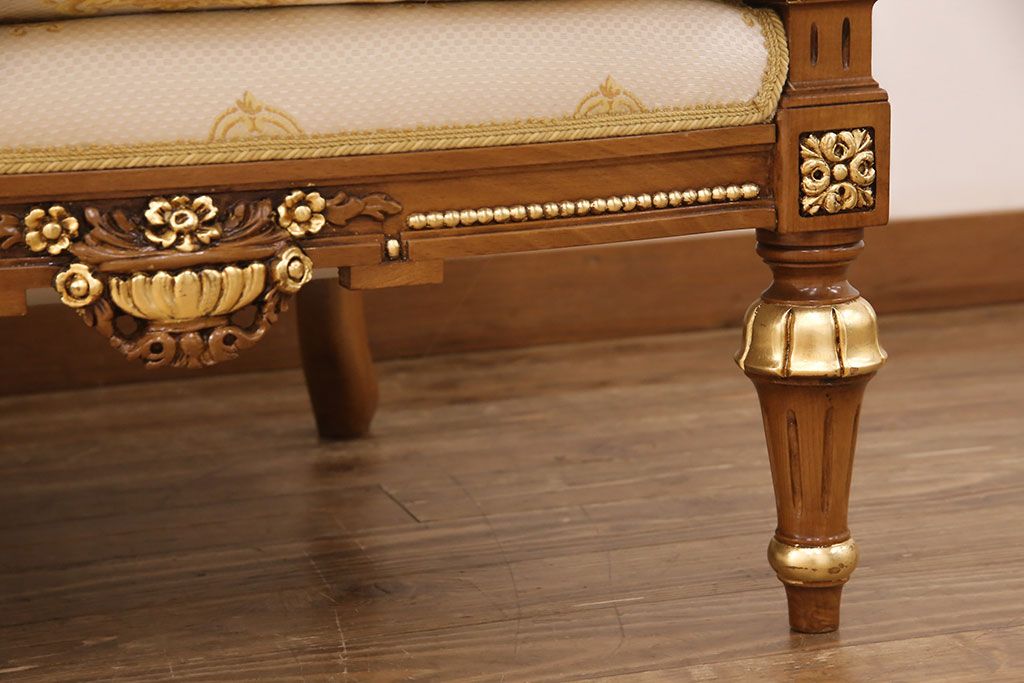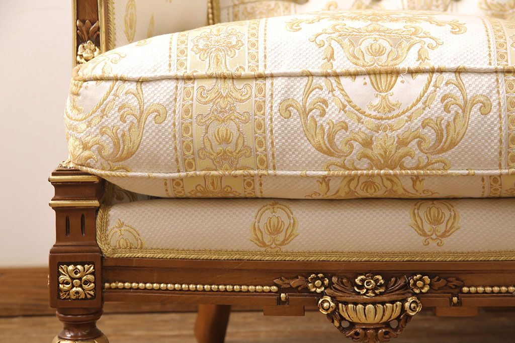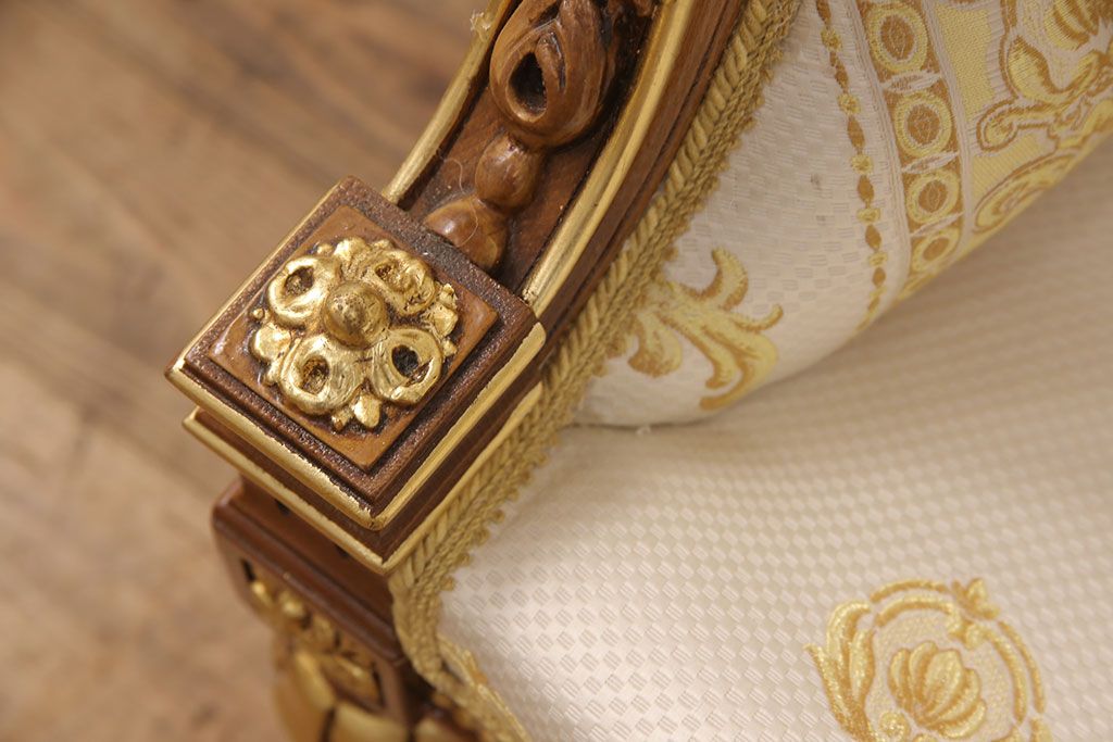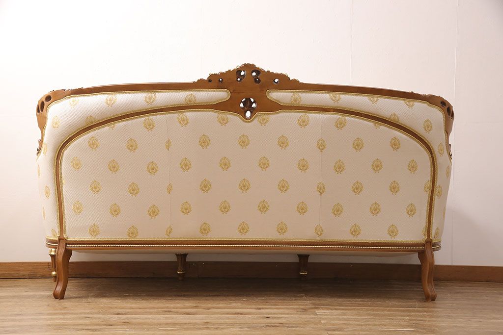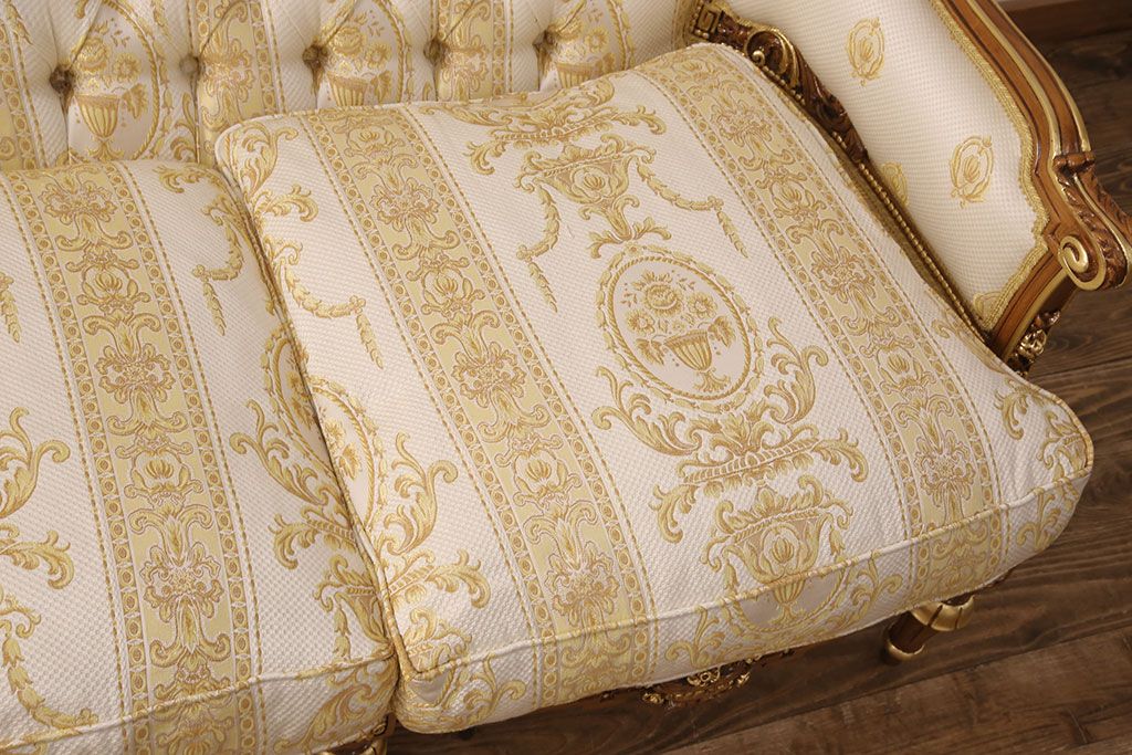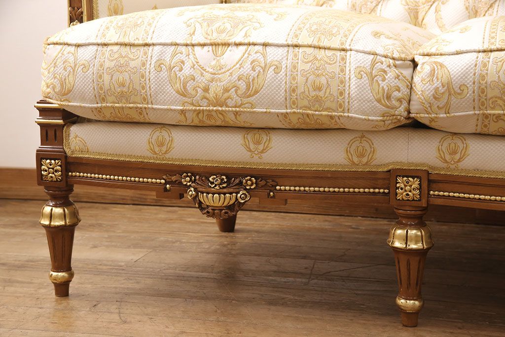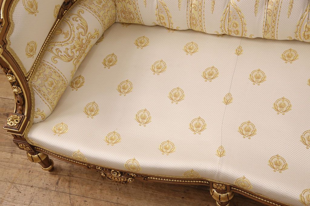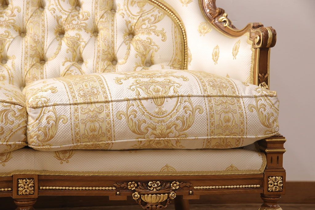中古 極美品 フラテリ・オリッジ(FRATELLI ORIGGI)(旧マリオ・コルチャゴ) ロココ調のデザインが上品な3人掛けソファ(定価約120万円)(三人掛けソファ)(R-052678)