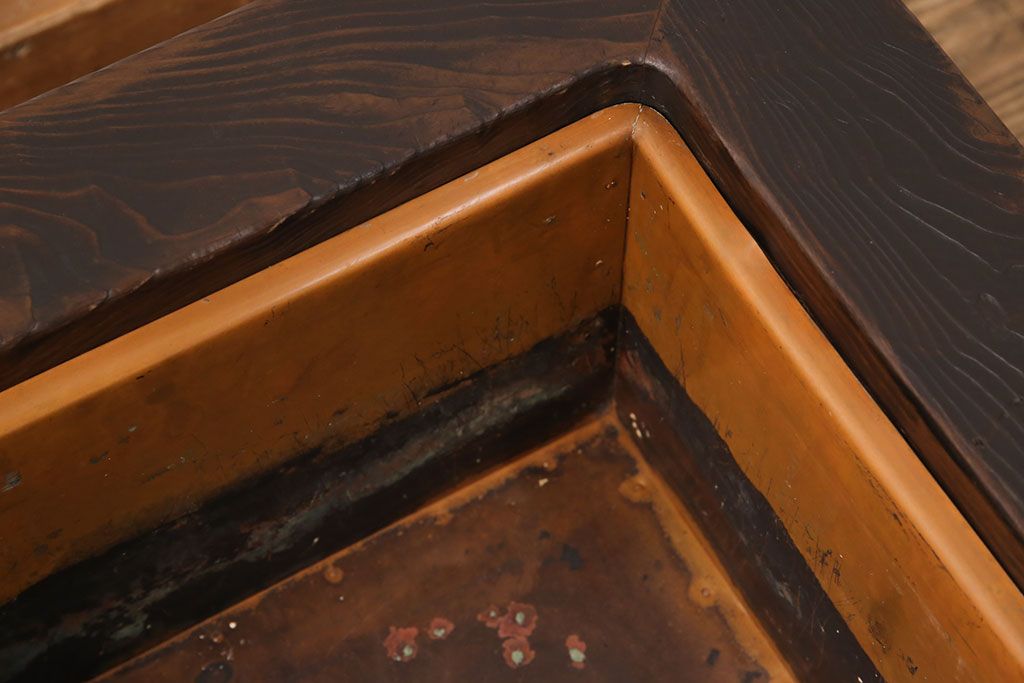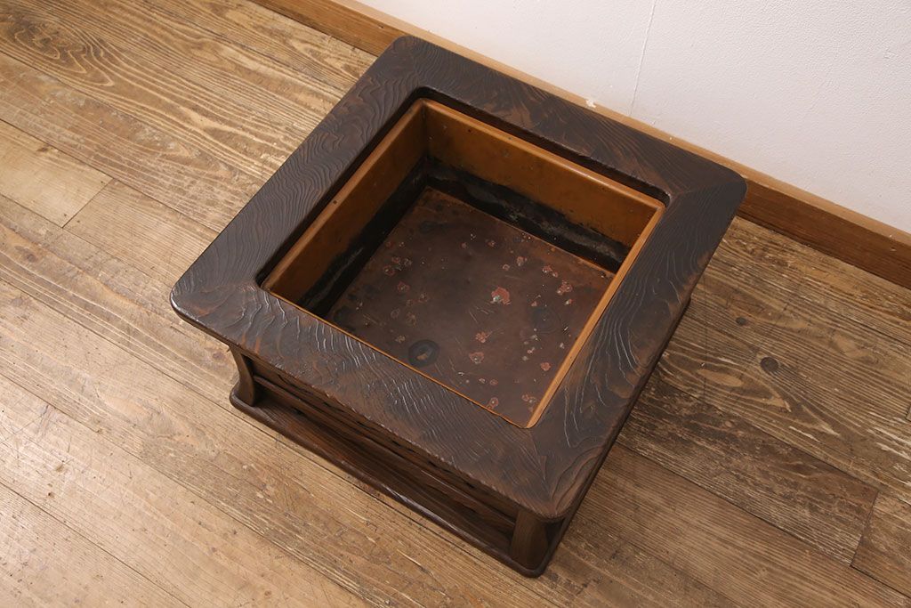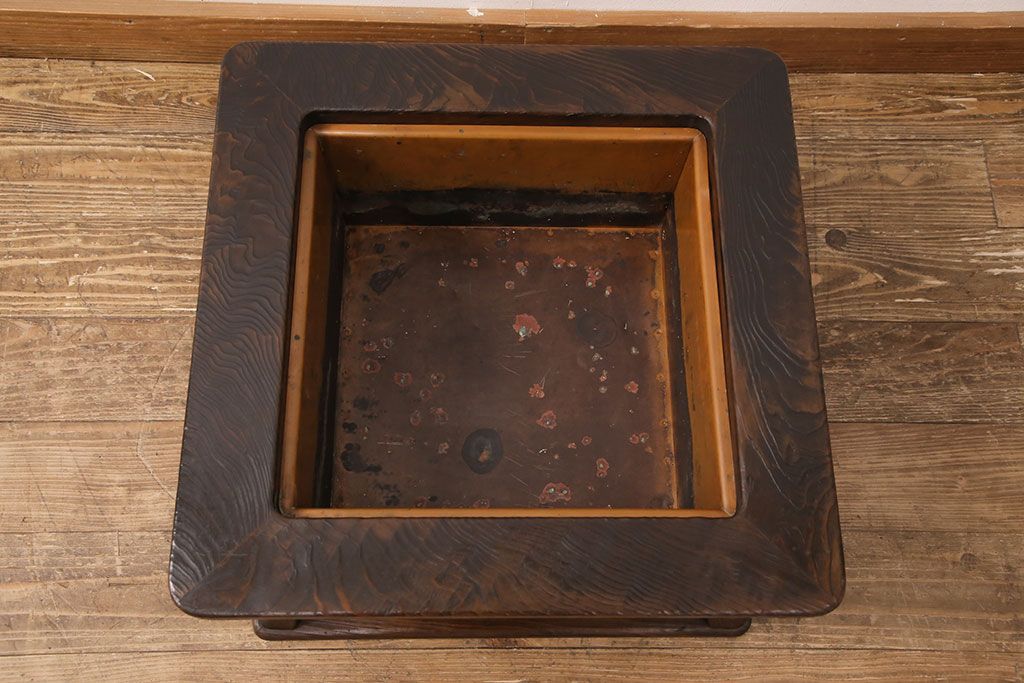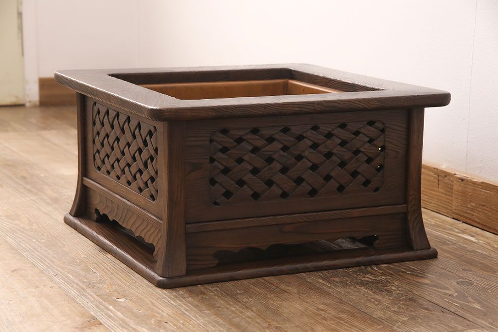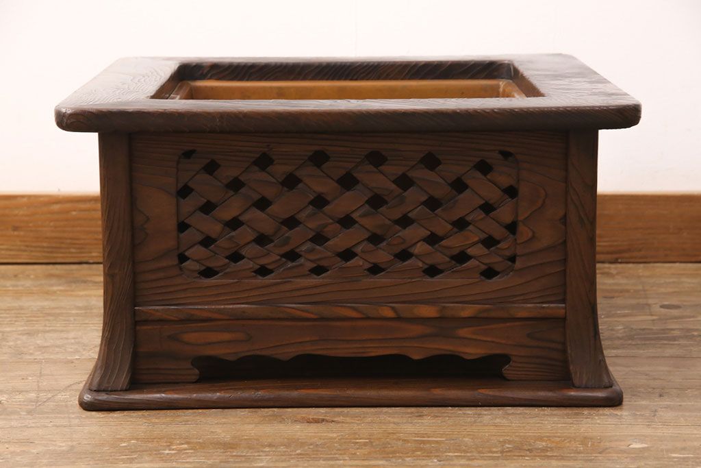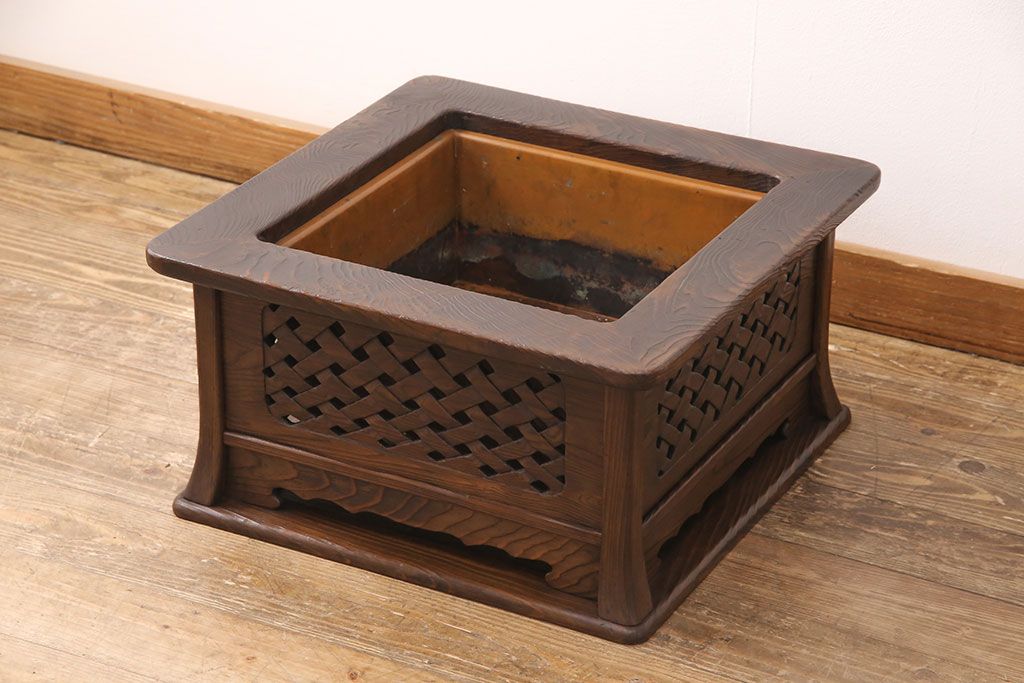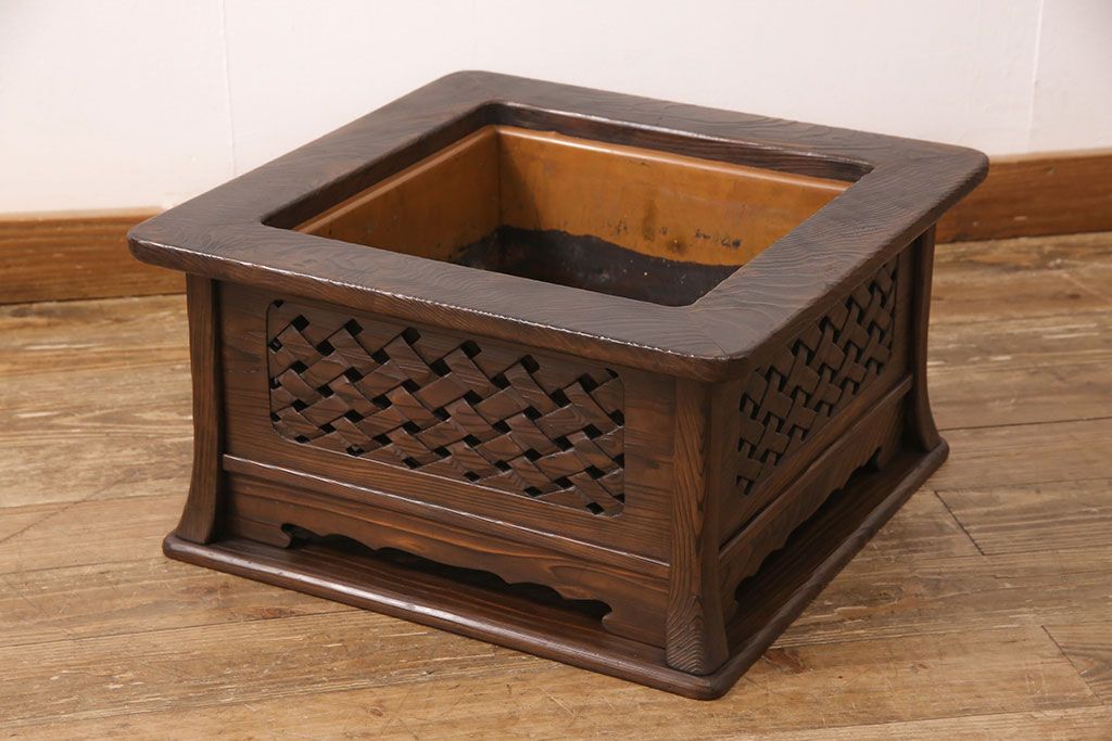 和製アンティーク 高級杉材 透かし彫りが美しい高級火鉢(木製火鉢、角火鉢)(R-052662)です。