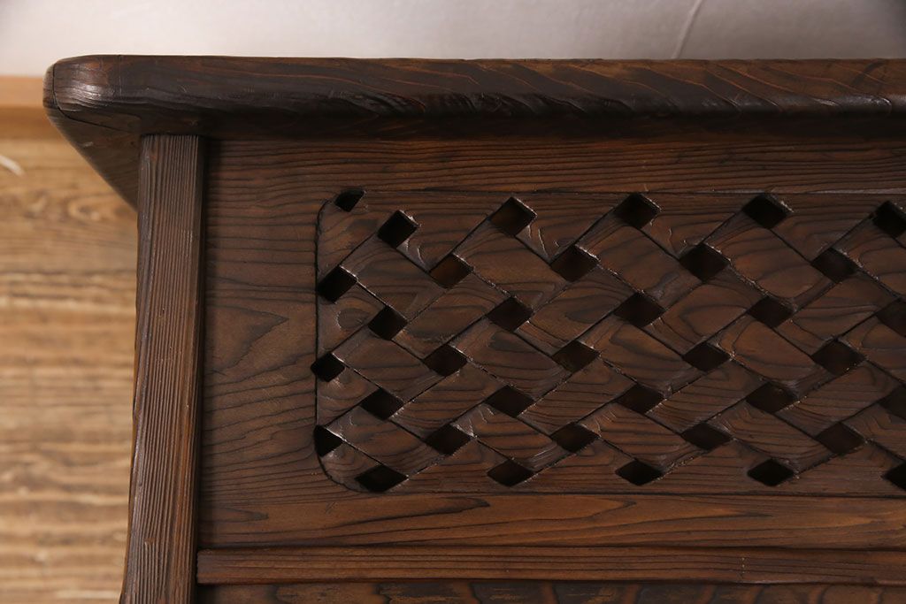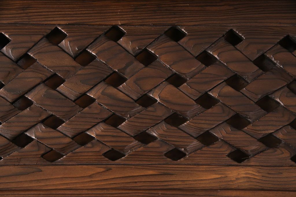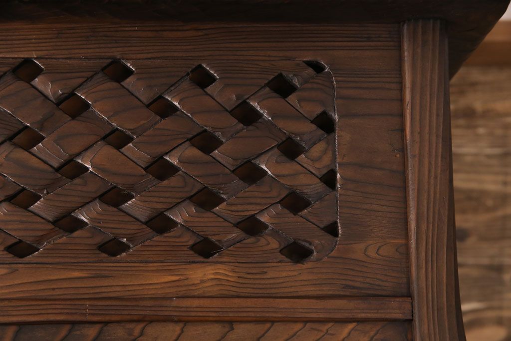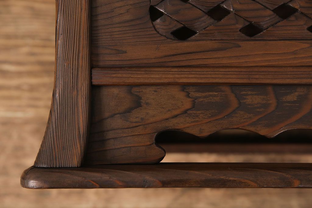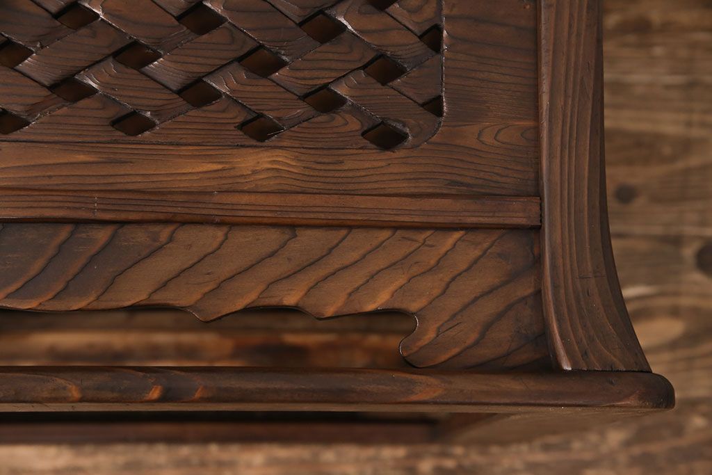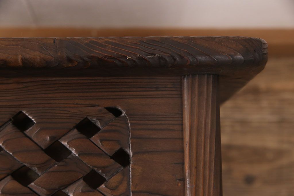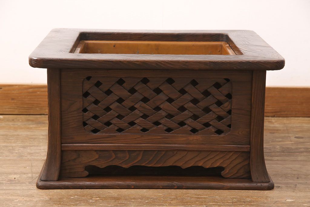 和製アンティーク 高級杉材 透かし彫りが美しい高級火鉢(木製火鉢、角火鉢)(R-052662)