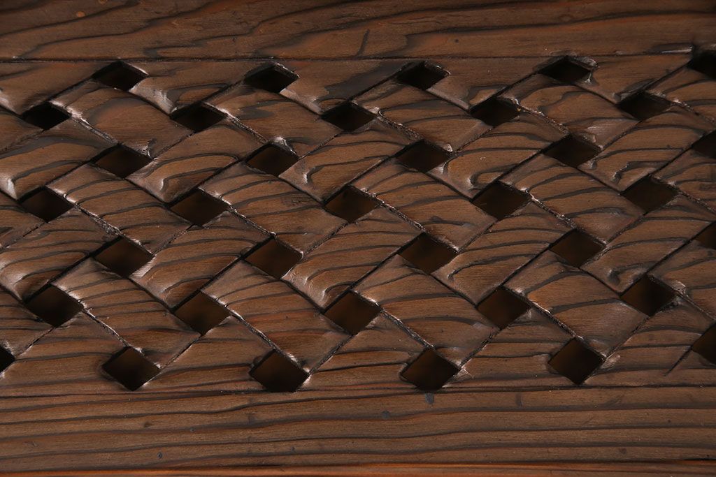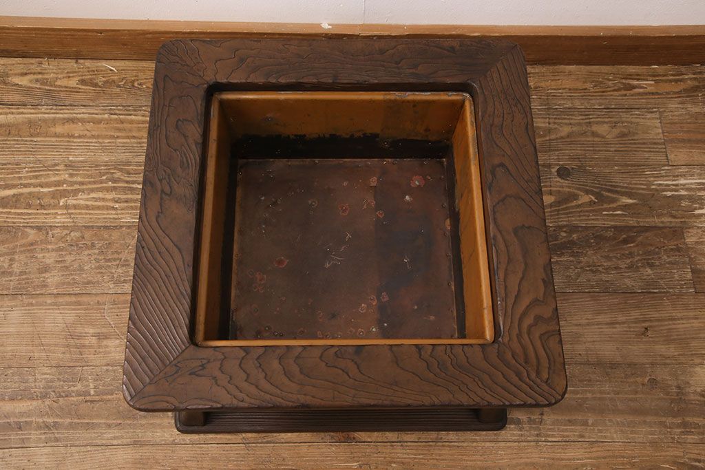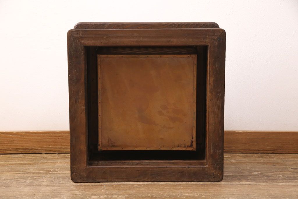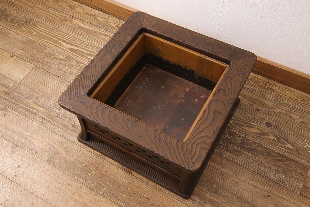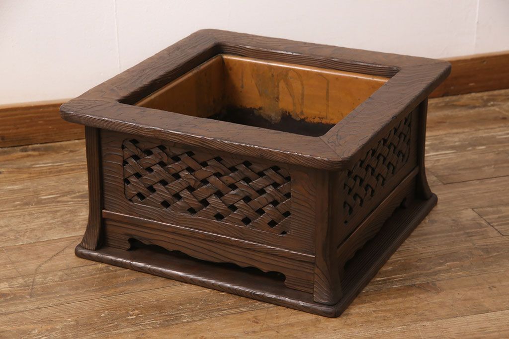 和製アンティーク 高級杉材 透かし彫りが美しい高級火鉢(木製火鉢、角火鉢)(R-052663)です。