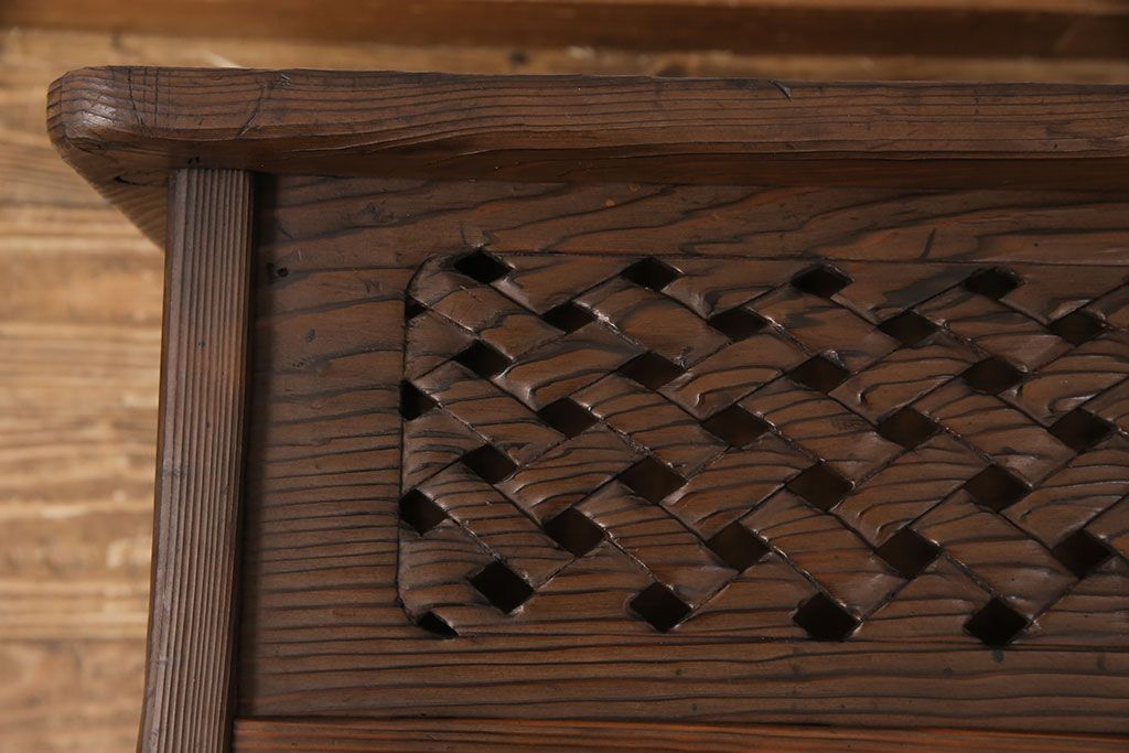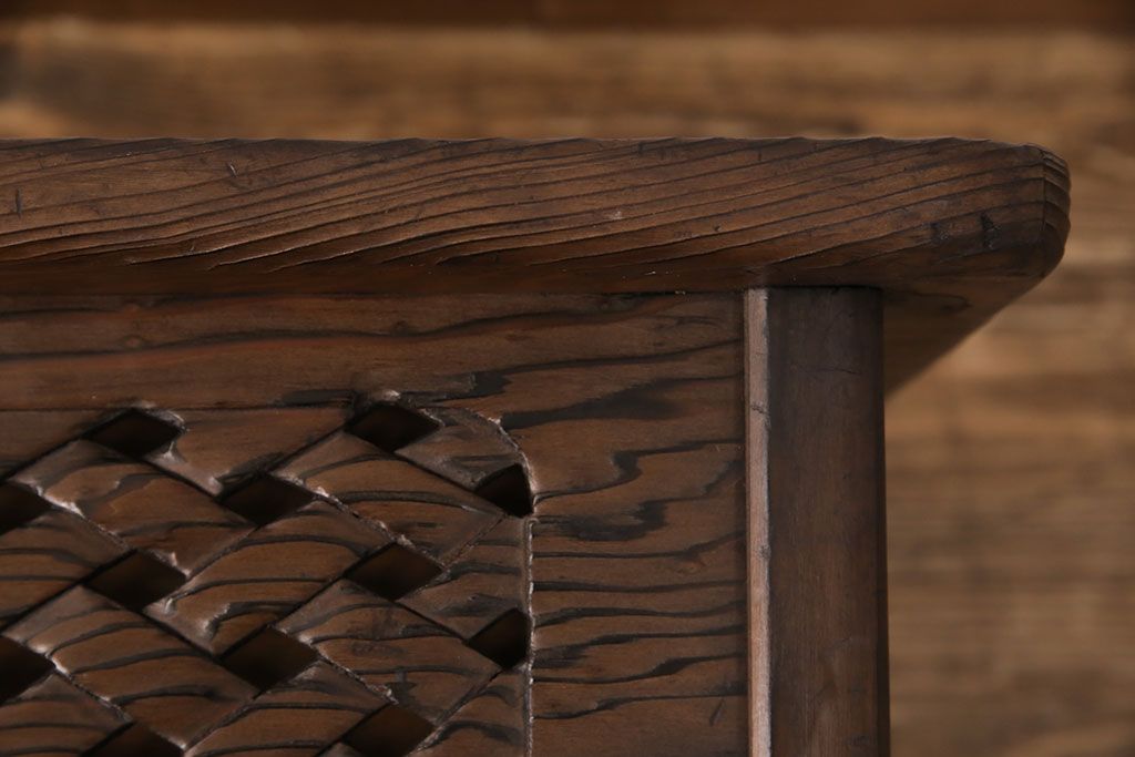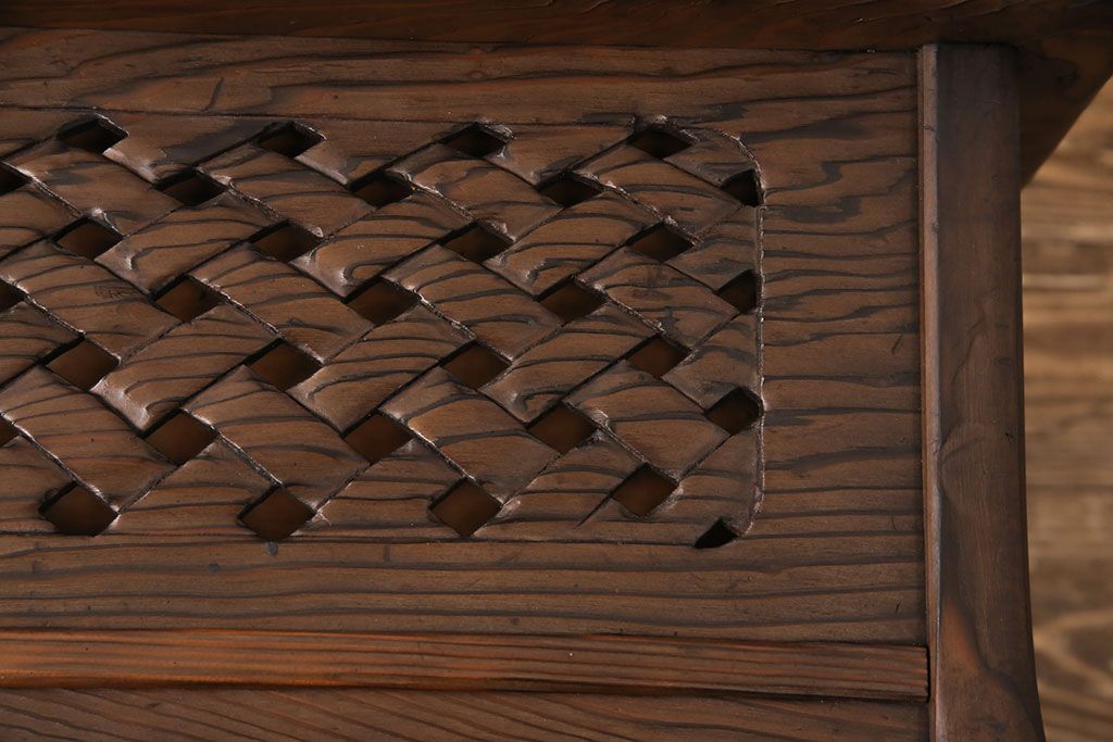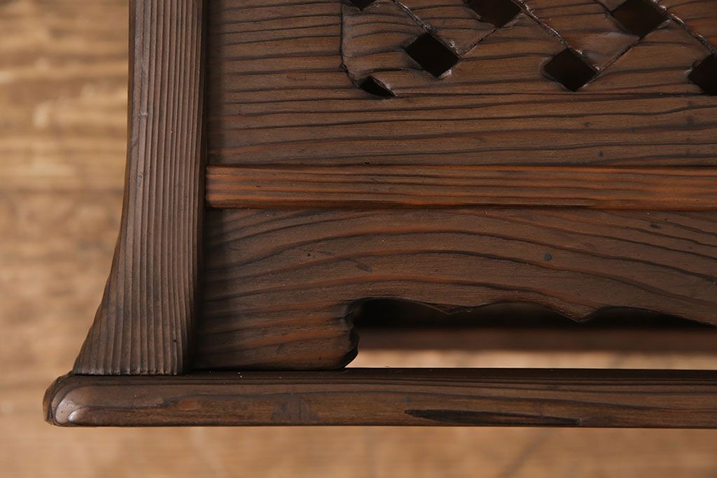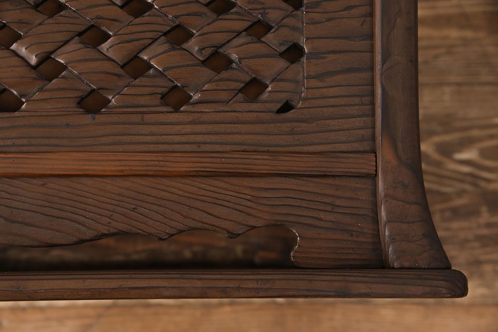 和製アンティーク 高級杉材 透かし彫りが美しい高級火鉢(木製火鉢、角火鉢)(R-052663)