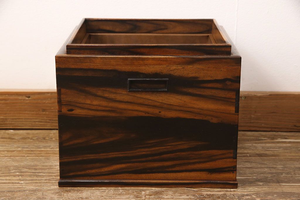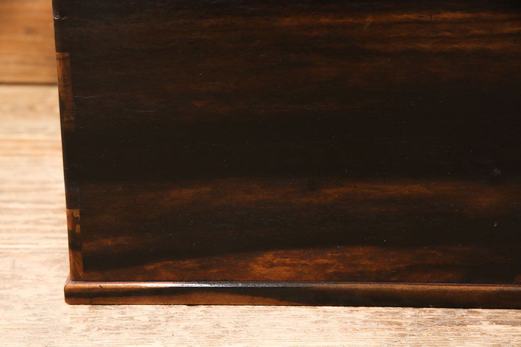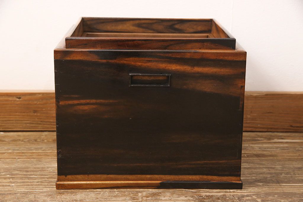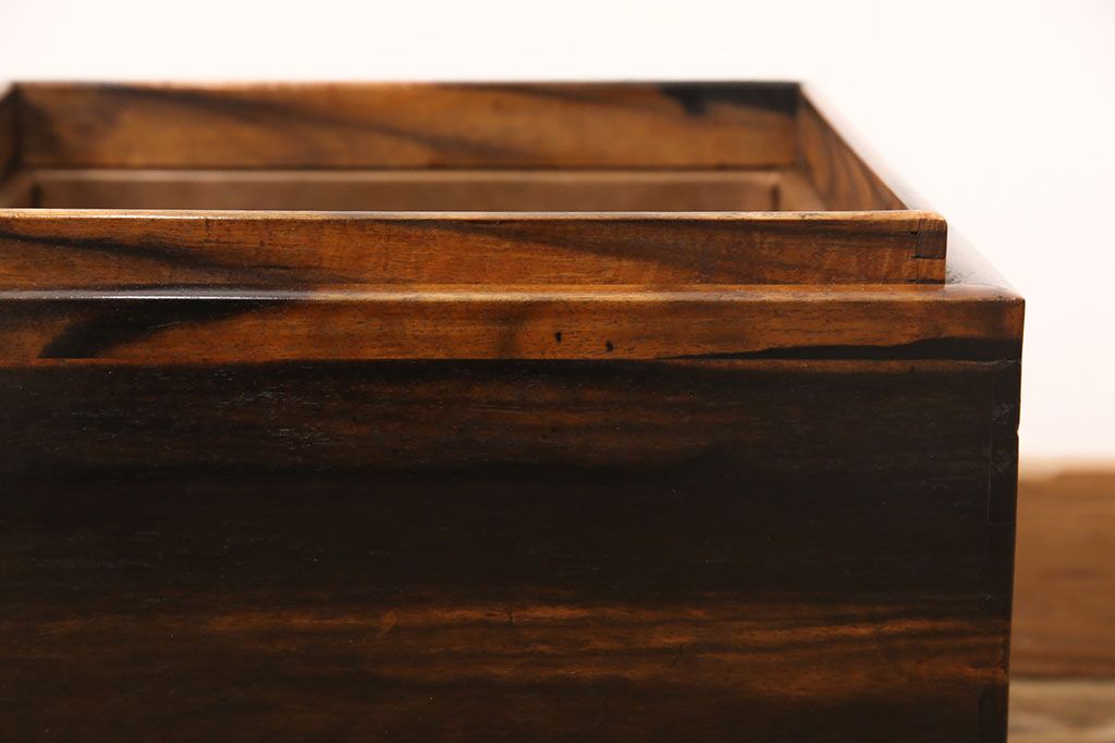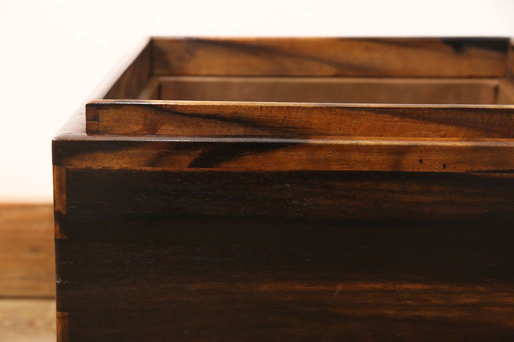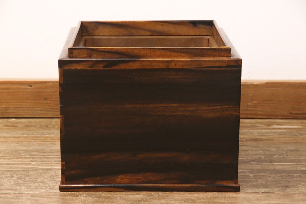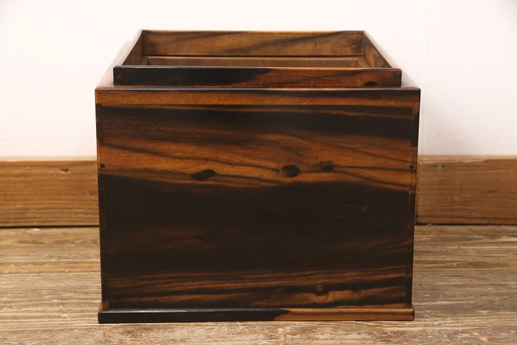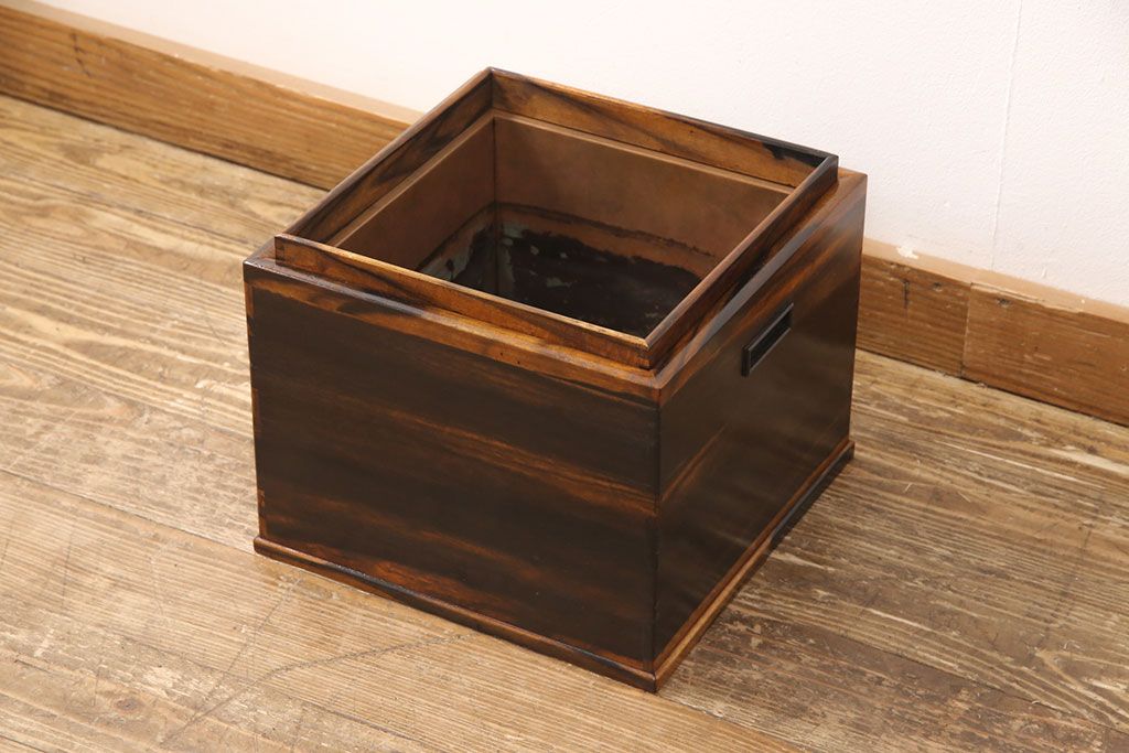 火鉢> 木製火鉢 > 和製アンティーク 総黒柿材 落ち着いた色合いが上質な和の空間に合う角火鉢(木製火鉢、手あぶり)(R-052769)