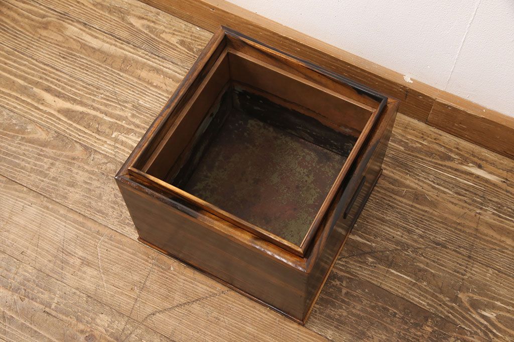 和製アンティーク 総黒柿材 落ち着いた色合いが上質な和の空間に合う角火鉢(木製火鉢、手あぶり)(R-052769)