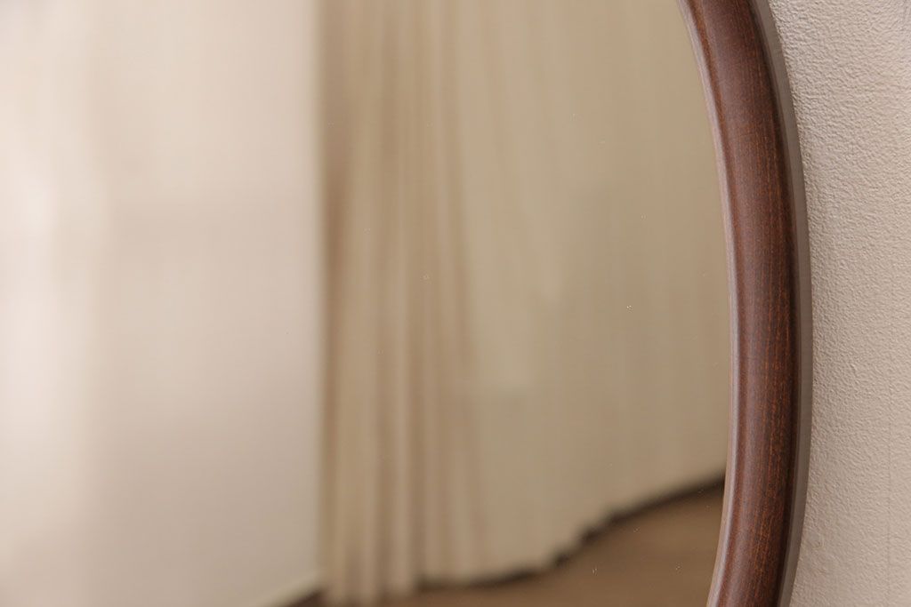 鏡 > 中古 秋田木工 ラウンド型でシンプルなつくりが取り入れやすいウォールミラー(鏡)(R-053066)