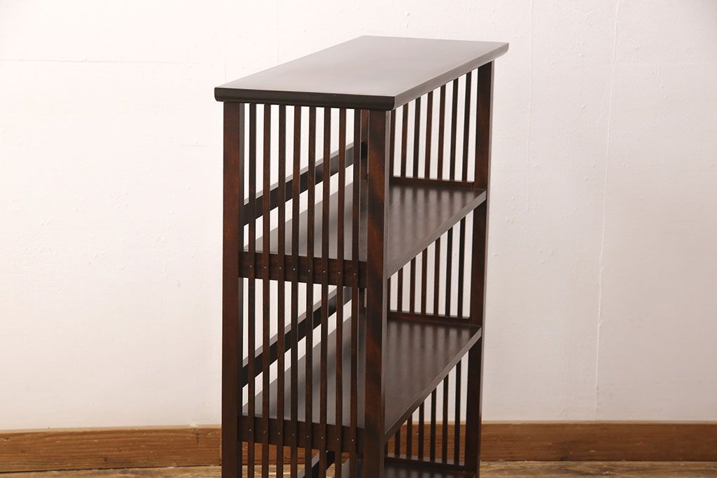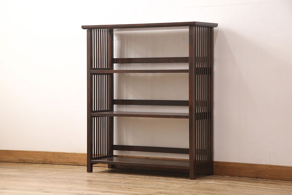 中古 松本民芸家具 #117型 和モダンスタイルにおすすめ!格子が魅力的な書棚(飾り棚、本棚、オープンラック)(R-052780)