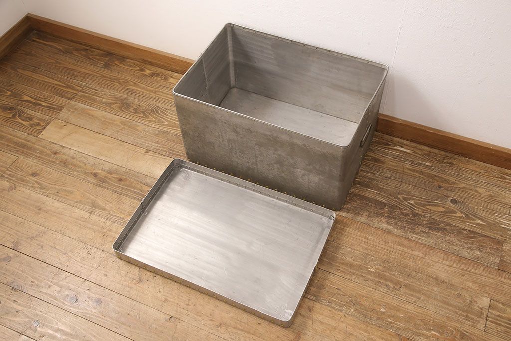 和製アンティーク レア! 無骨なデザインが目を引くアルミ製の収納BOX(収納箱)(R-052770)