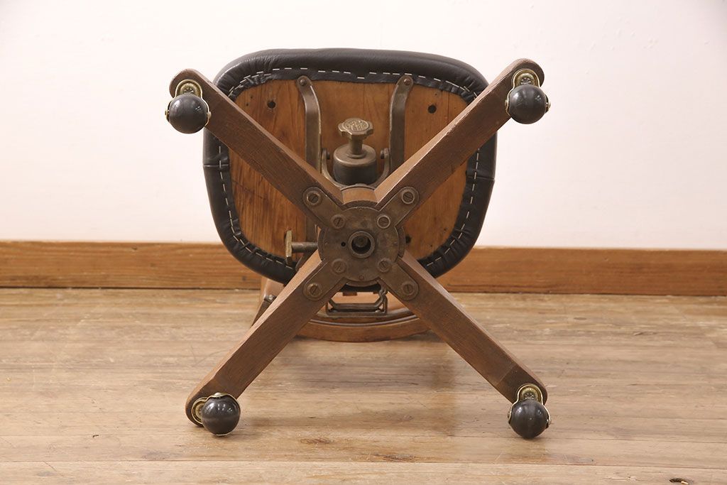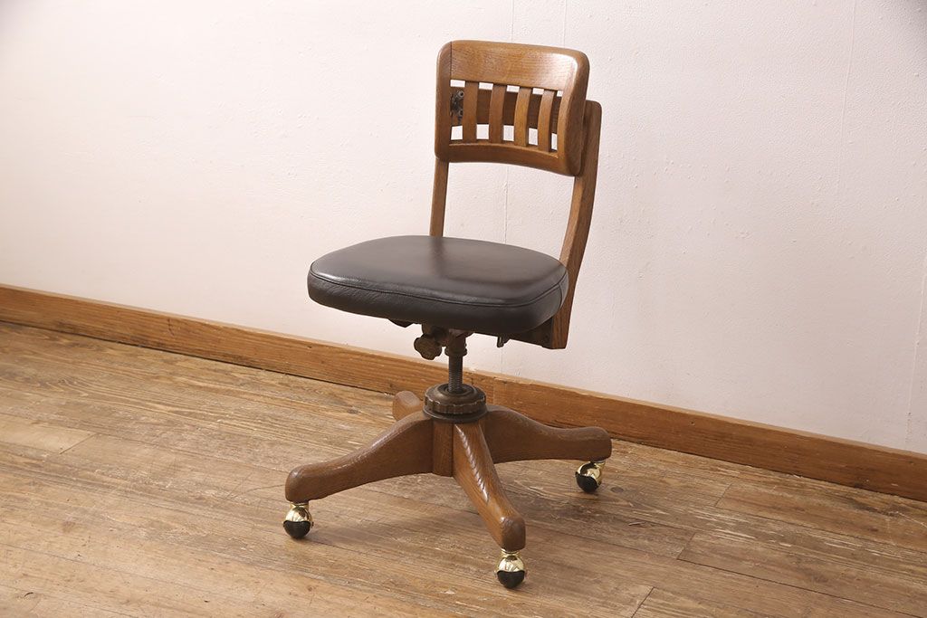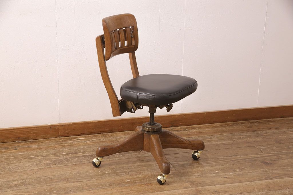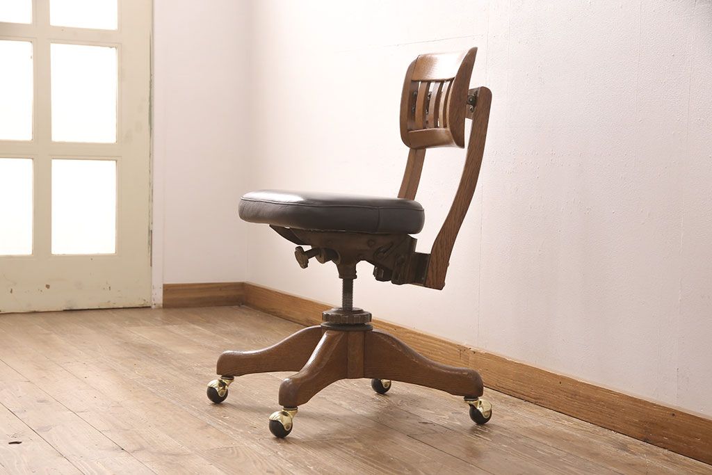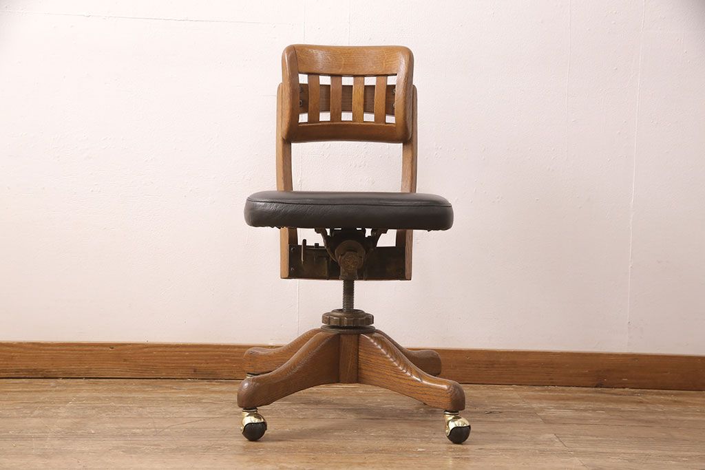 椅子・ベンチ> 回転椅子 > 美品 アメリカビンテージ W.H.GUNLOCKE CHAIR CO.(W.H.ガンロックチェア社) ナラ材 洗練されたフォルムのデスクチェア(回転椅子、ヴィンテージ)(R-052623)