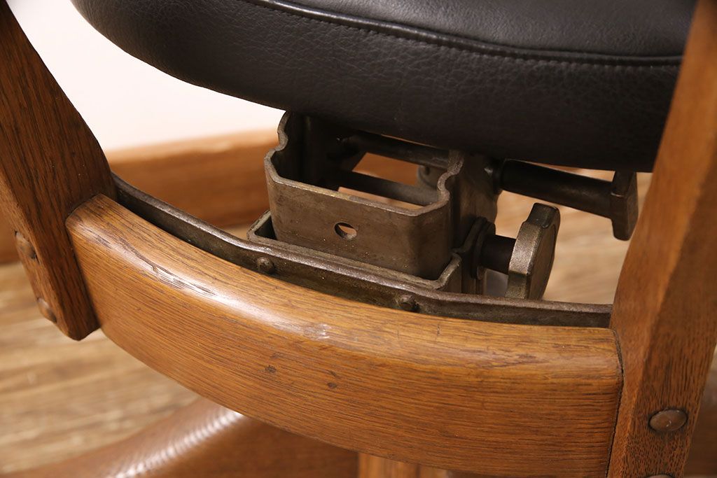 美品 アメリカビンテージ W.H.GUNLOCKE CHAIR CO.(W.H.ガンロックチェア社) ナラ材 洗練されたフォルムのデスクチェア(回転椅子、ヴィンテージ)(R-052623)