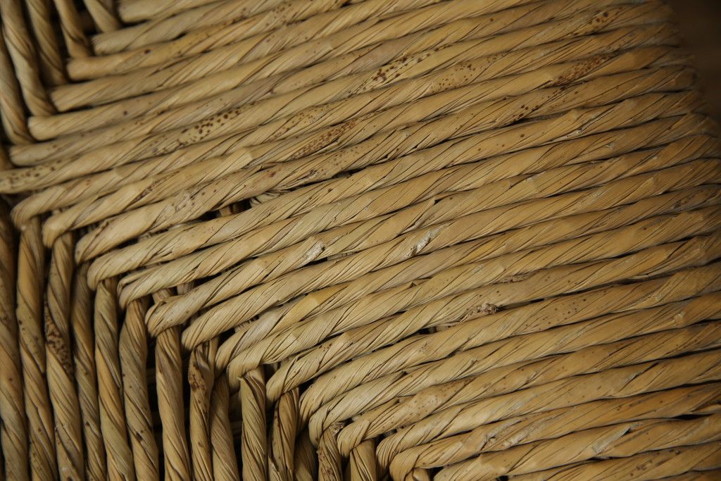 い草を編み込んで作られたラッシ座面が特徴の一品です。