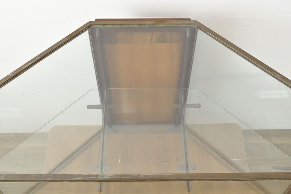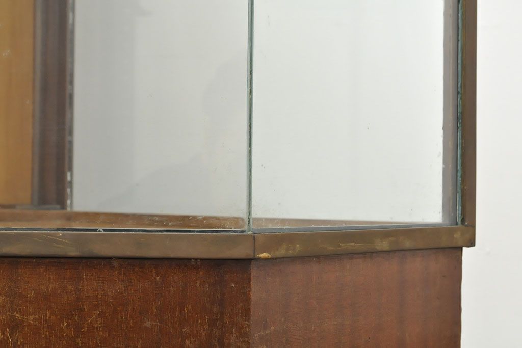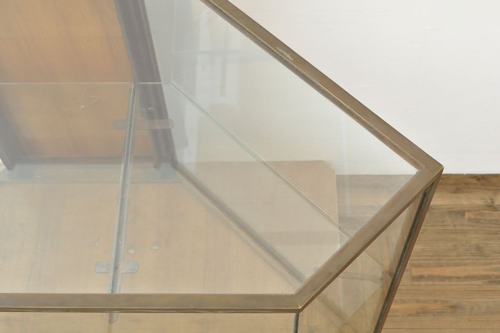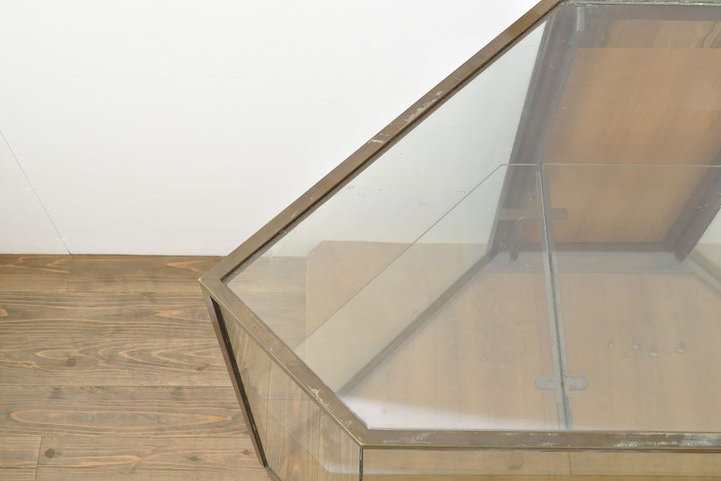 フランスアンティーク 六角形のフォルムが珍しい!フレームに真鍮が使われているガラスケース(ショーケース、陳列棚、店舗什器)(R-052965)