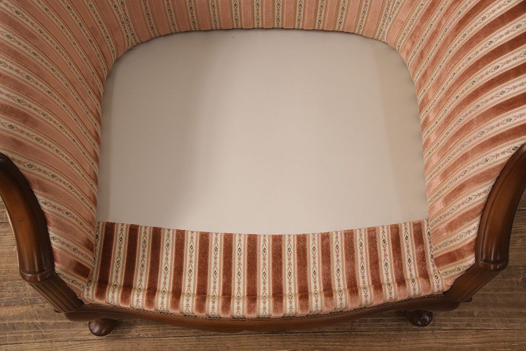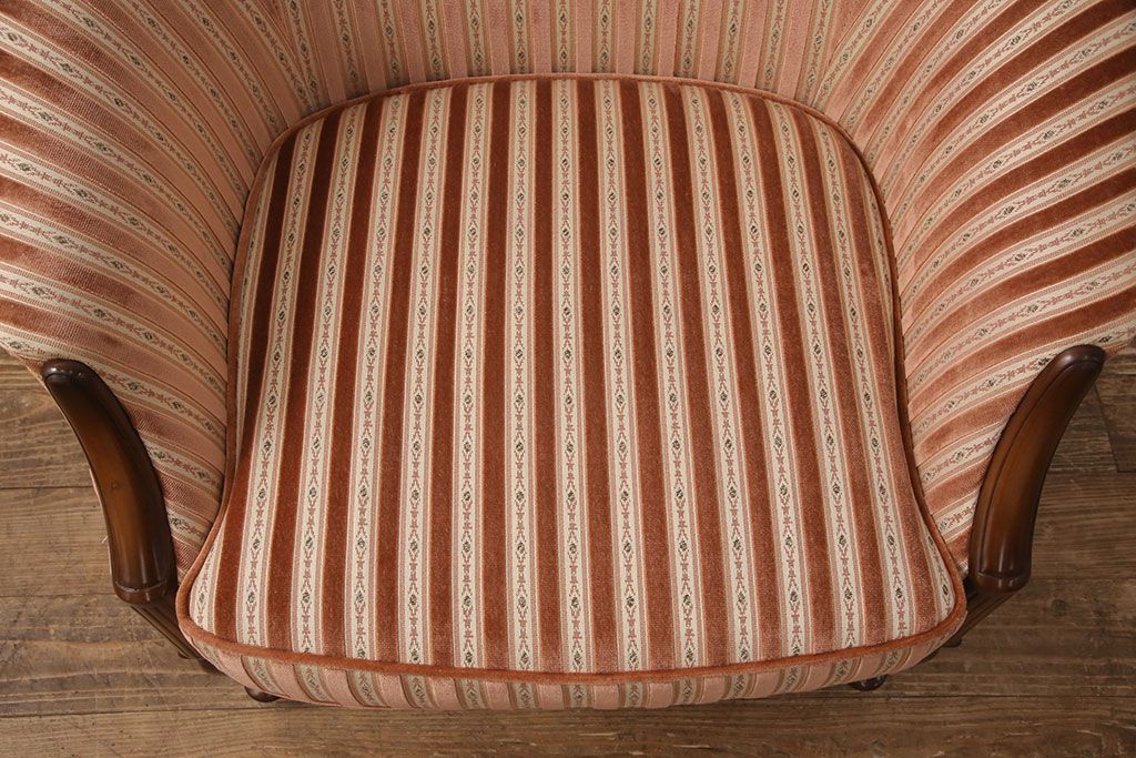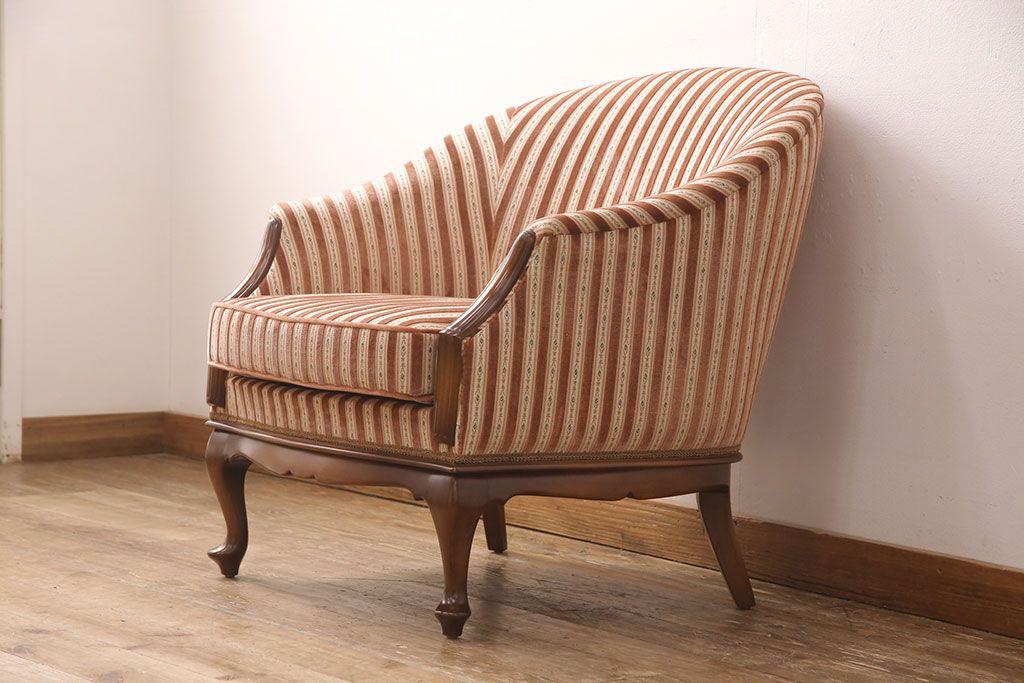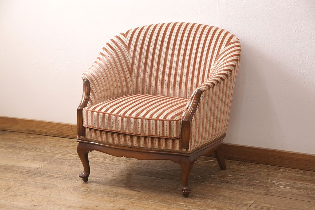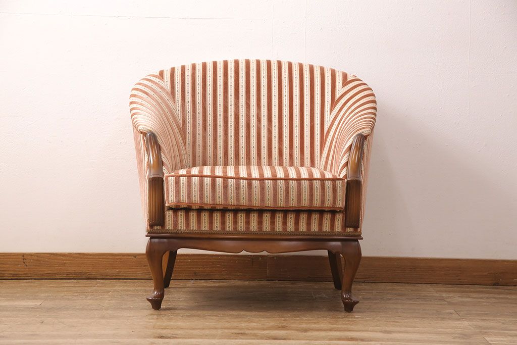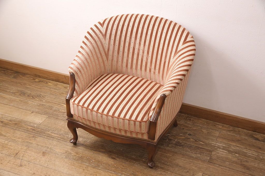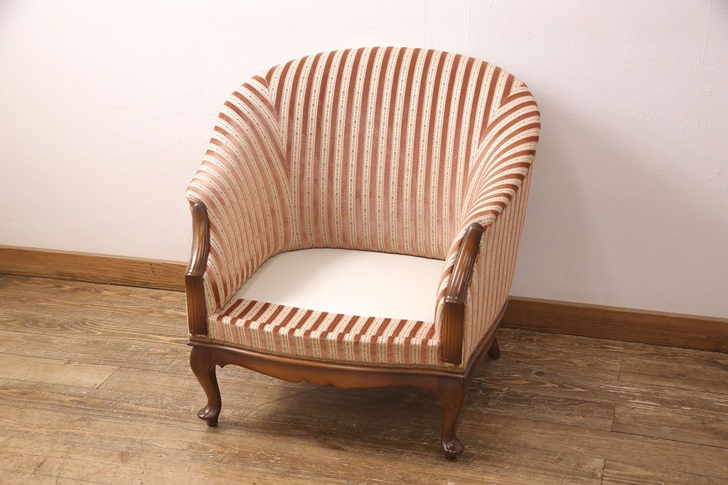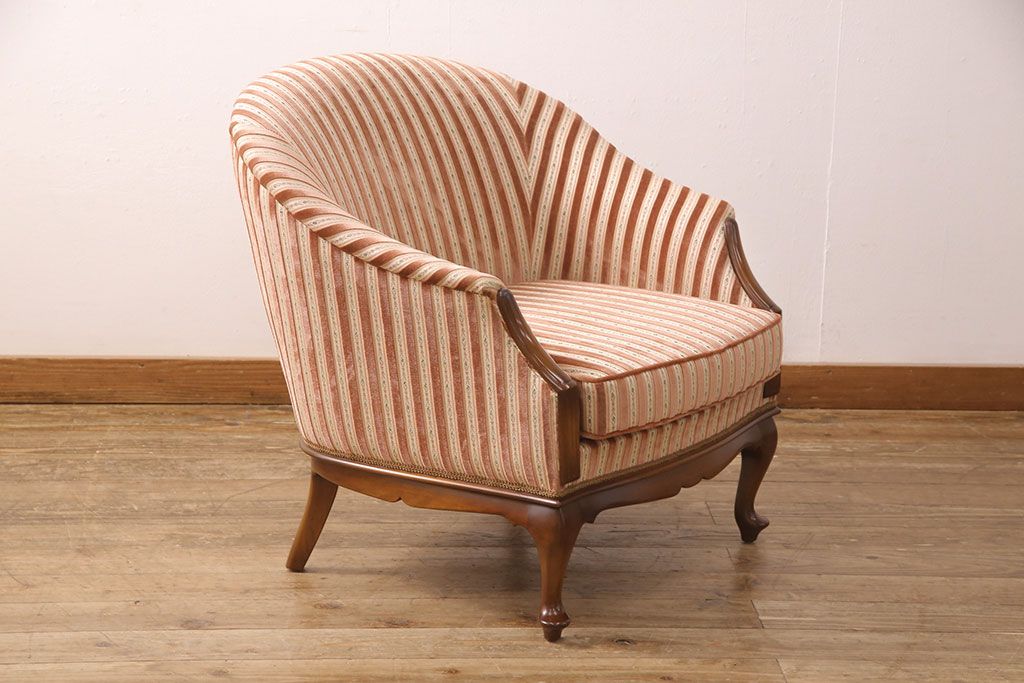中古 美品 神戸洋家具 メープル不二屋 ころんとした可愛いデザインが魅力の1人掛けソファ(ラウンジチェア、1P、一人掛け)(R-052572)