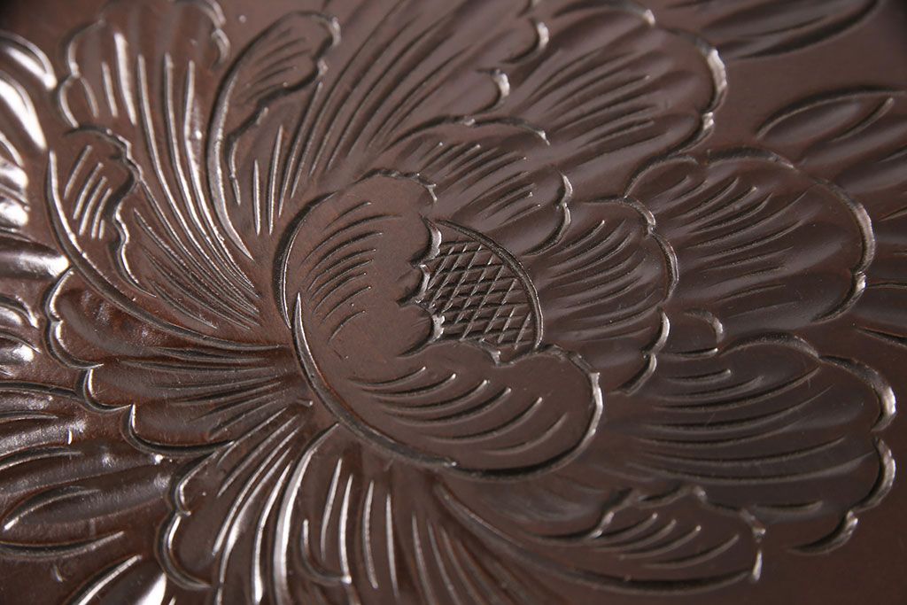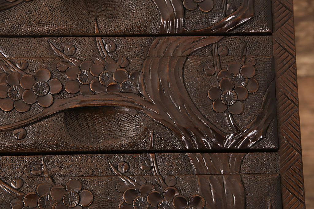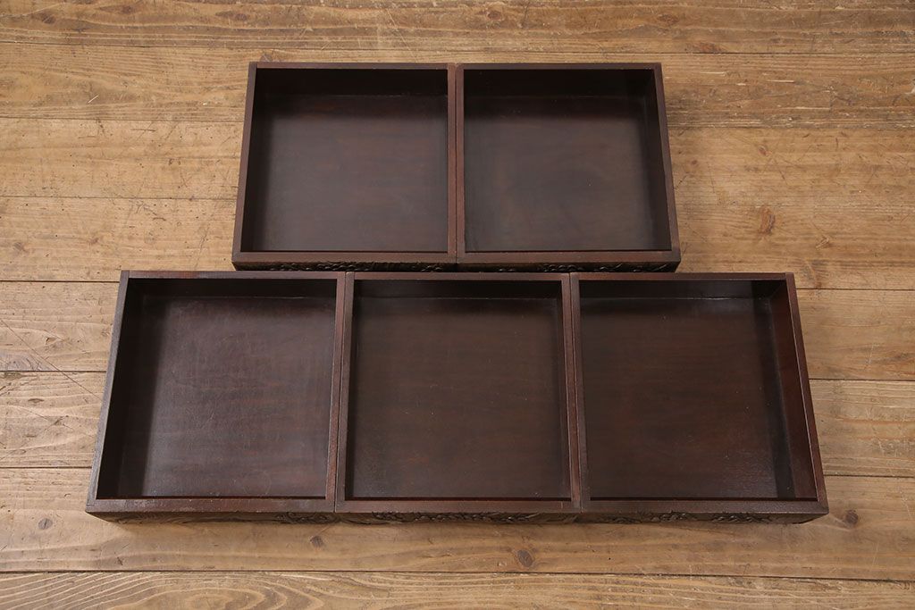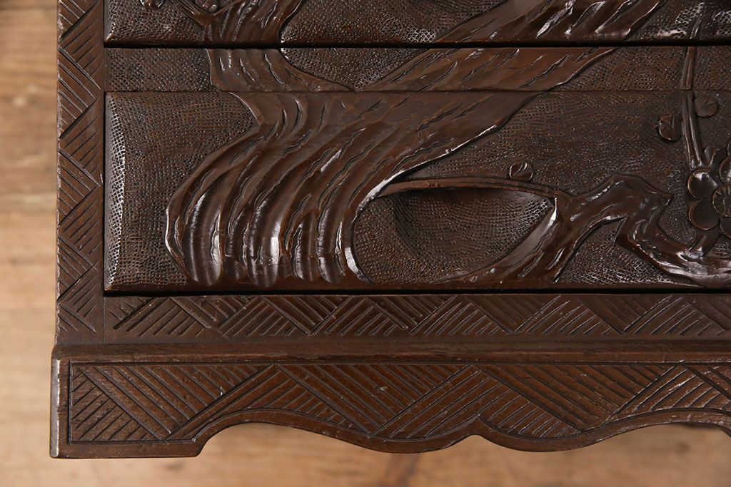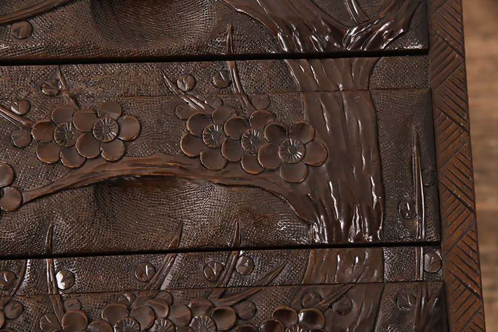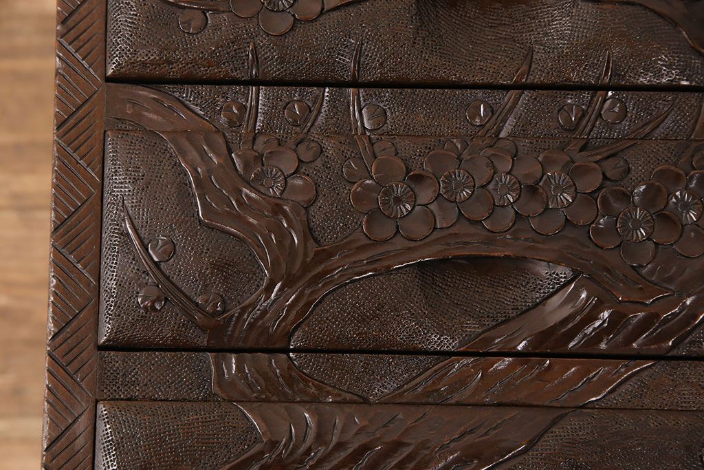 中古 伝統工芸 日光彫り 三種の花が楽しめる小引き出し(小物収納、卓上収納)(R-052609)