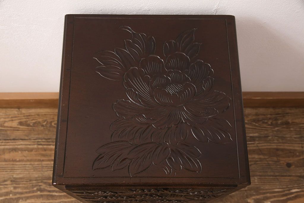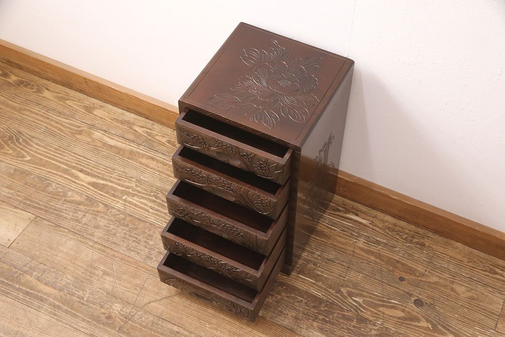 中古 伝統工芸 日光彫り 三種の花が楽しめる小引き出し(小物収納、卓上収納)(R-052609)です。