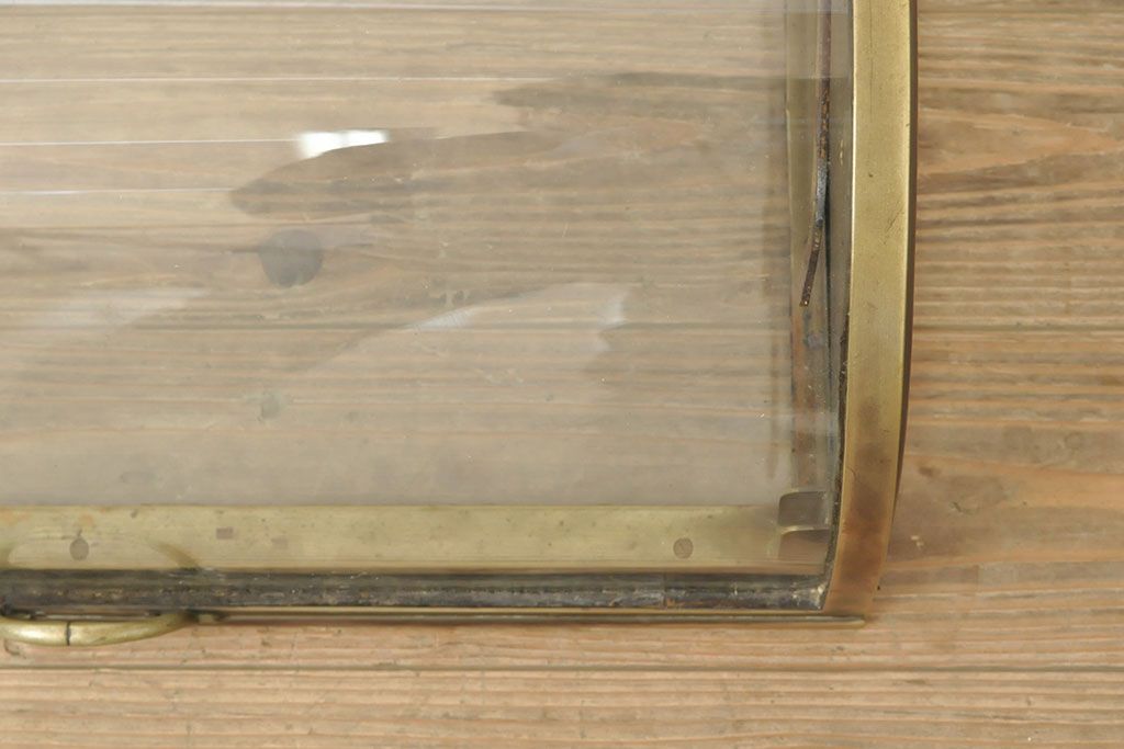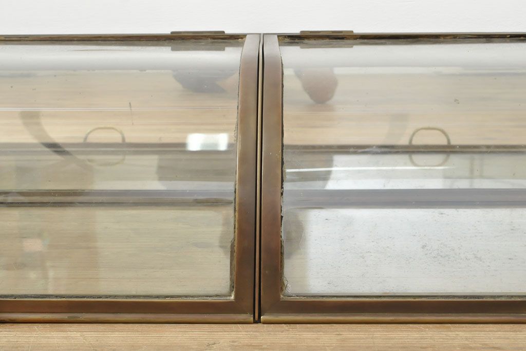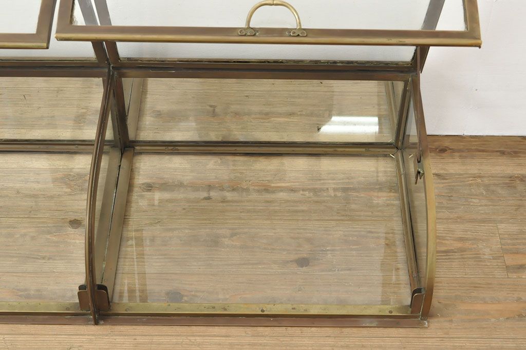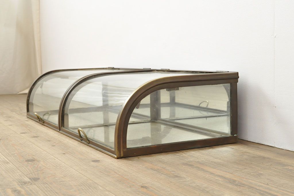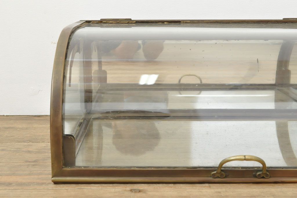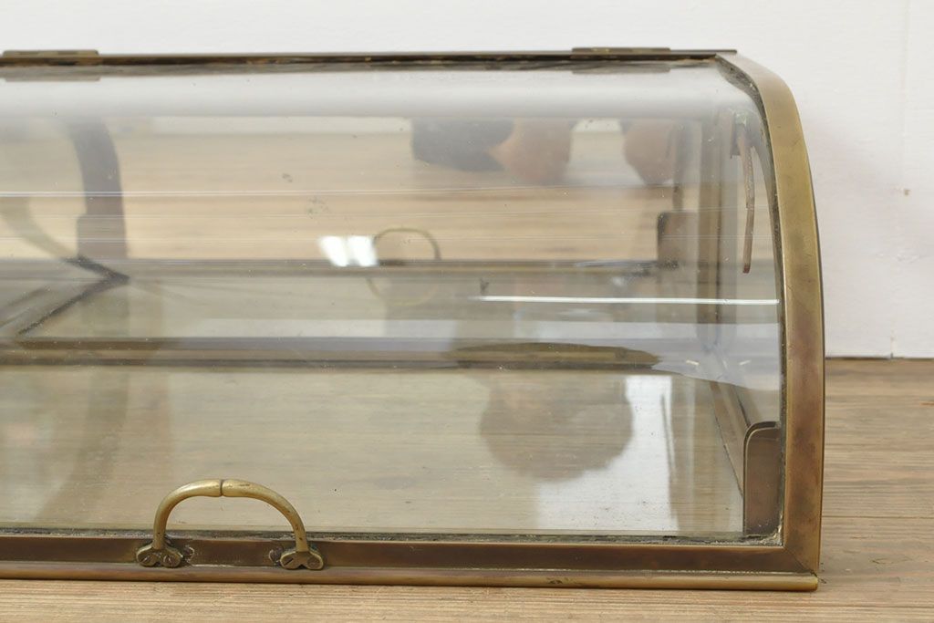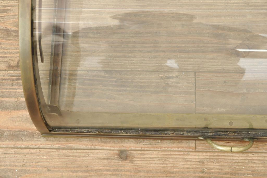 ラフジュ工房> ガラスケース・ショーケース> 卓上ショーケース > フランスアンティーク 激レアデザイン! 真鍮枠 背面鏡張り、底面までガラス張りのRガラス卓上ショーケース(ガラスケース、陳列棚、店舗什器)(R-052964)