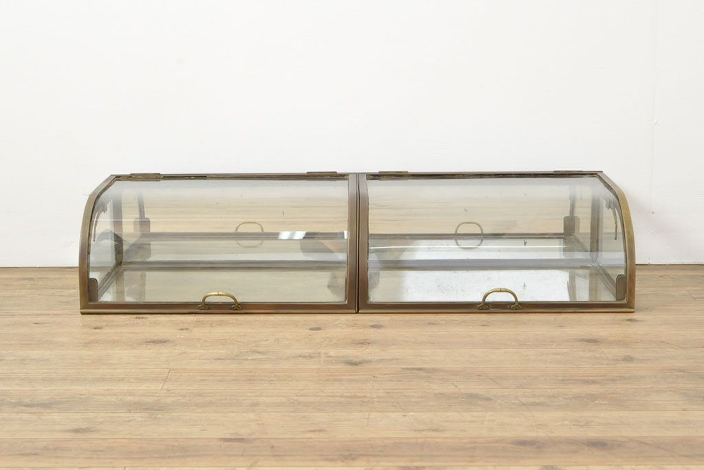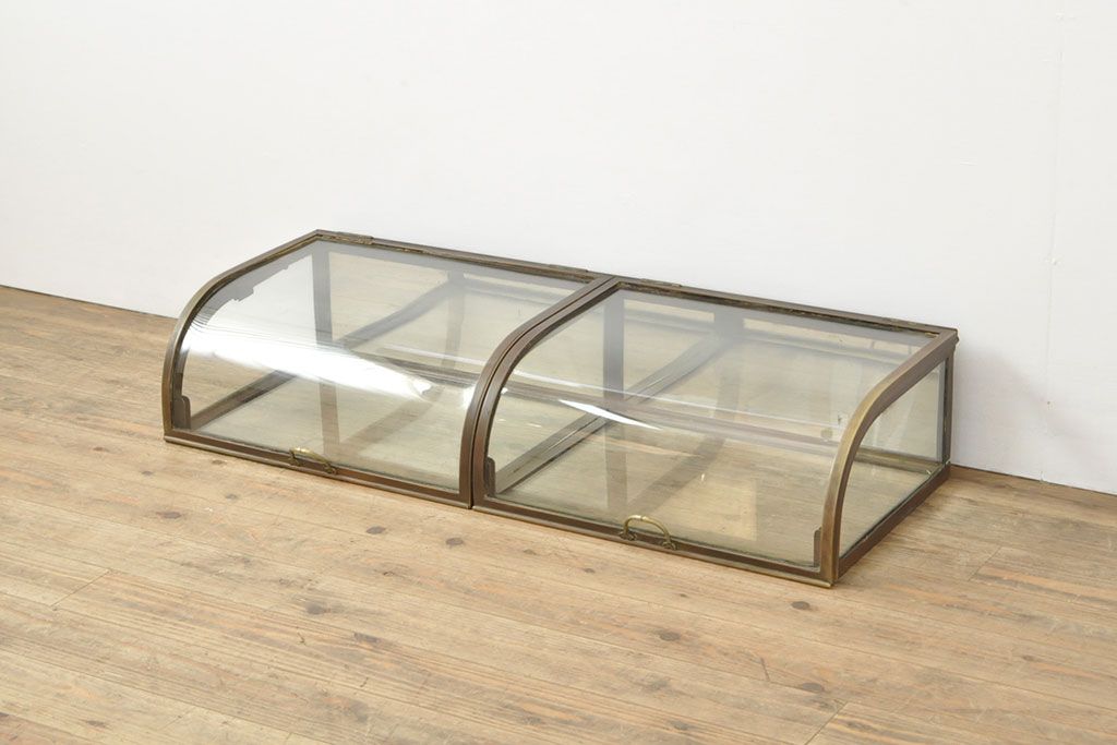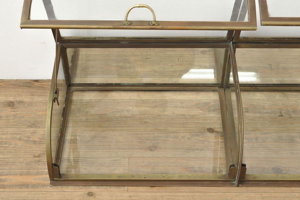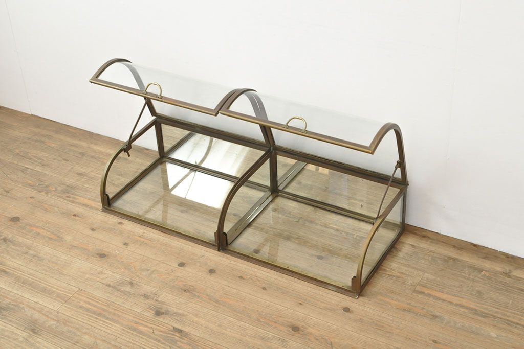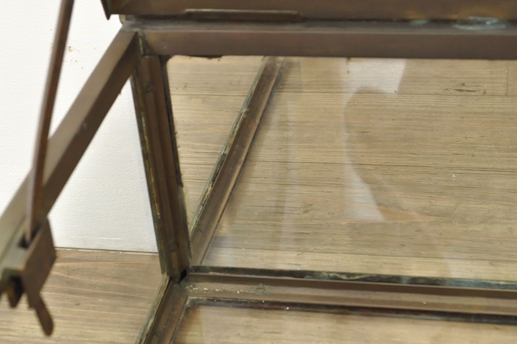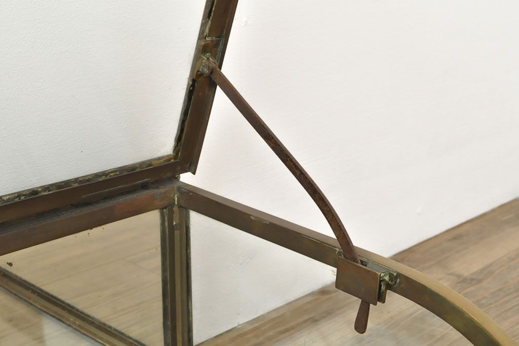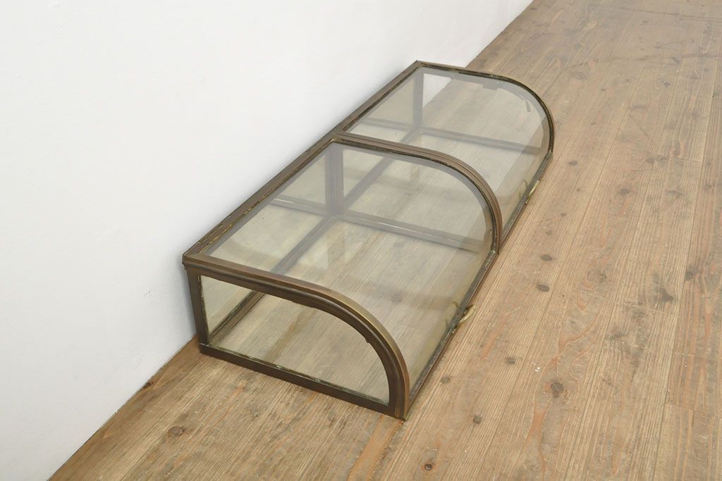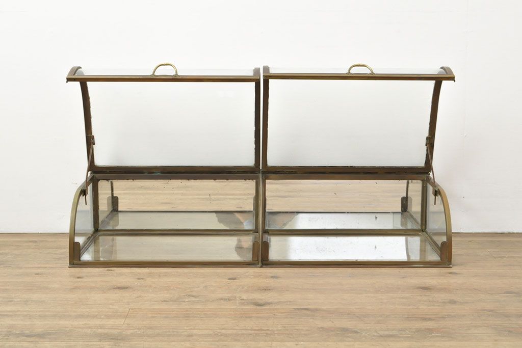 ラフジュ工房> ガラスケース・ショーケース> 卓上ショーケース > フランスアンティーク 激レアデザイン! 真鍮枠 背面鏡張り、底面までガラス張りのRガラス卓上ショーケース(ガラスケース、陳列棚、店舗什器)(R-052964)